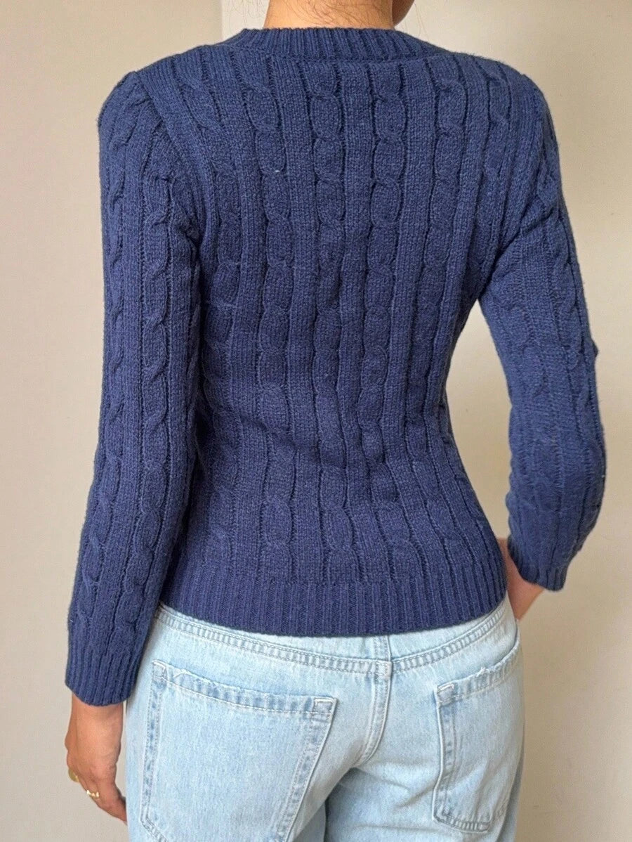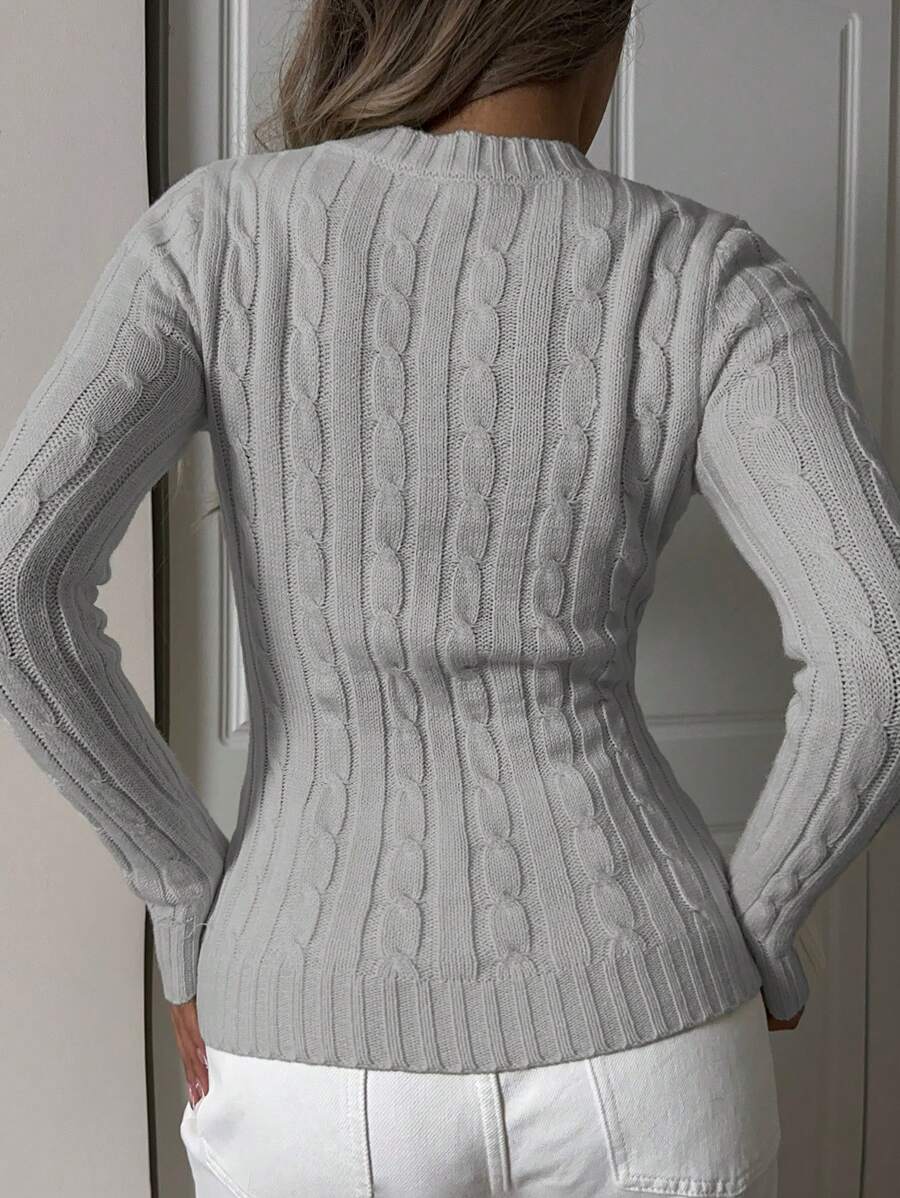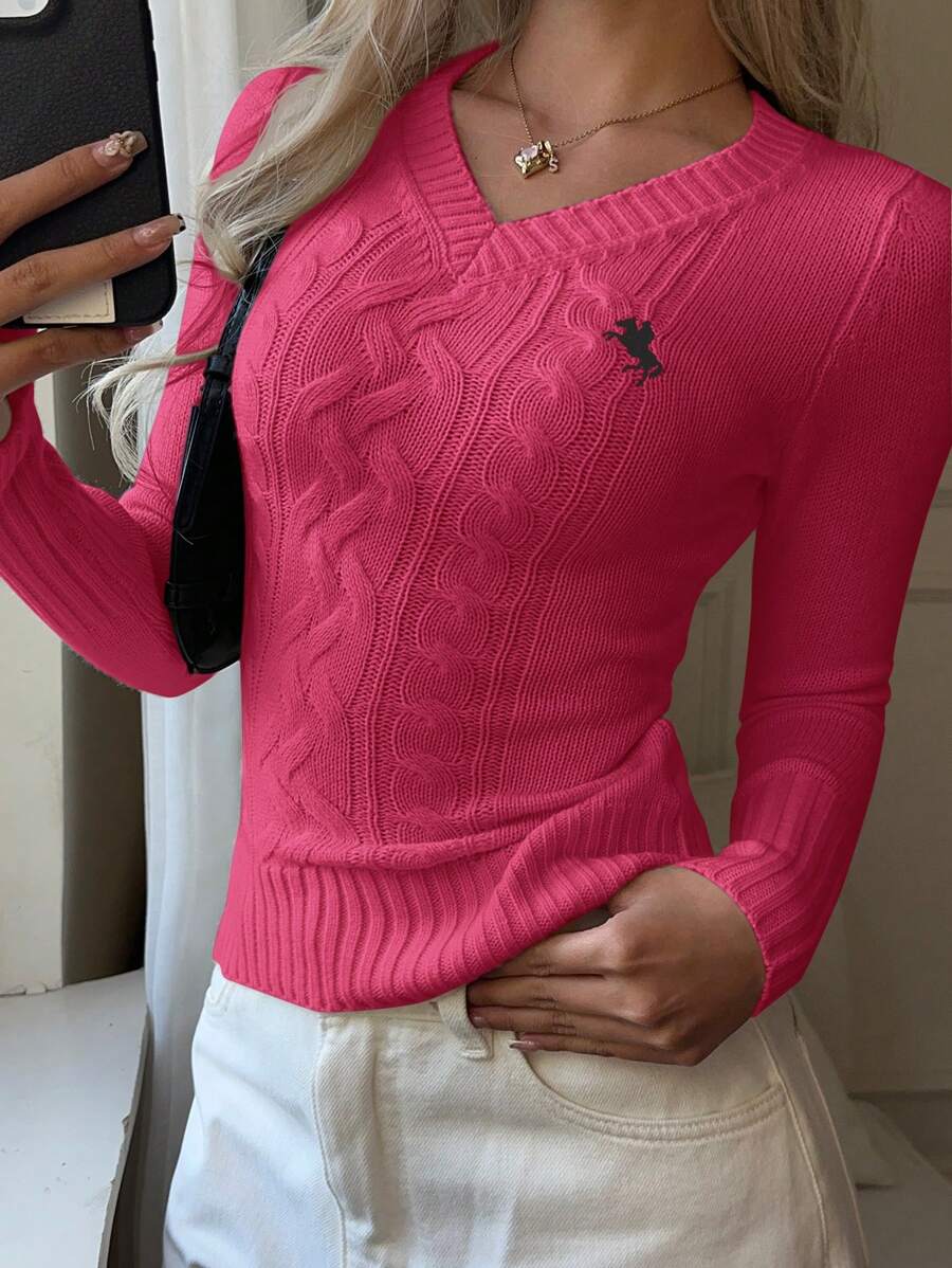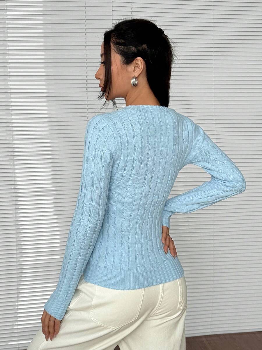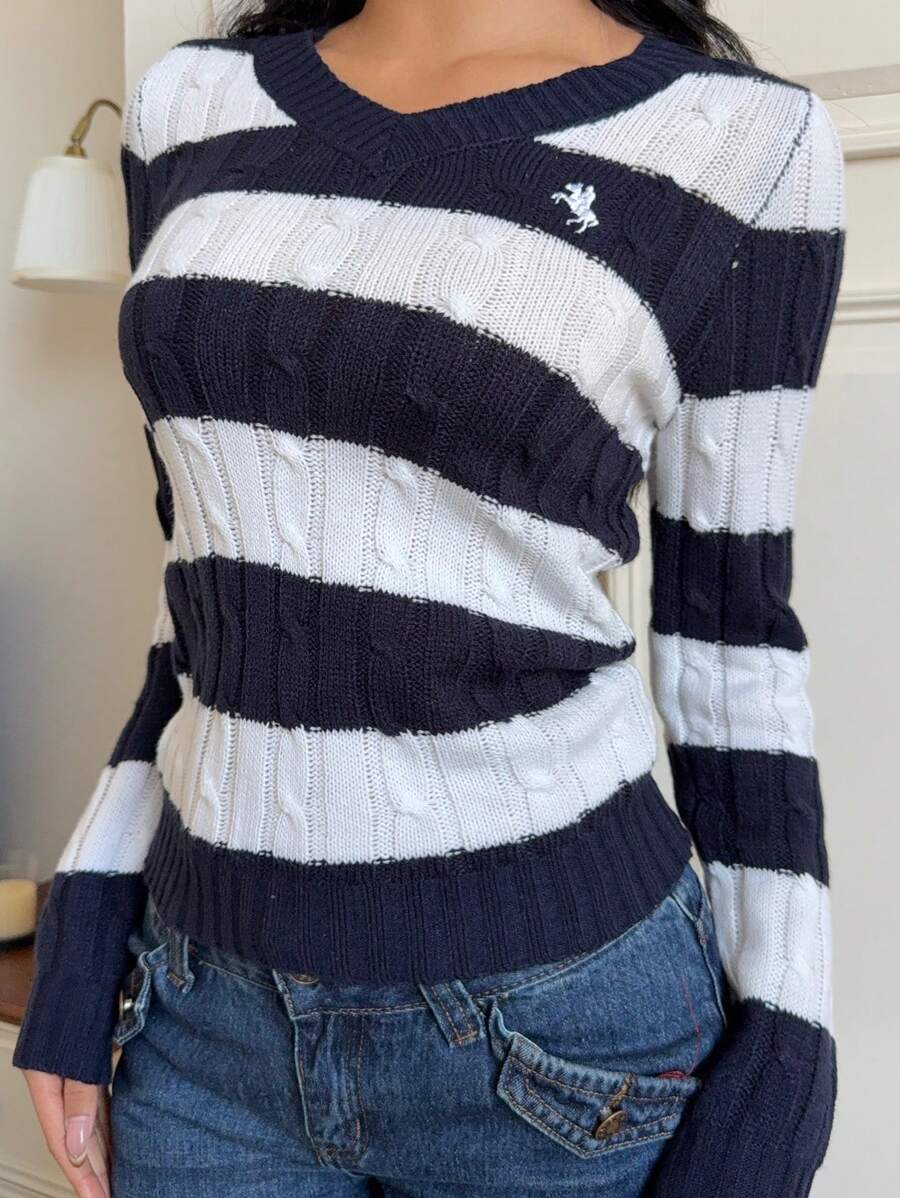 MIU EZwear Women's Plain V-Neck Knit Sweater, Casual And Fashionable For Daily Wear,Long Sleeve Tops,Tops For School In Fall/Winter