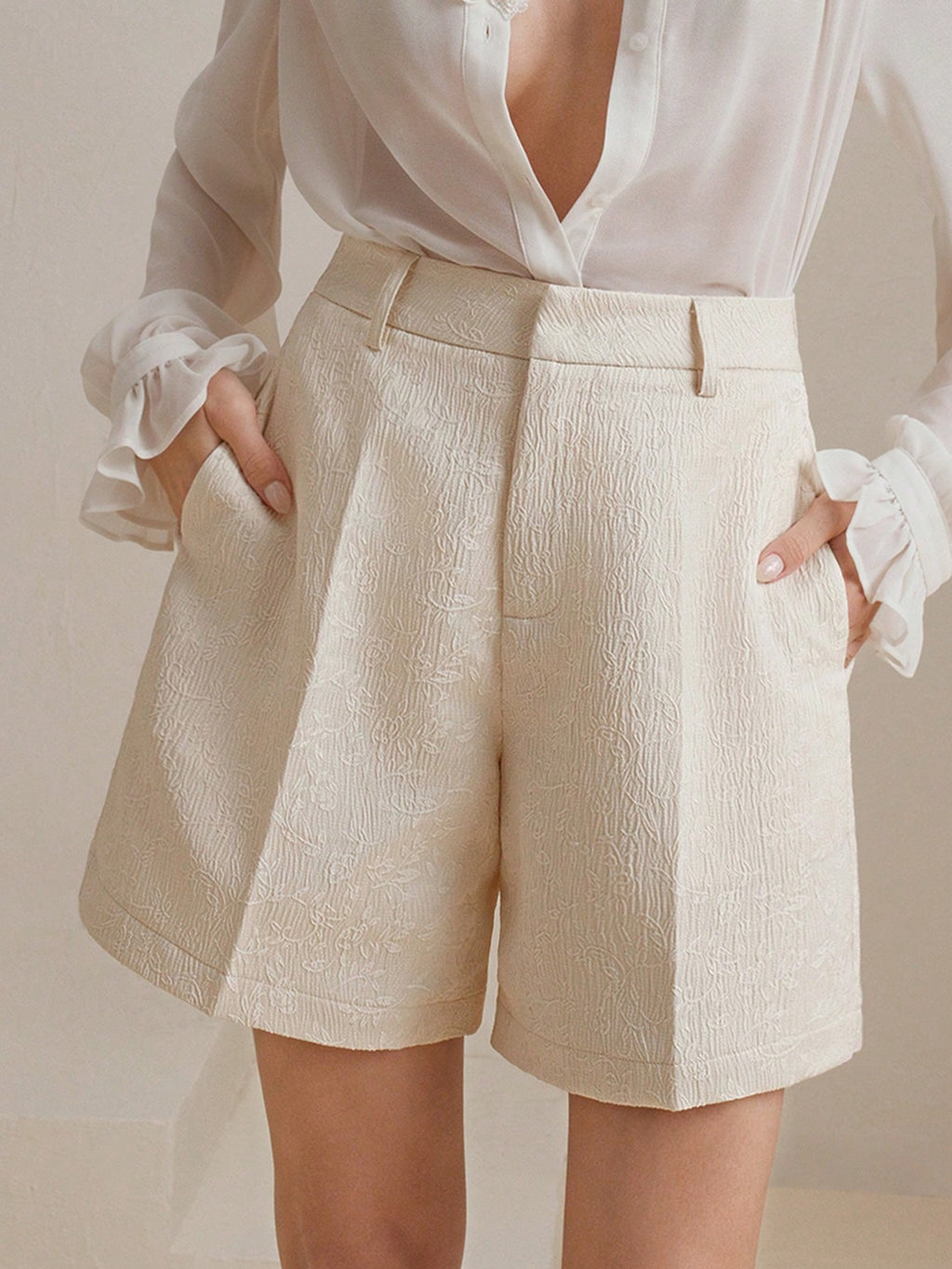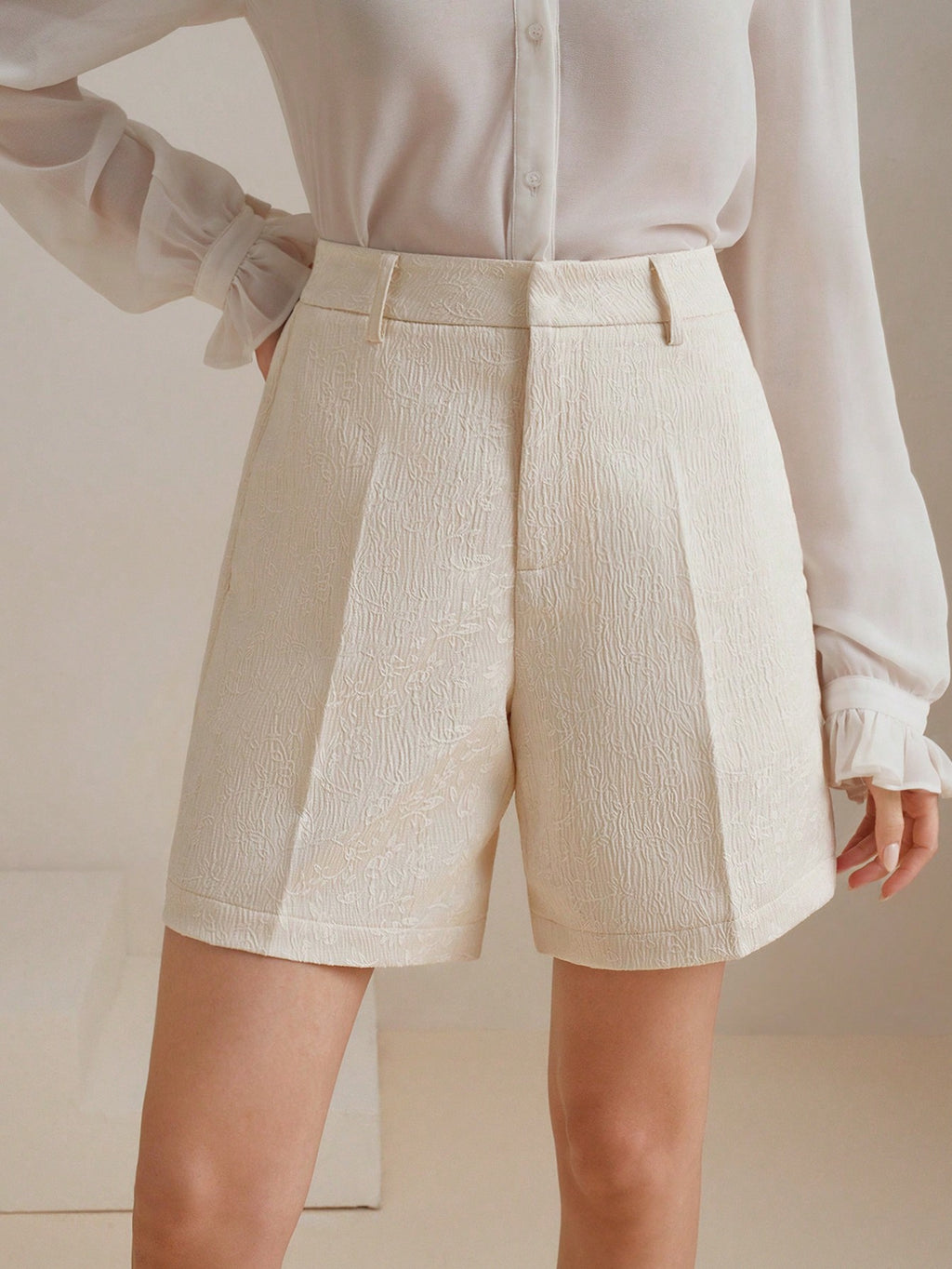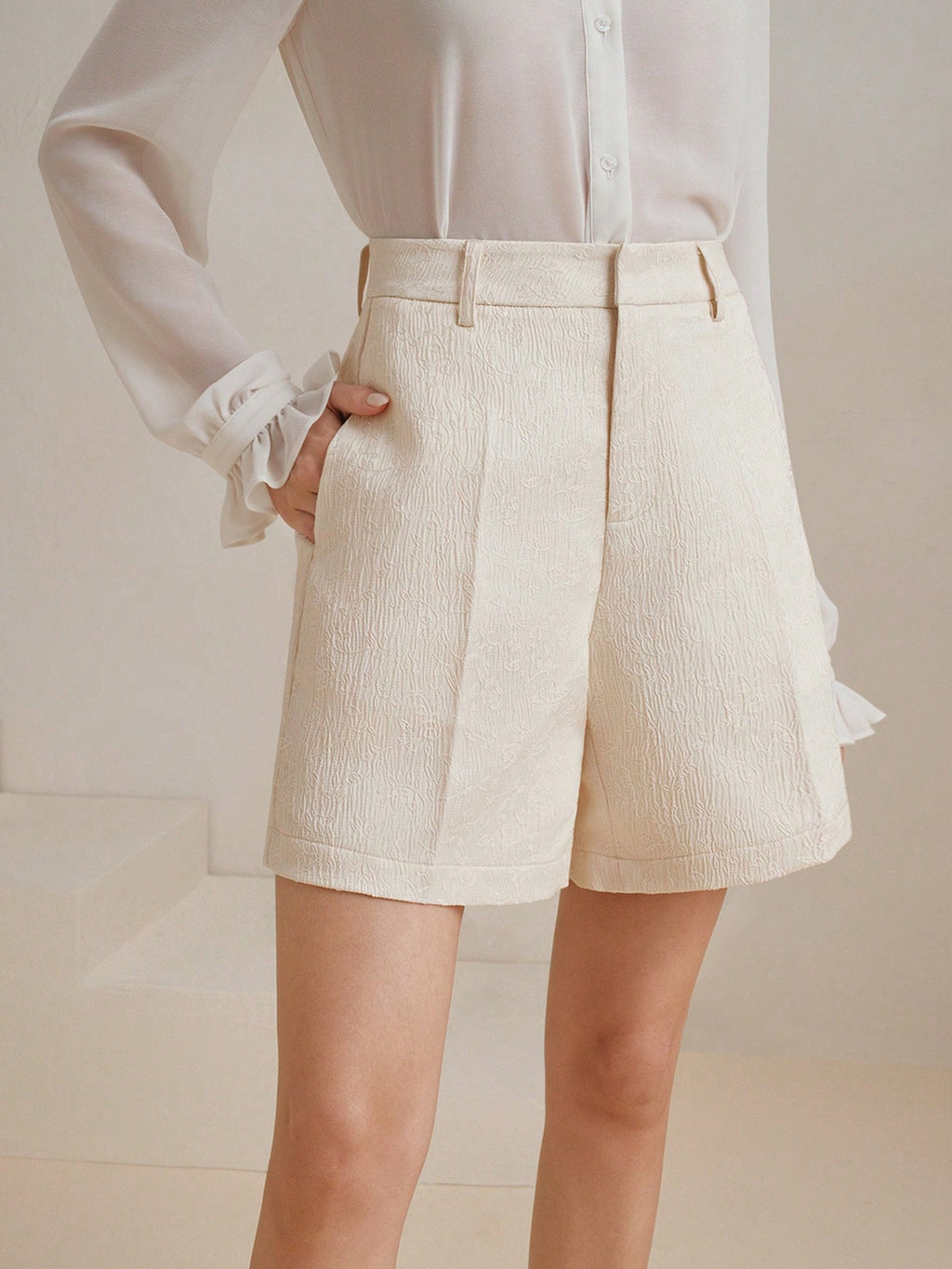MIU Fashionable And Versatile Jacquard Textured Solid Color Women's Shorts, Summer Outfits For Festival And Going Out