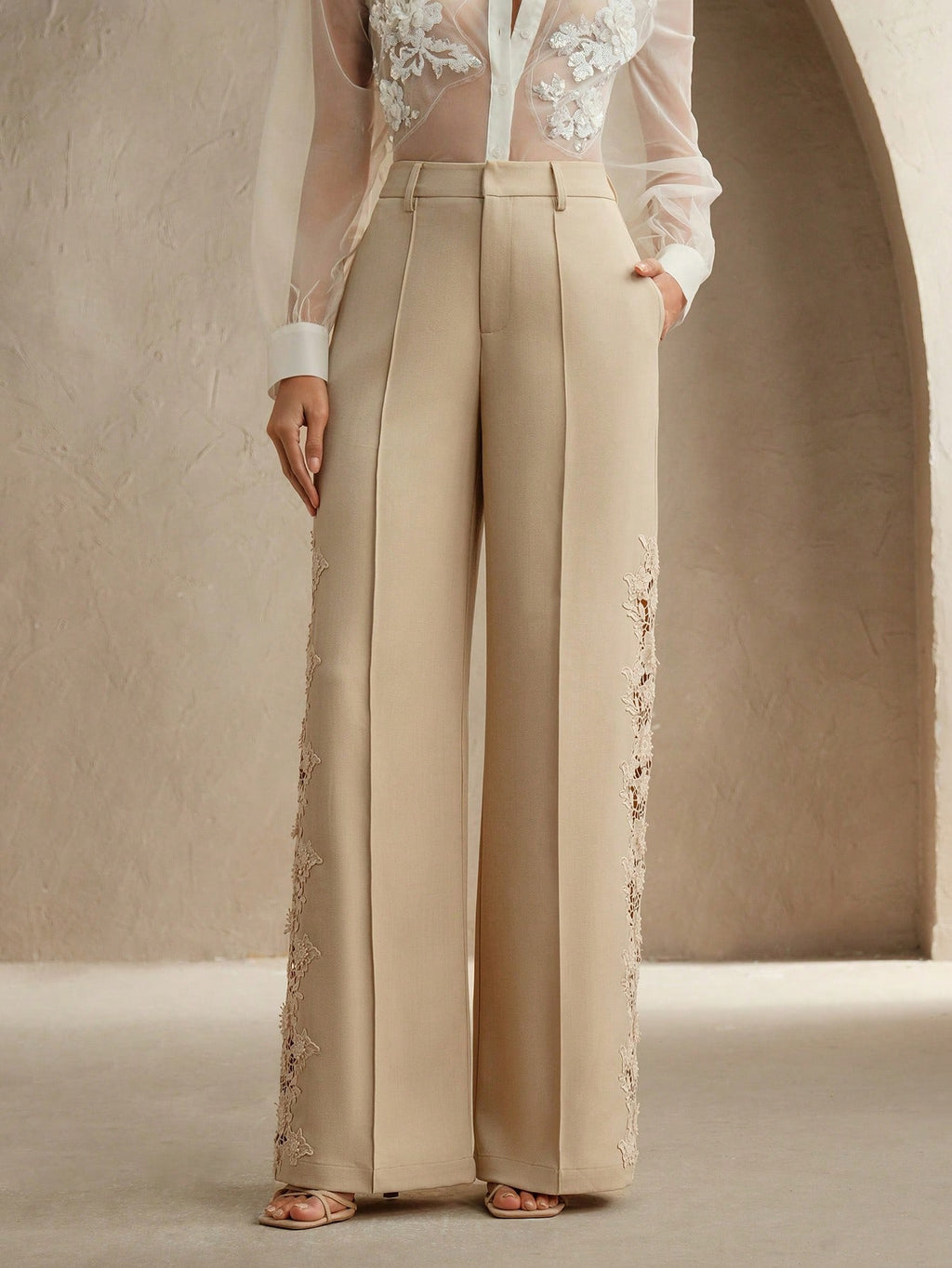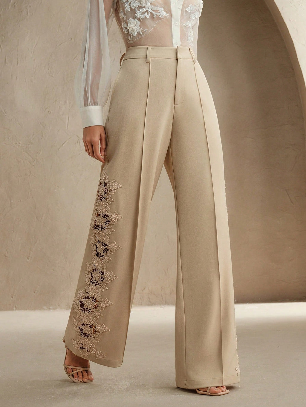 MIU Fashionable Commuter Pierced Embroidered Patchwork Design Women Suit Pants, Spring