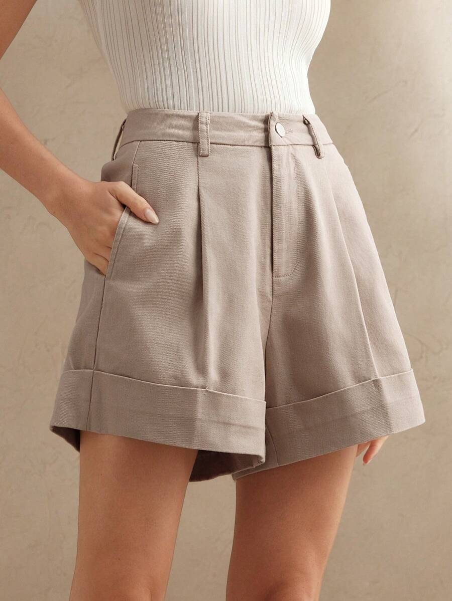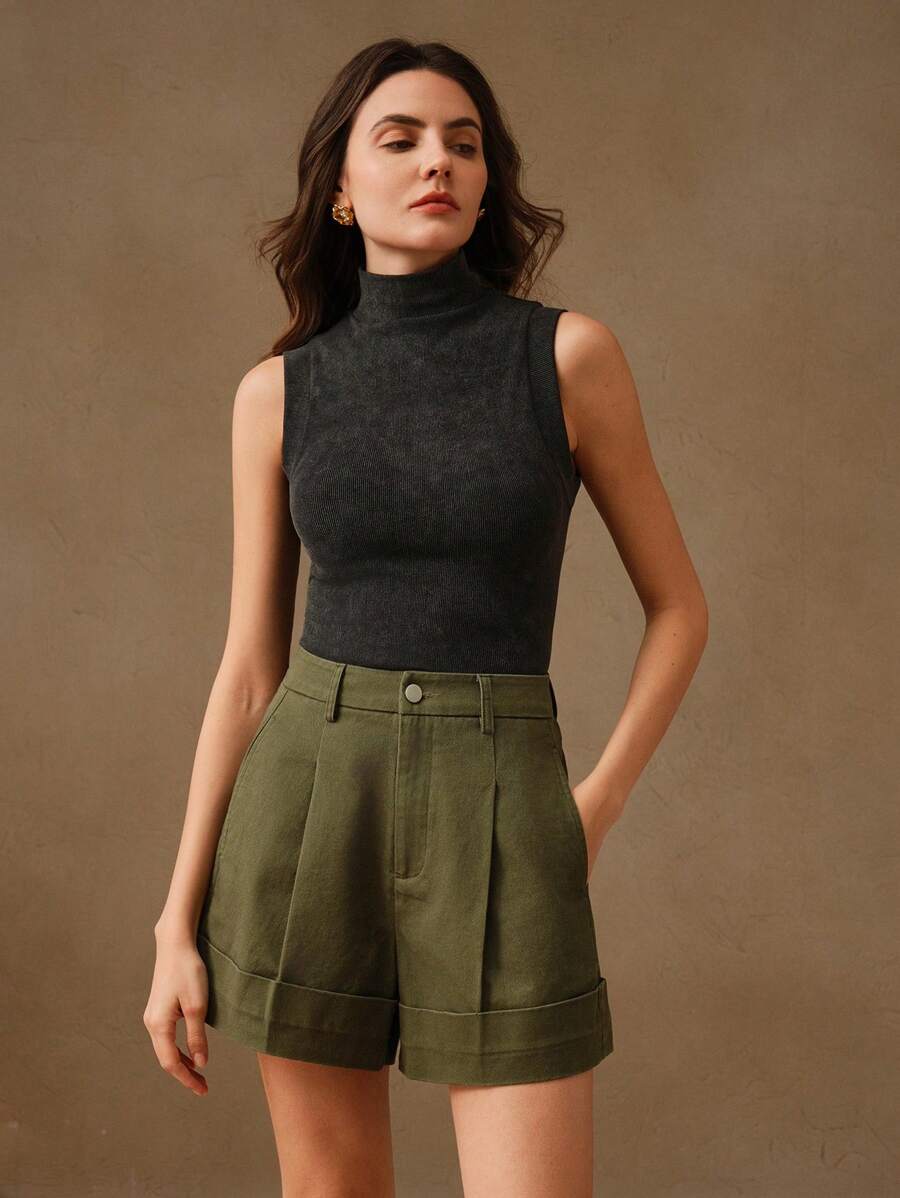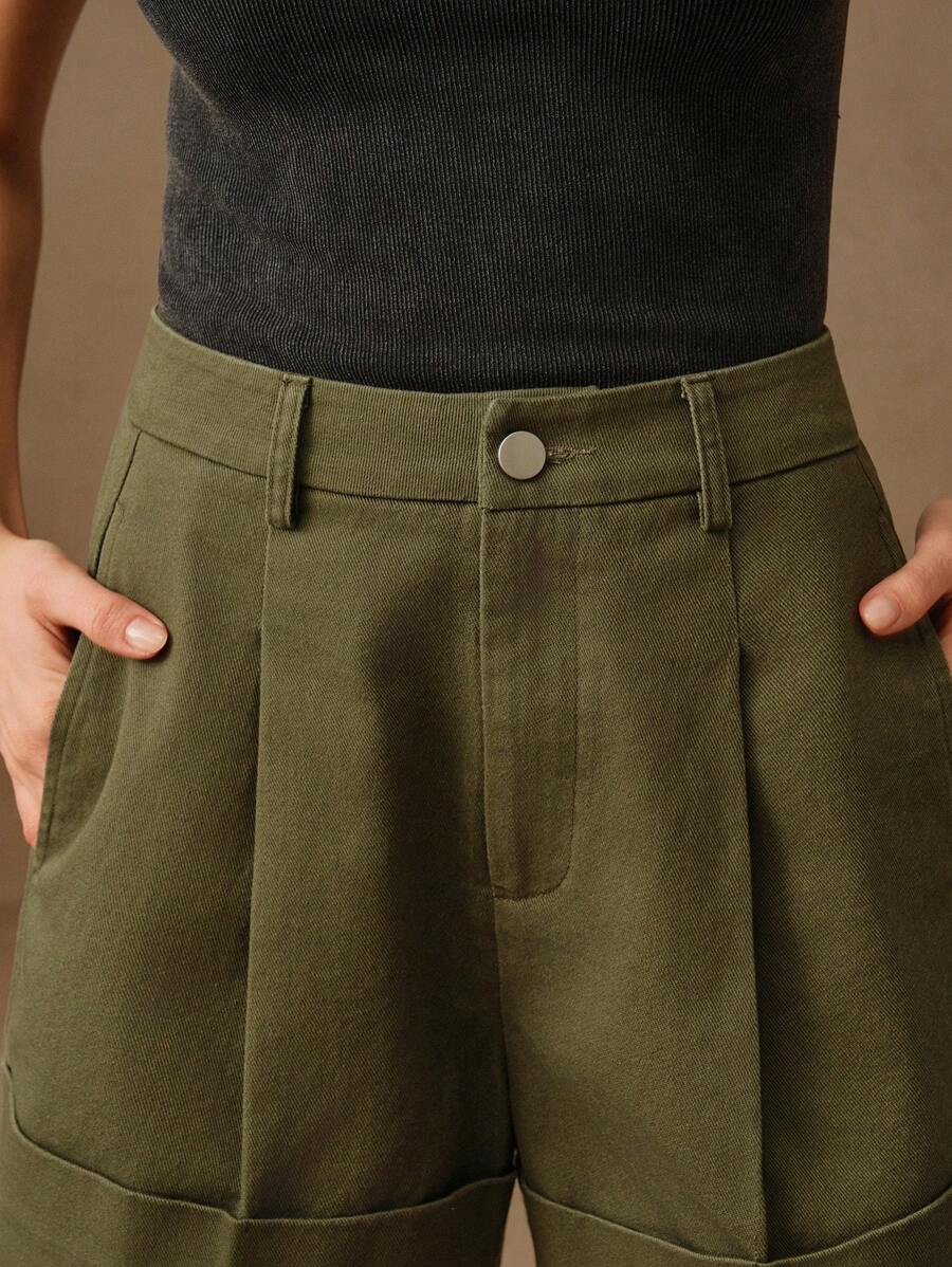 MIU Fashionable Elegant Military Green Women Wide Leg Shorts, Commuting