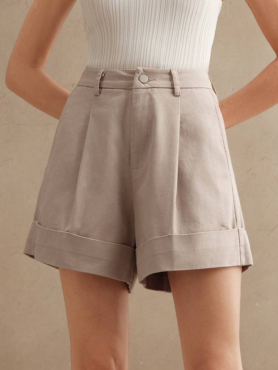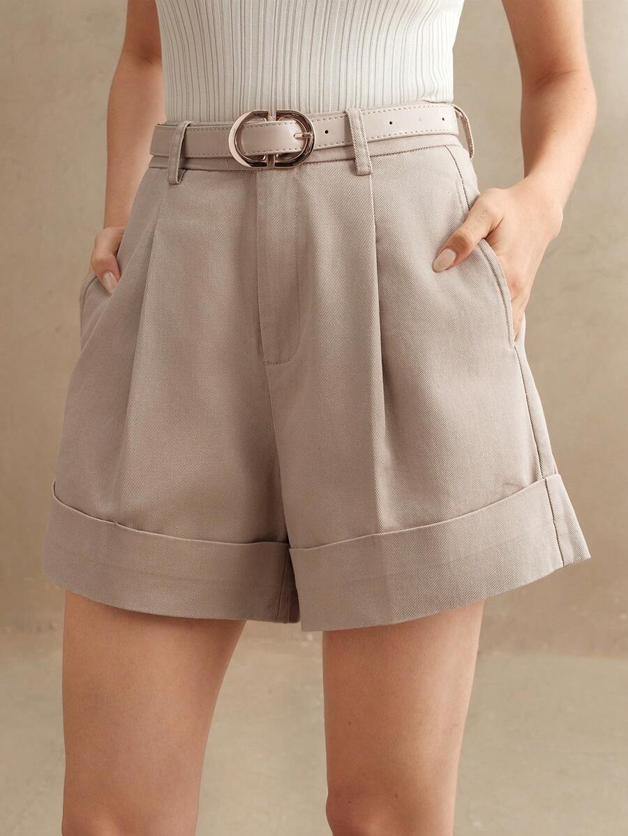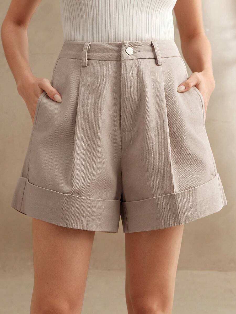 MIU Fashionable Elegant Military Green Women Wide Leg Shorts, Commuting