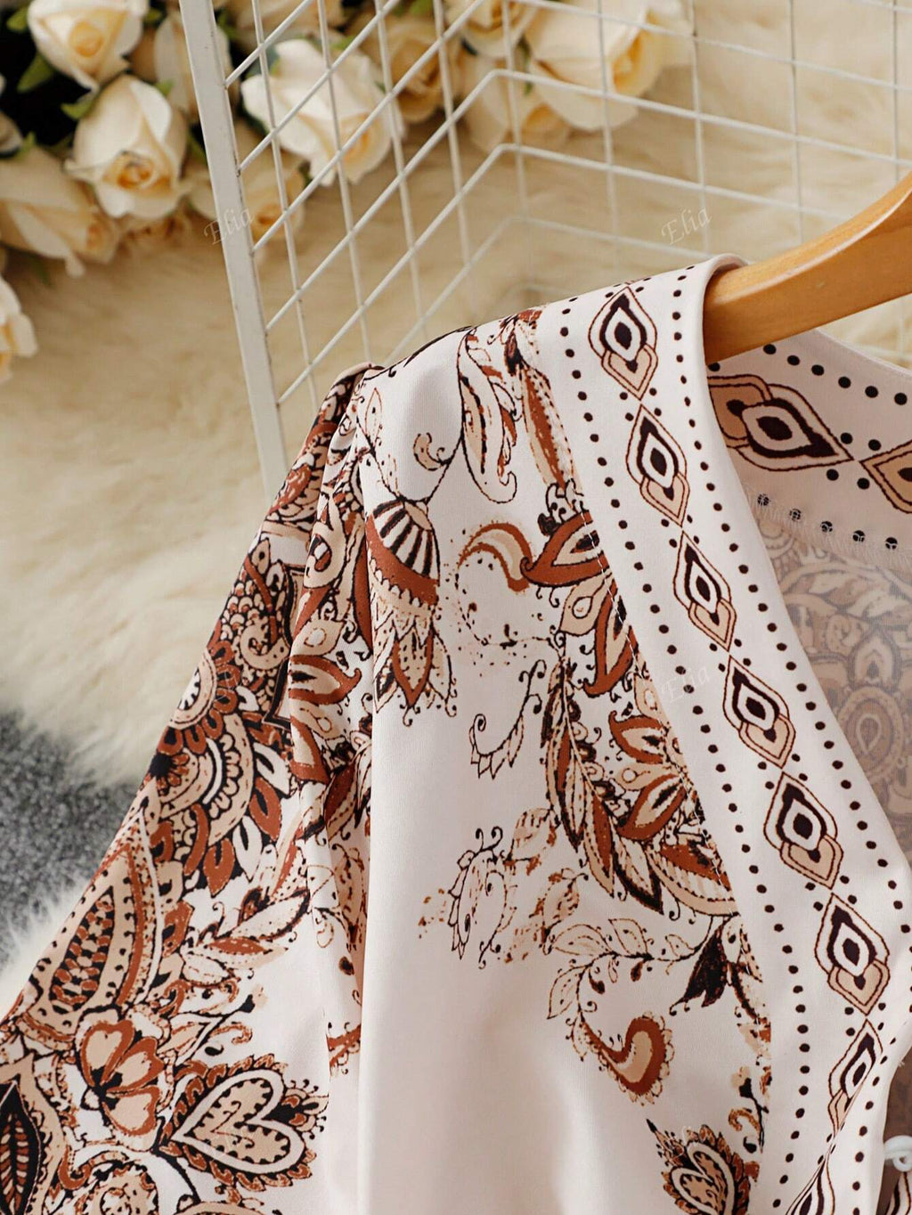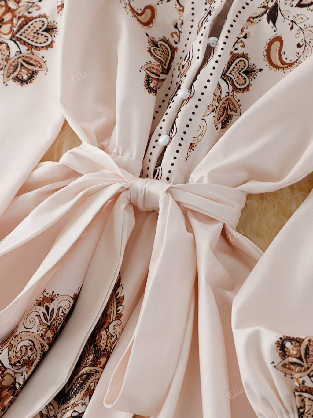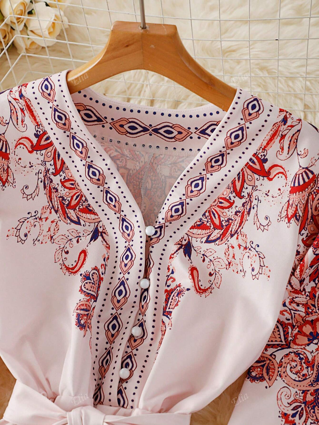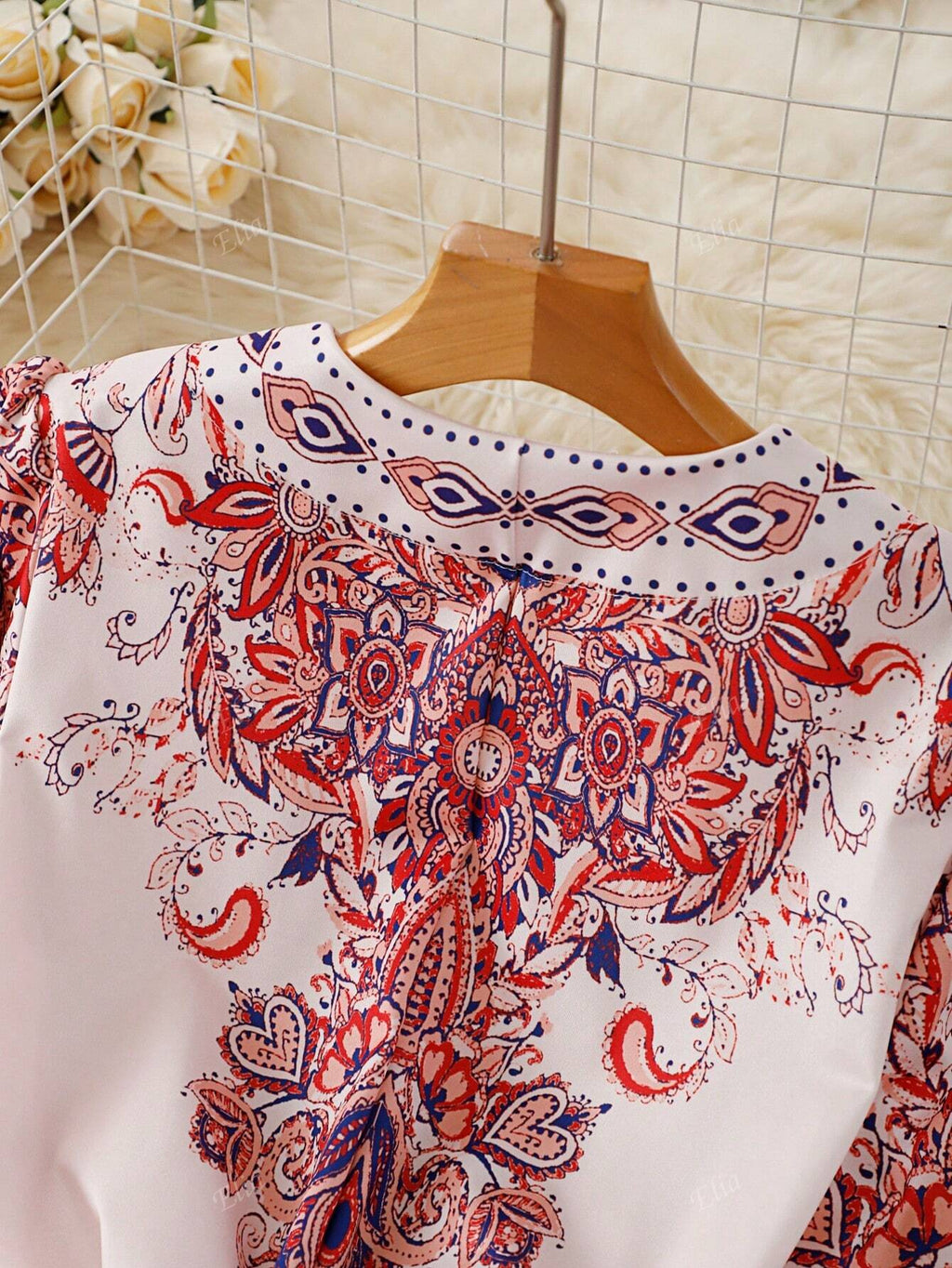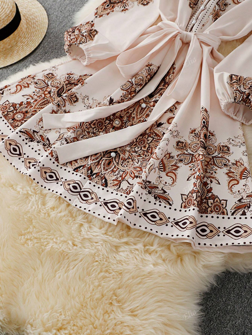 MIU Floral Print Lantern Sleeve Button-Front Dress, Boho Style, Long-Sleeved Short Floral Slim-Fitting Skirt For Women, Spring And Summer, Resort Wear