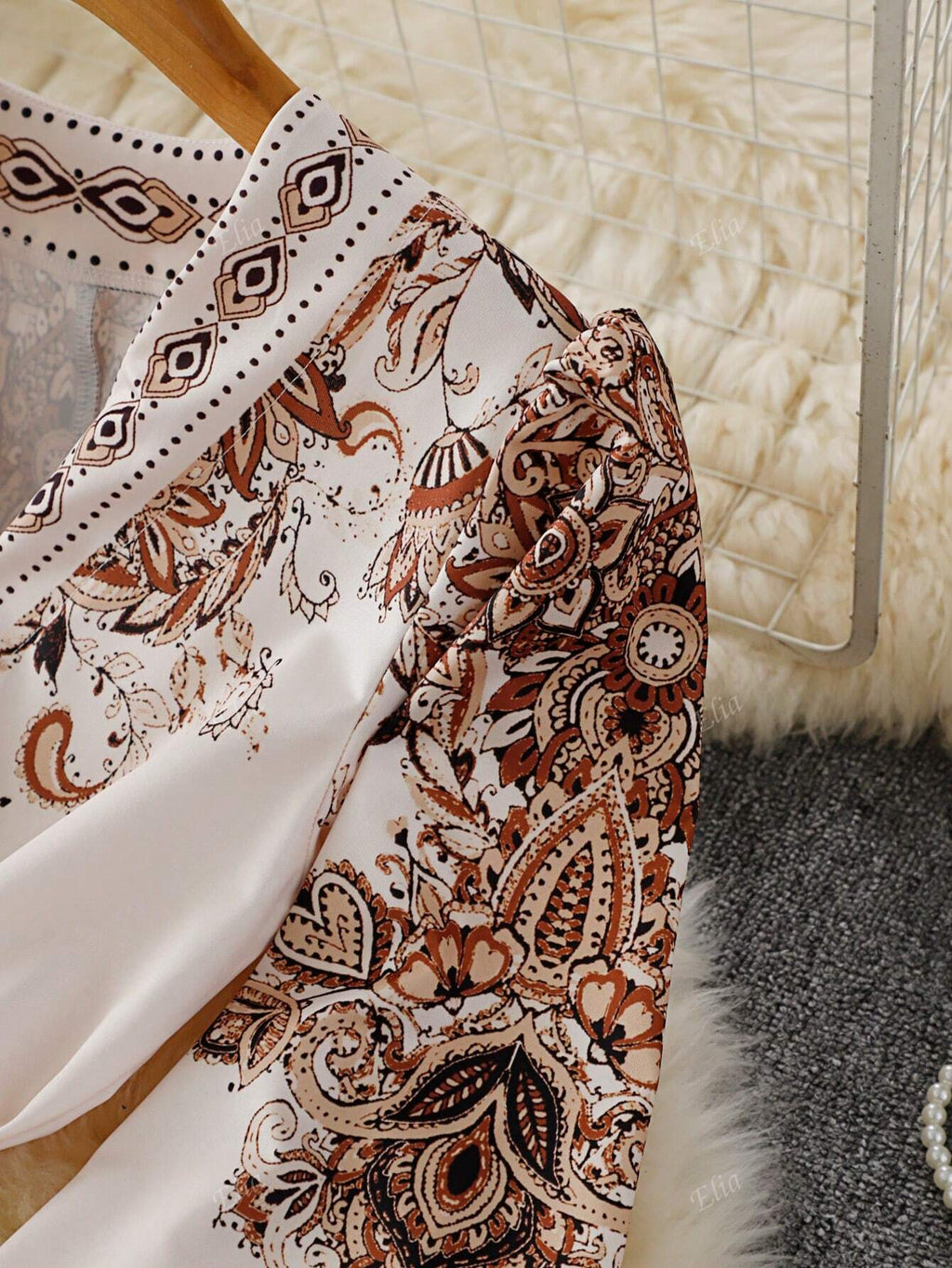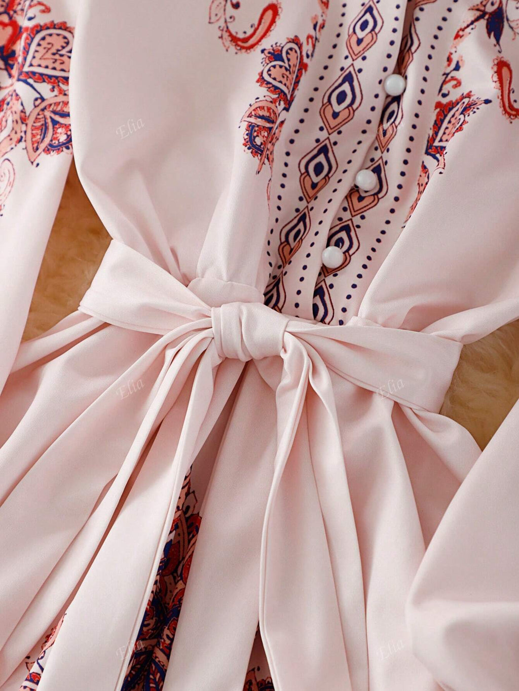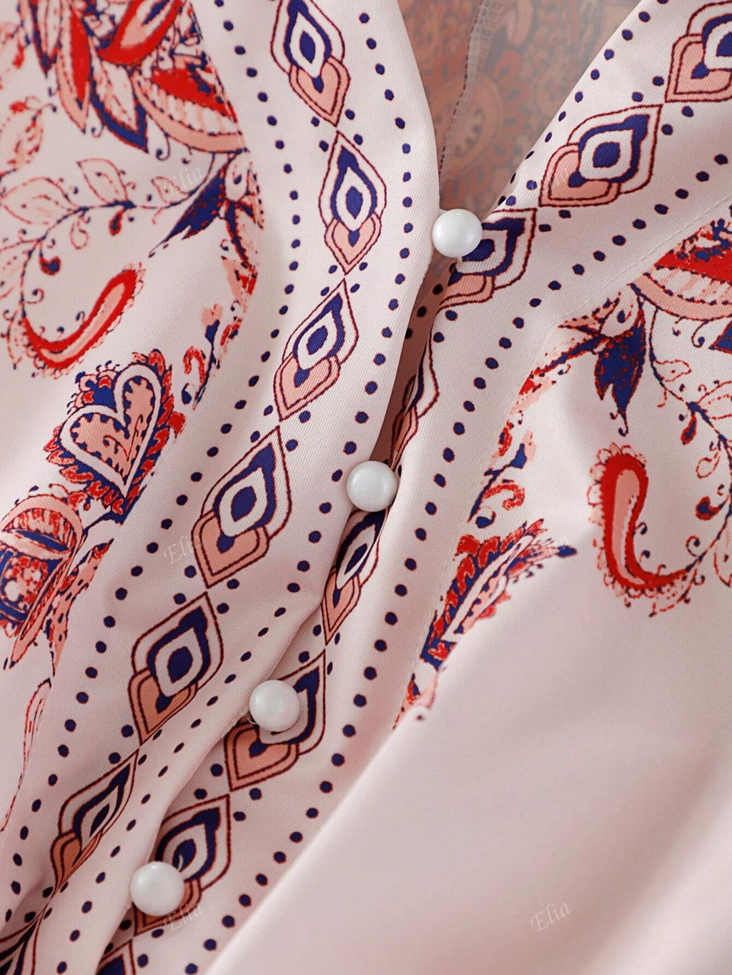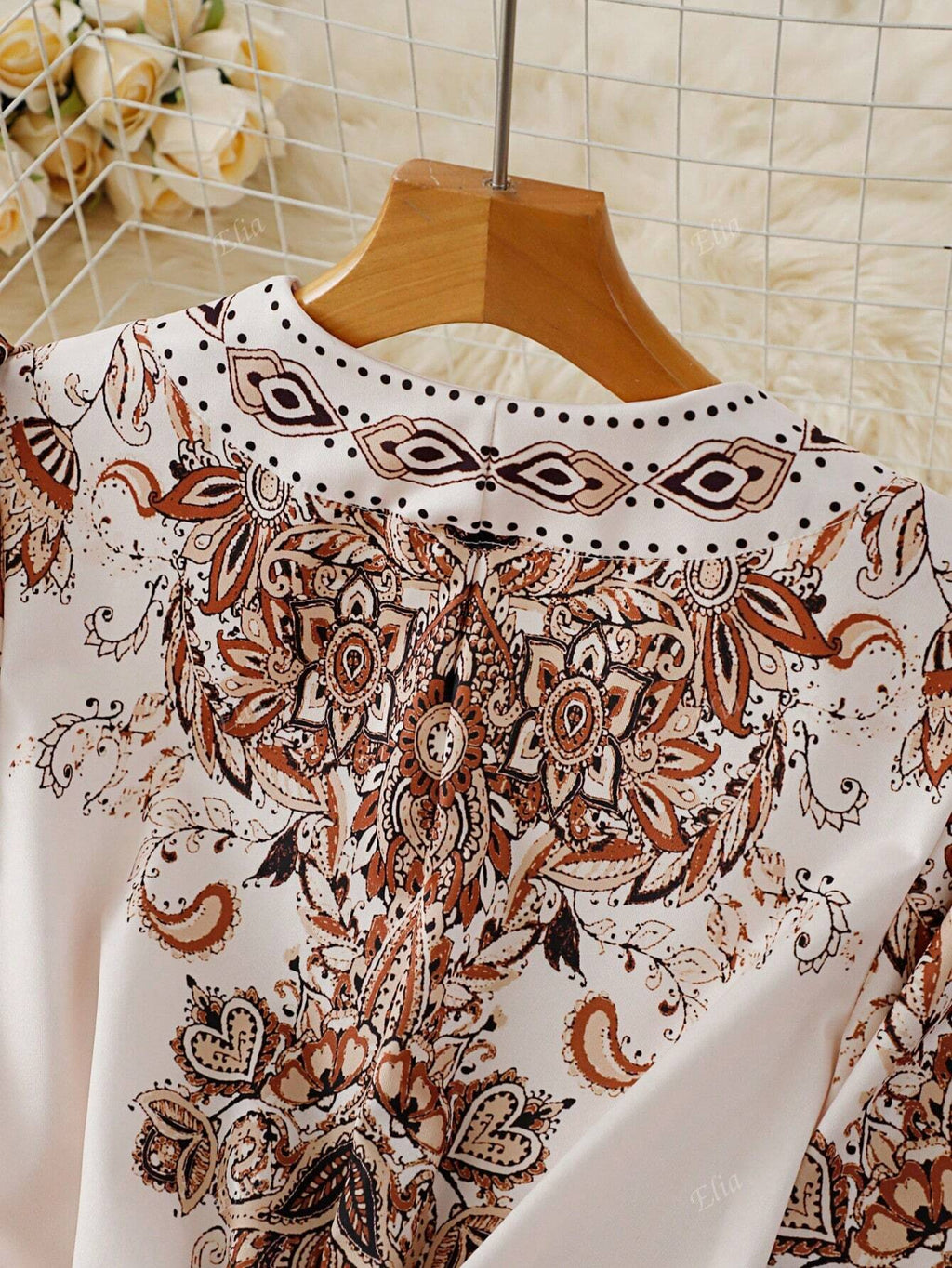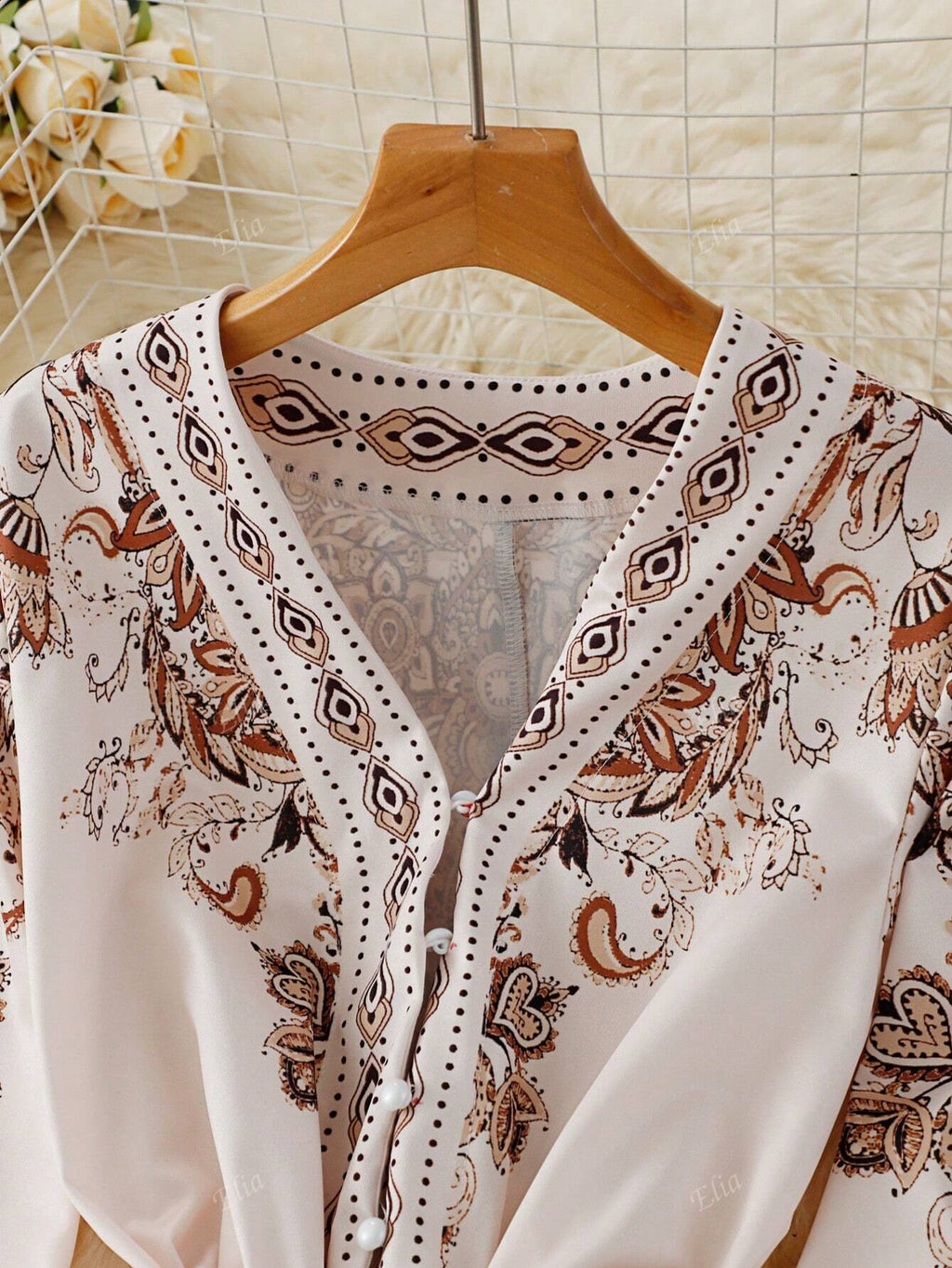 MIU Floral Print Lantern Sleeve Button-Front Dress, Boho Style, Long-Sleeved Short Floral Slim-Fitting Skirt For Women, Spring And Summer, Resort Wear