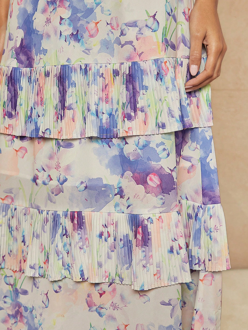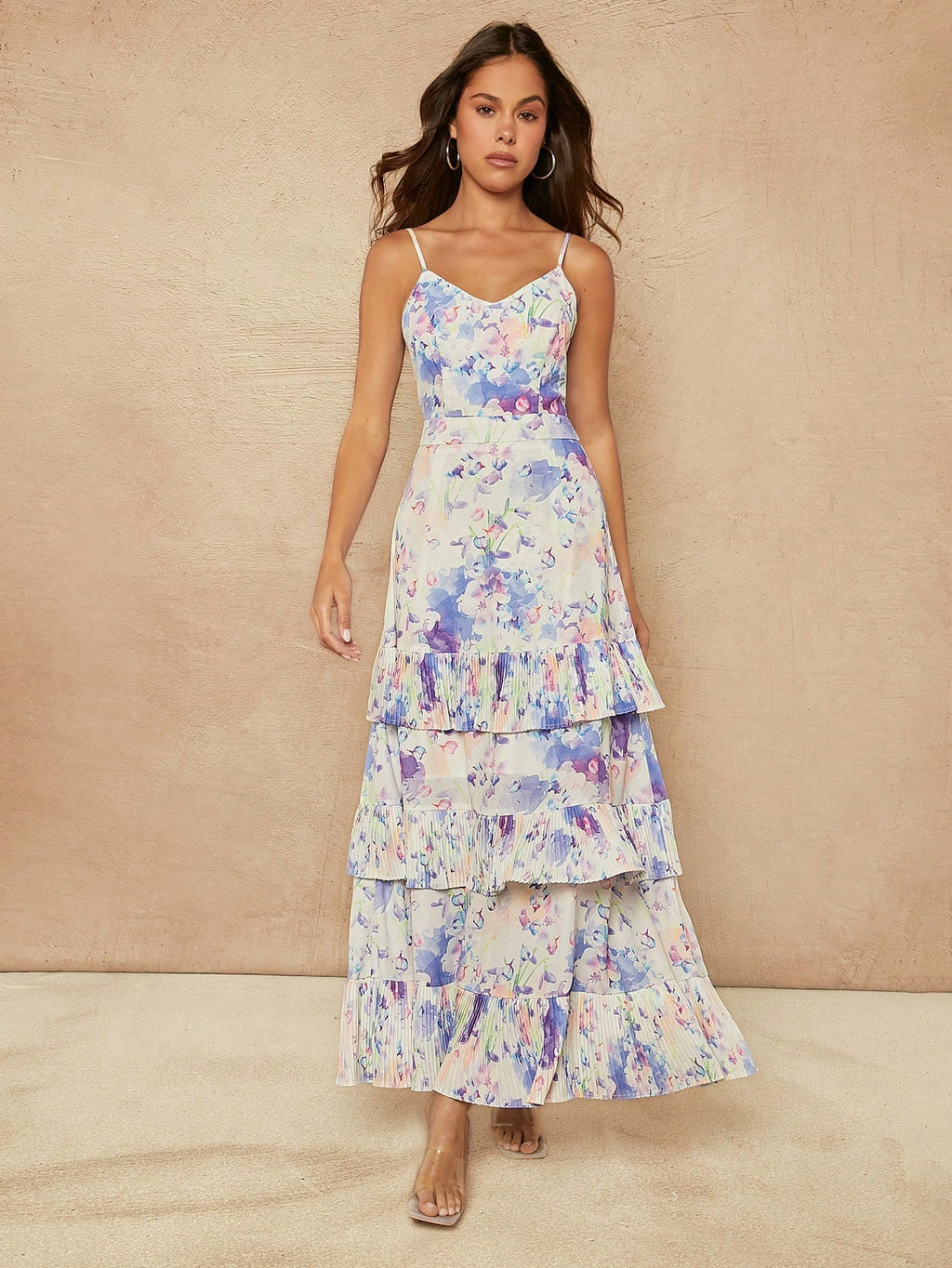 MIU Floral Print Tiered Ruffle Tie Back Cami Dress For Summer Vacation