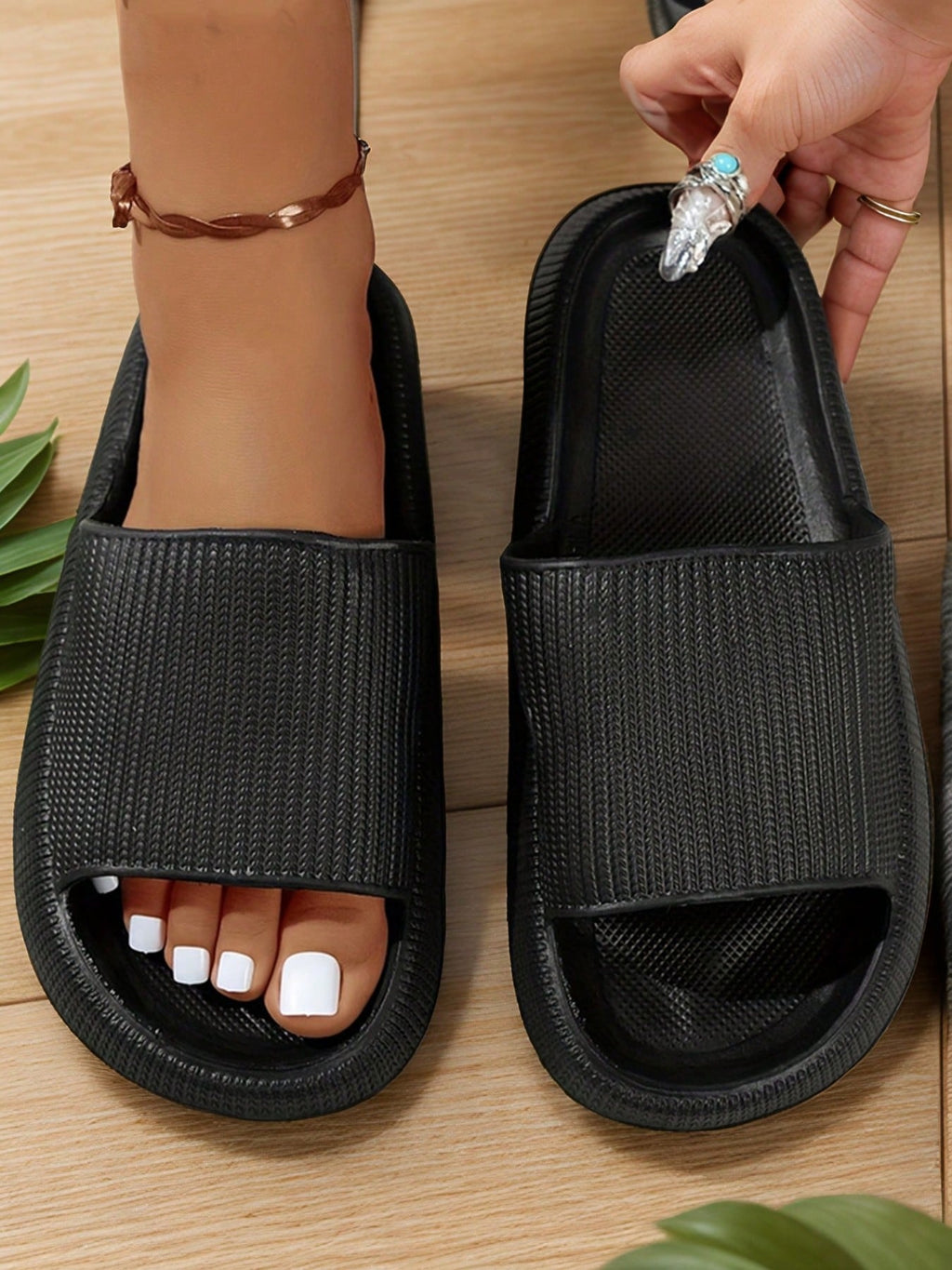 MIU Four Seasons Women's Fashion Cool Slippers,EVA Material Non-Slip Deodorant Open-Toe Soft Bottom Breathable Comfortable Home Slippers,Black Casual Daily Wear, Suitable For Walking At Home Or Outdoors, Essential Slippers For Daily Commuting