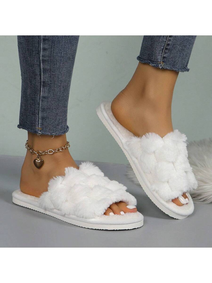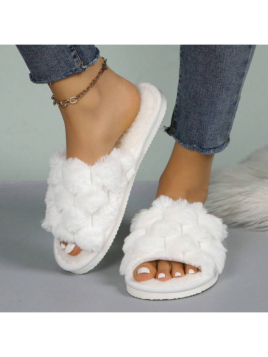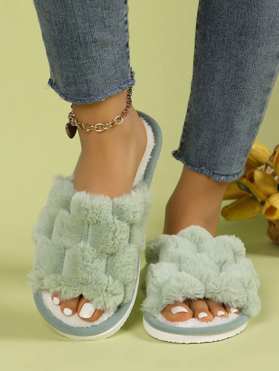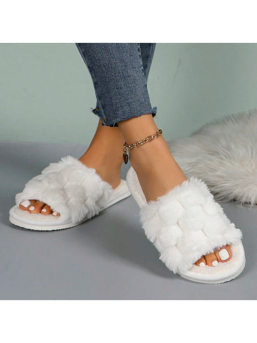 MIU Furry House Slippers For Women, Breathable Open-Toe Slip-On, Suitable For All Seasons