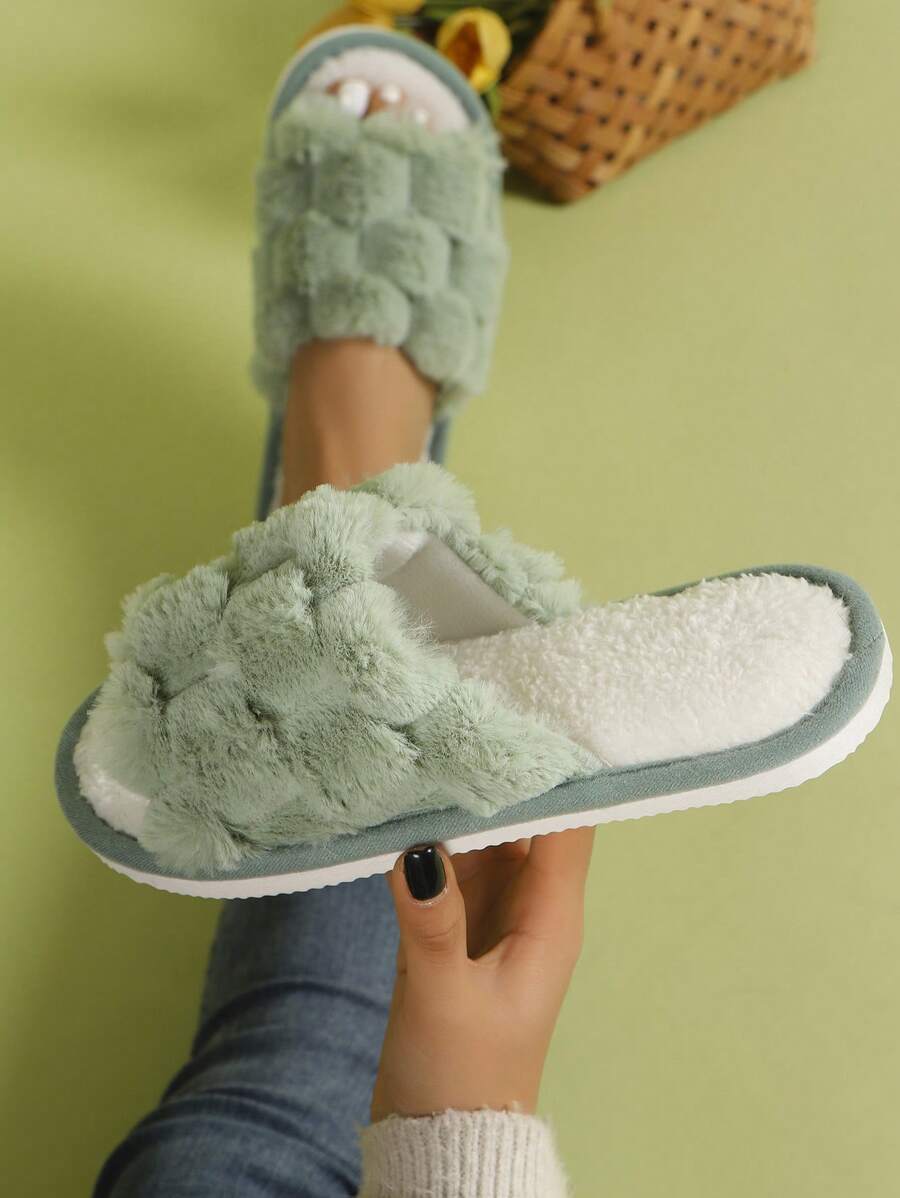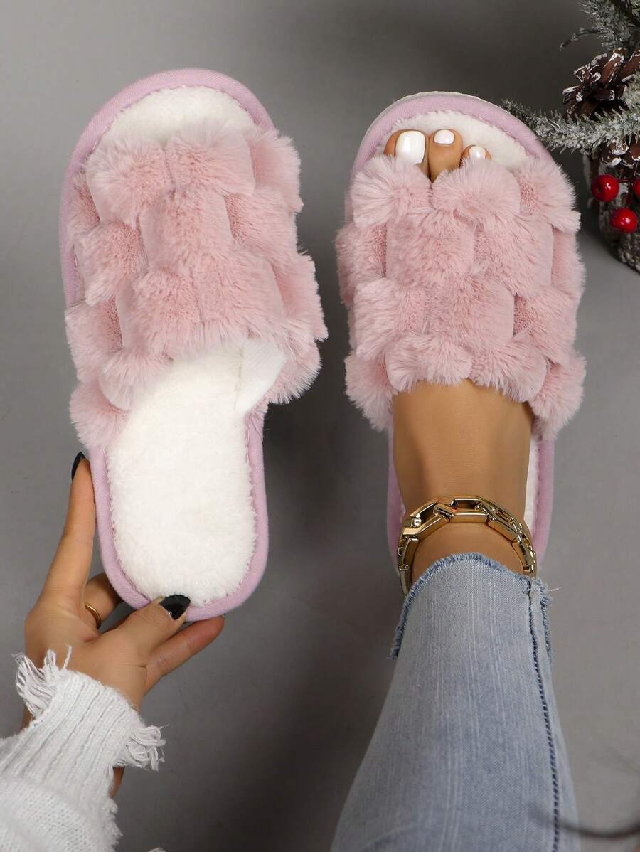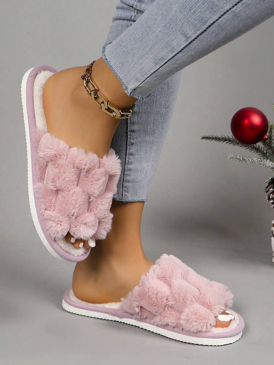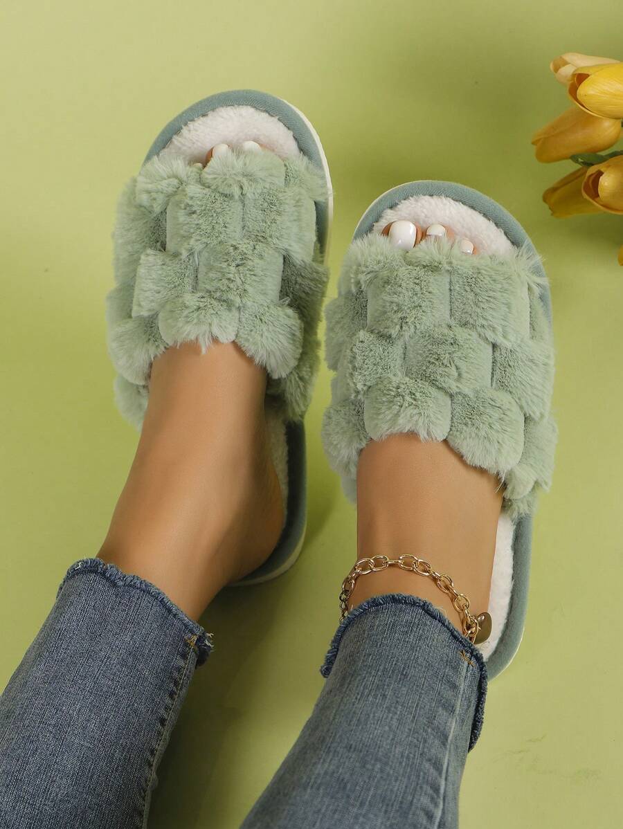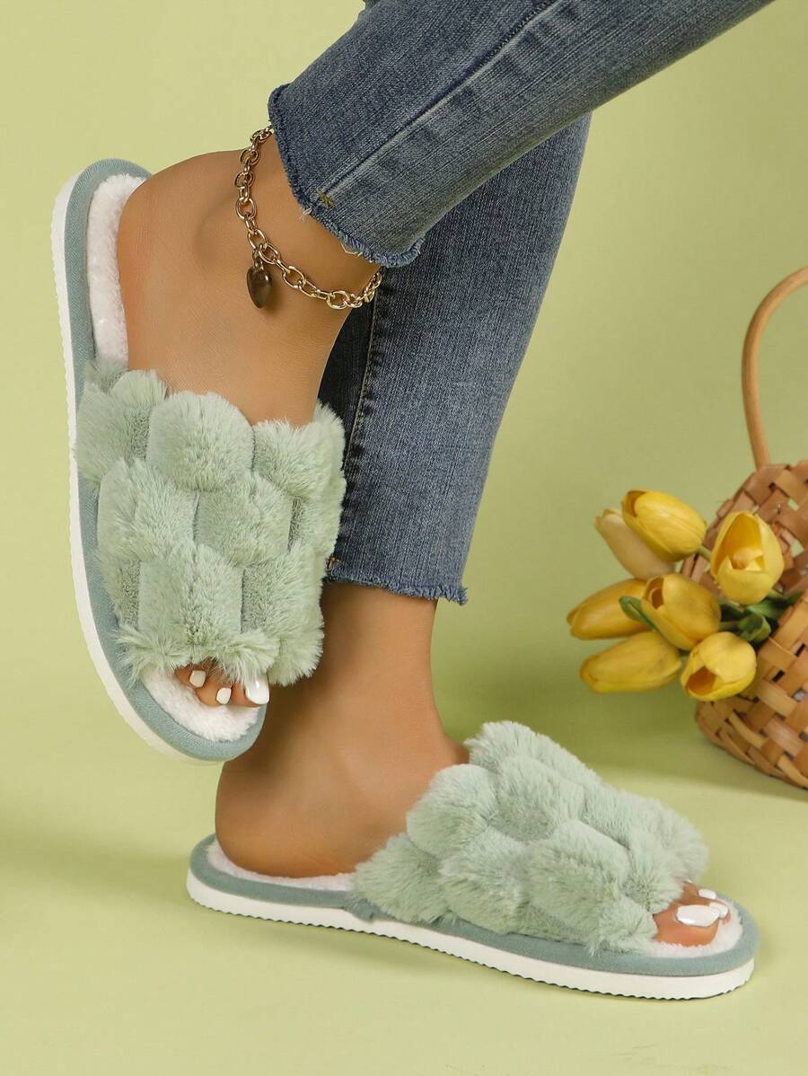 MIU Furry House Slippers For Women, Breathable Open-Toe Slip-On, Suitable For All Seasons