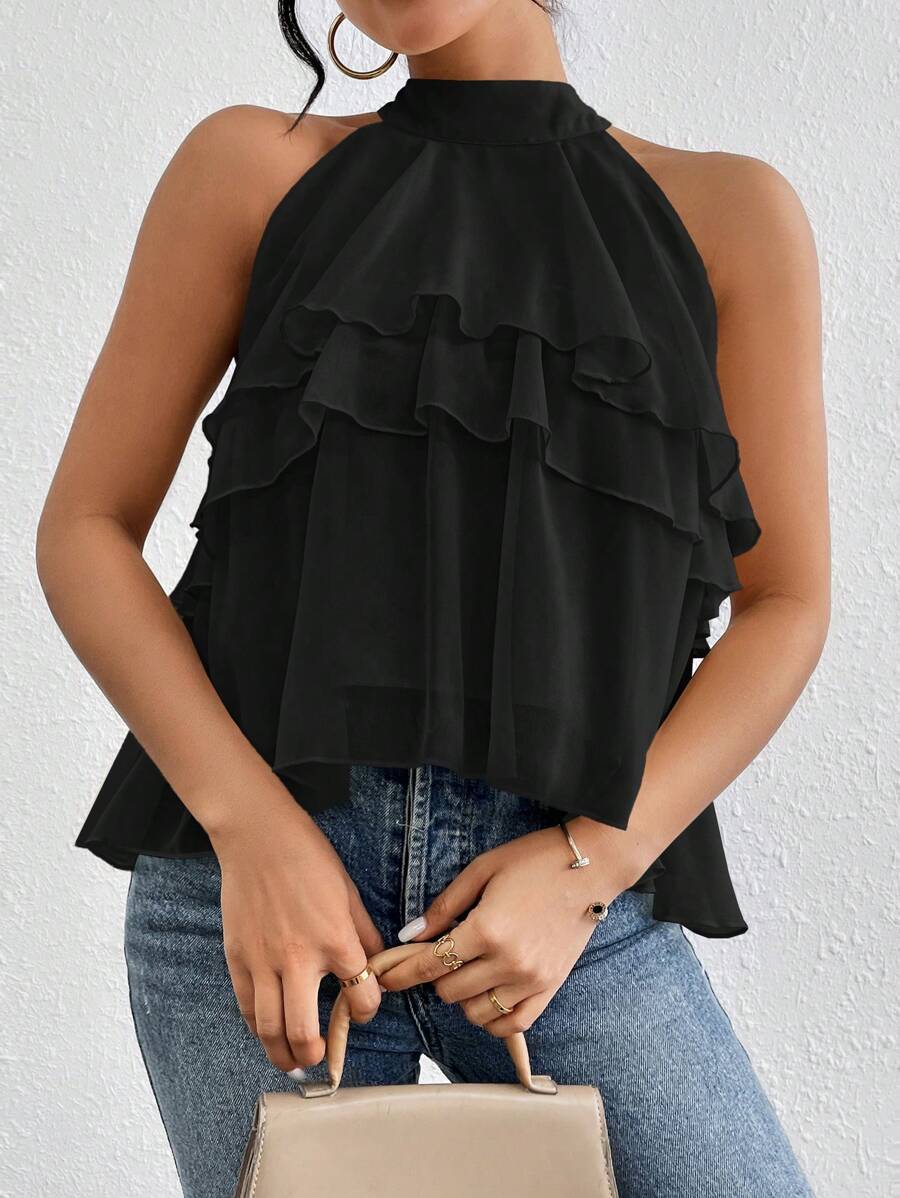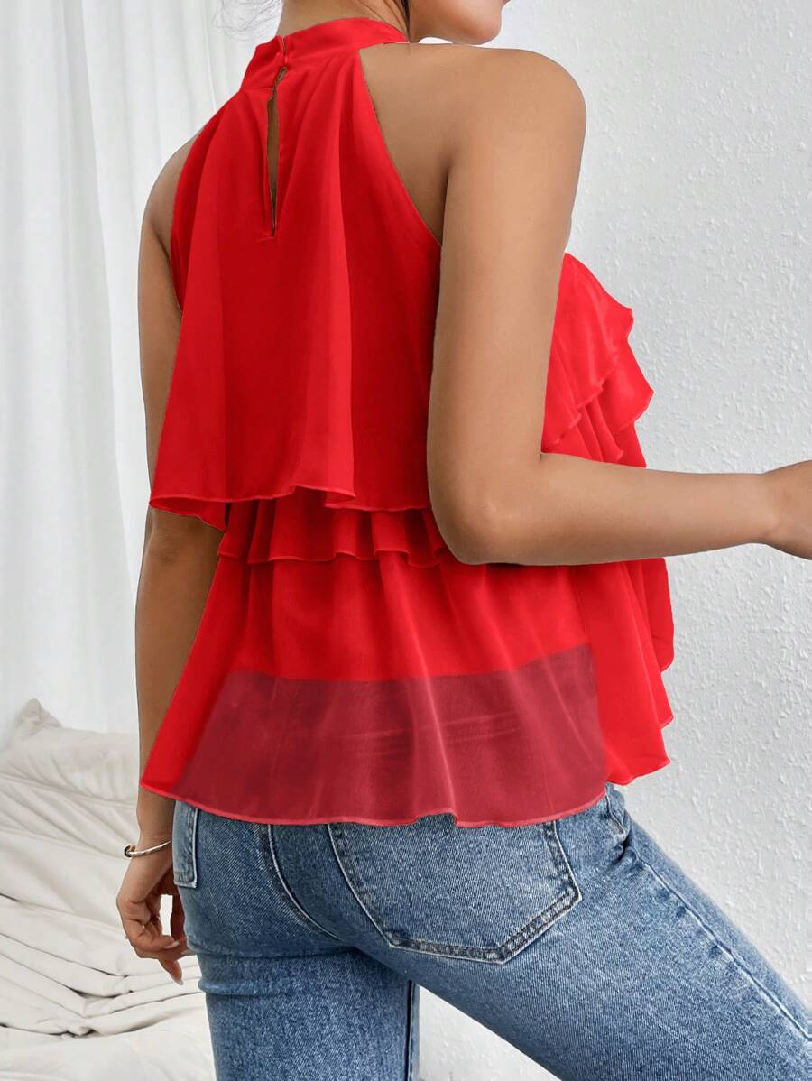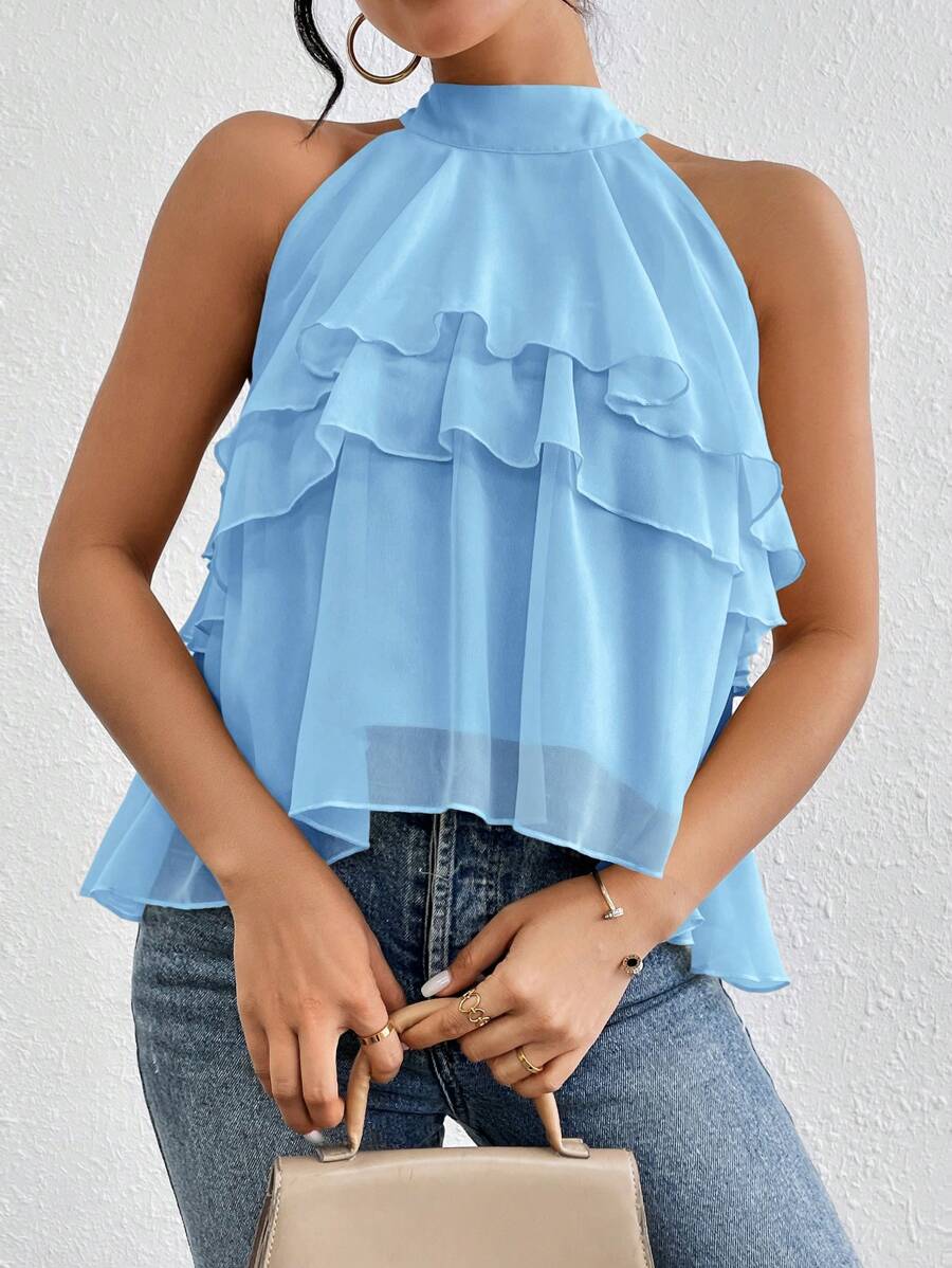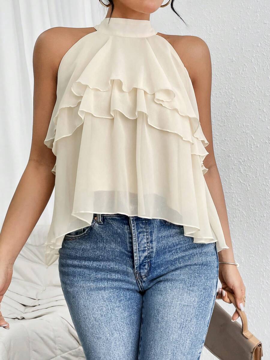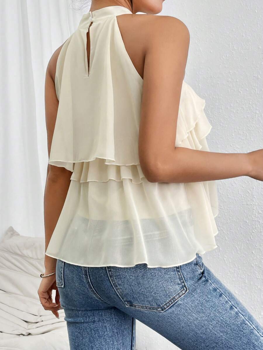 MIU Halter Neck Ruffled Cake Chiffon Blouse