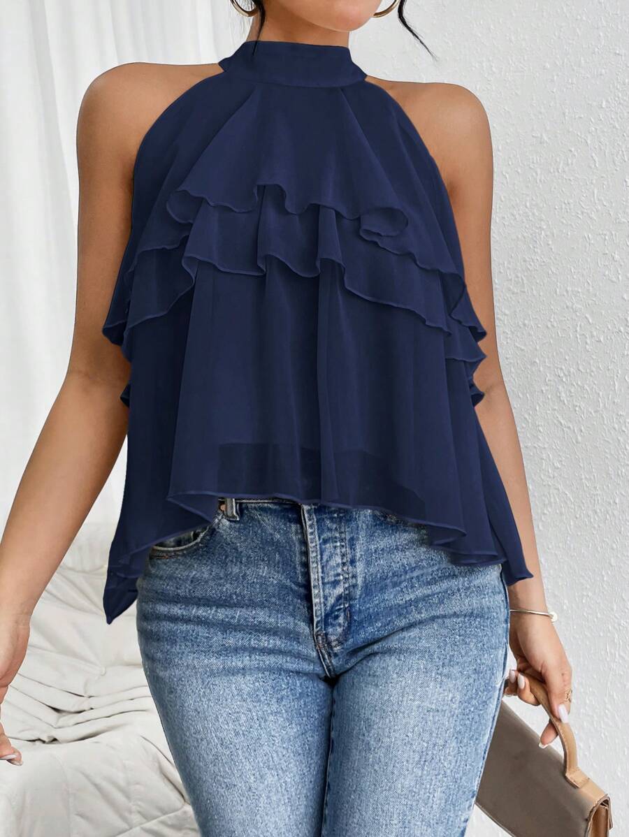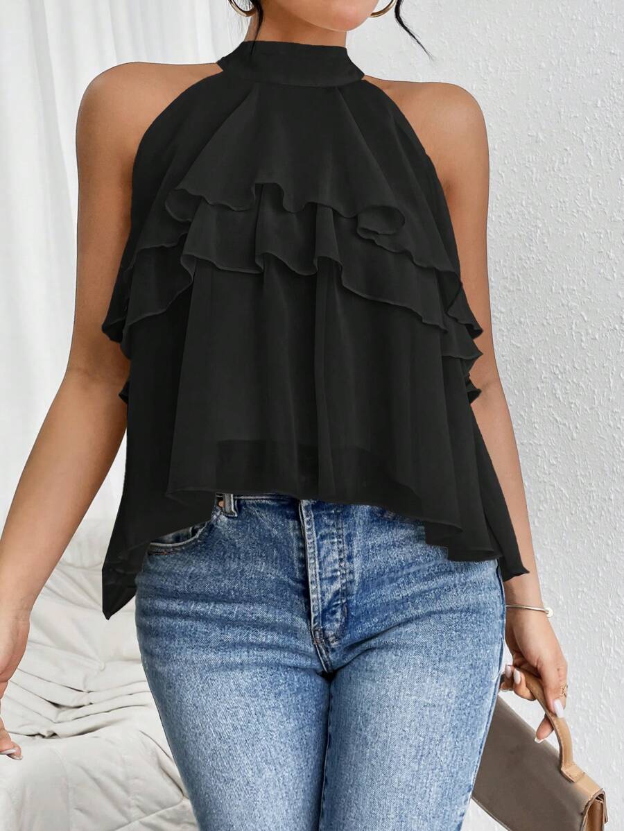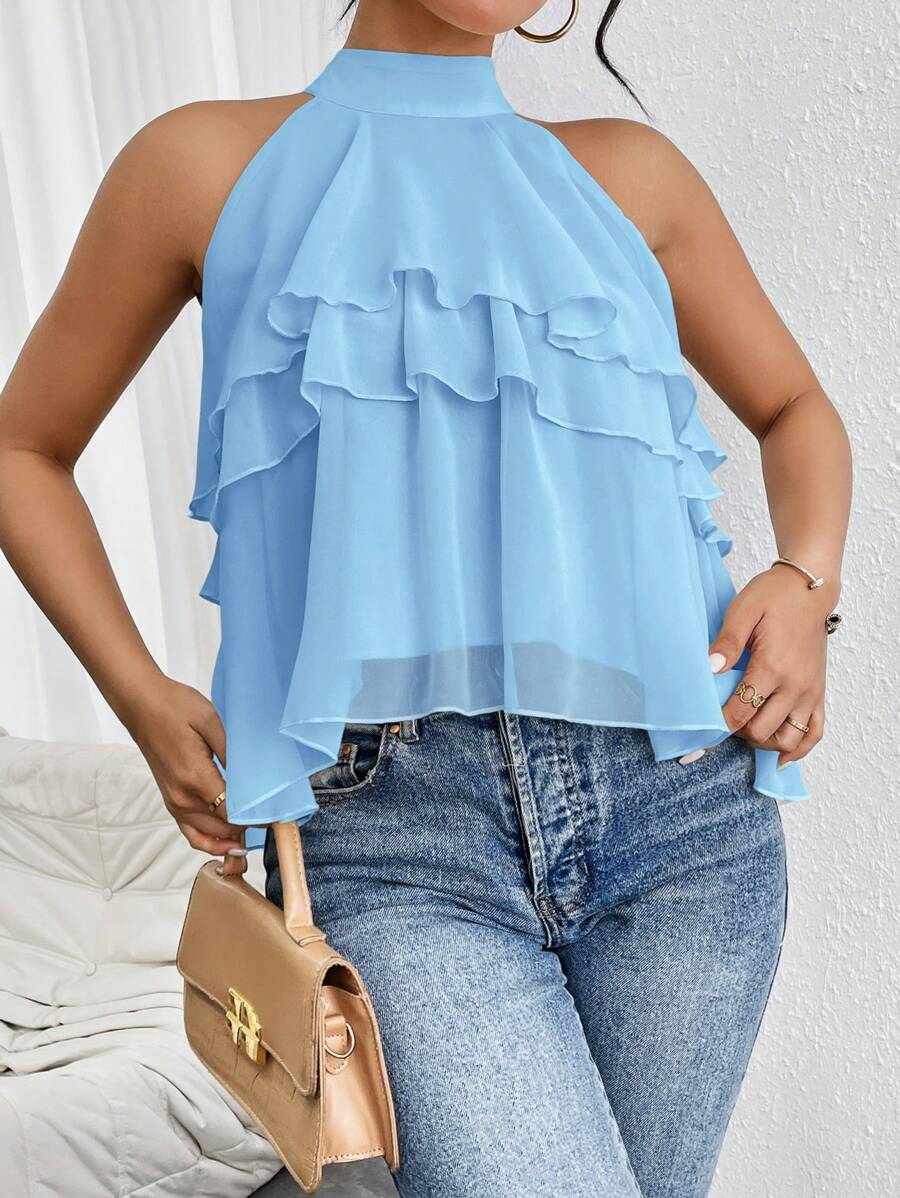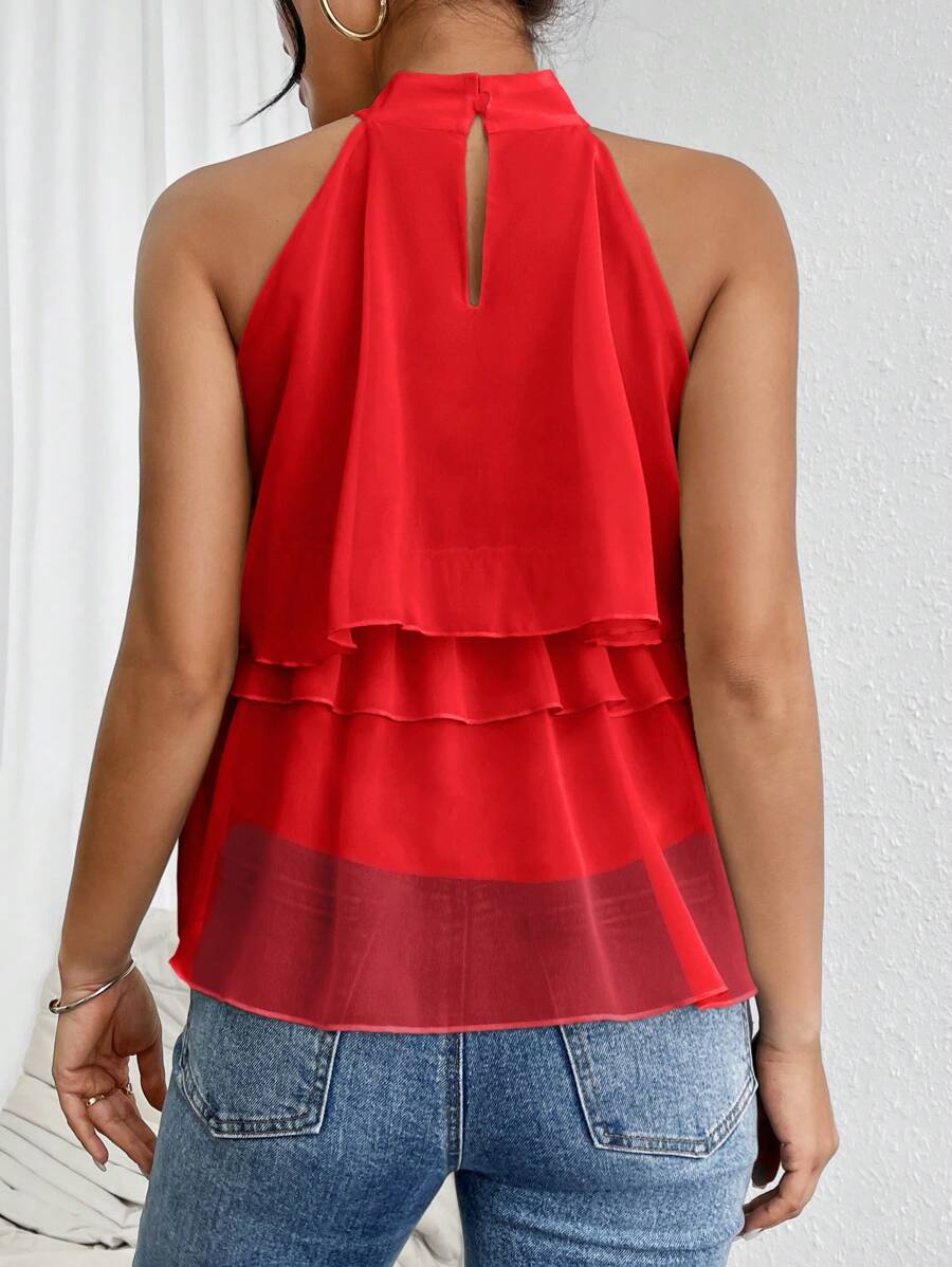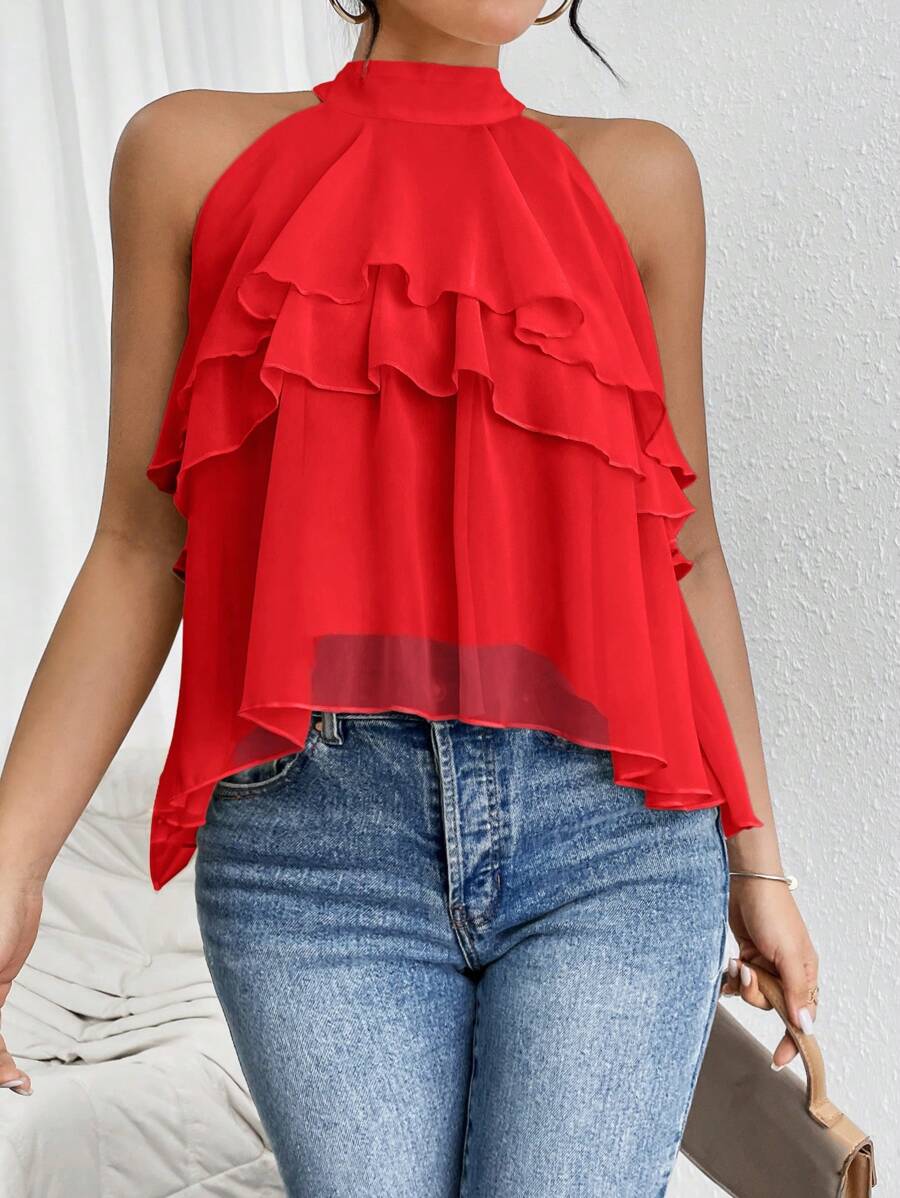 MIU Halter Neck Ruffled Cake Chiffon Blouse