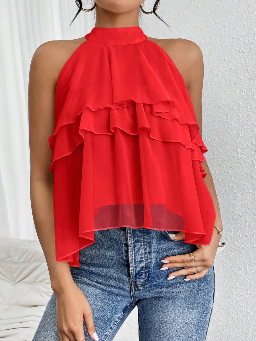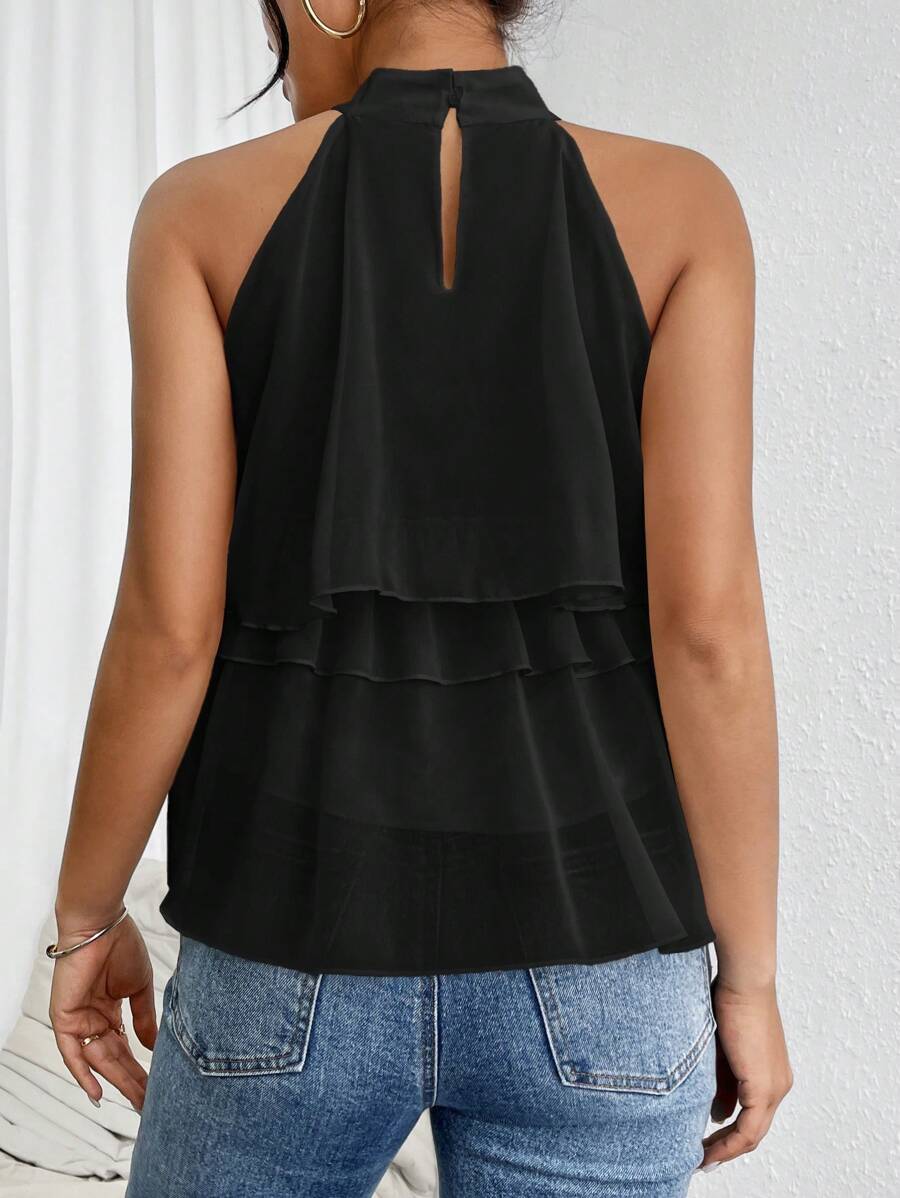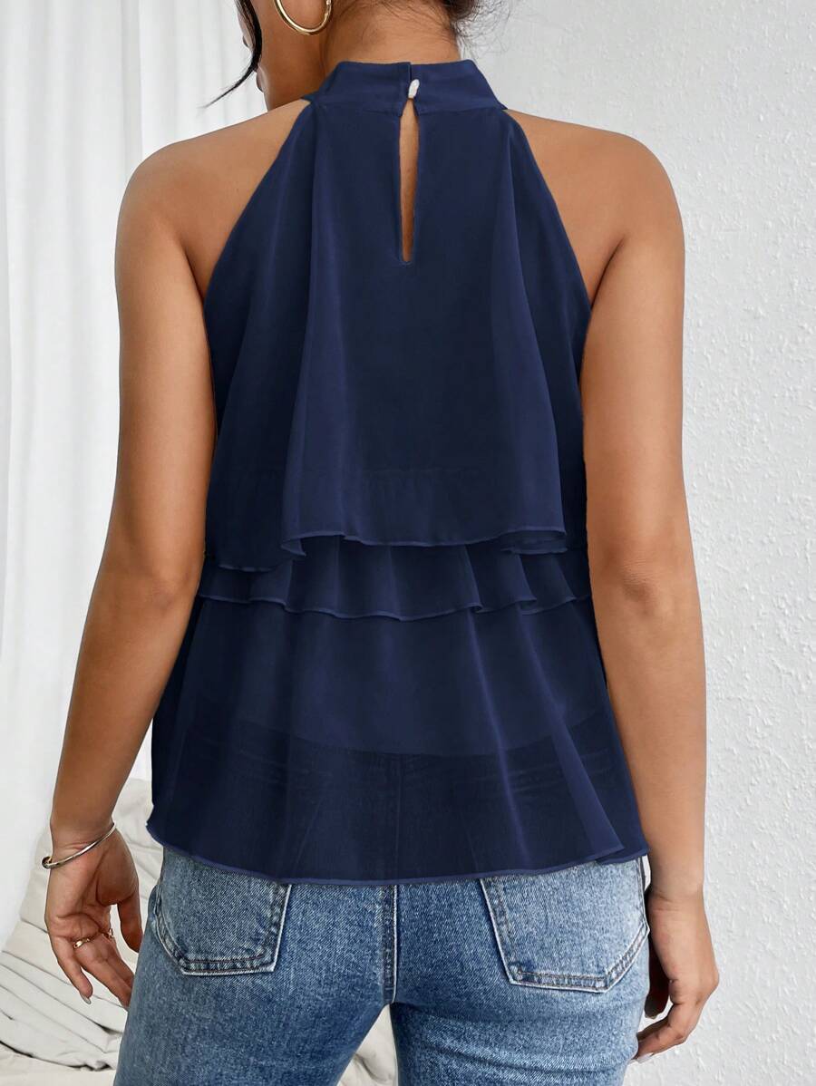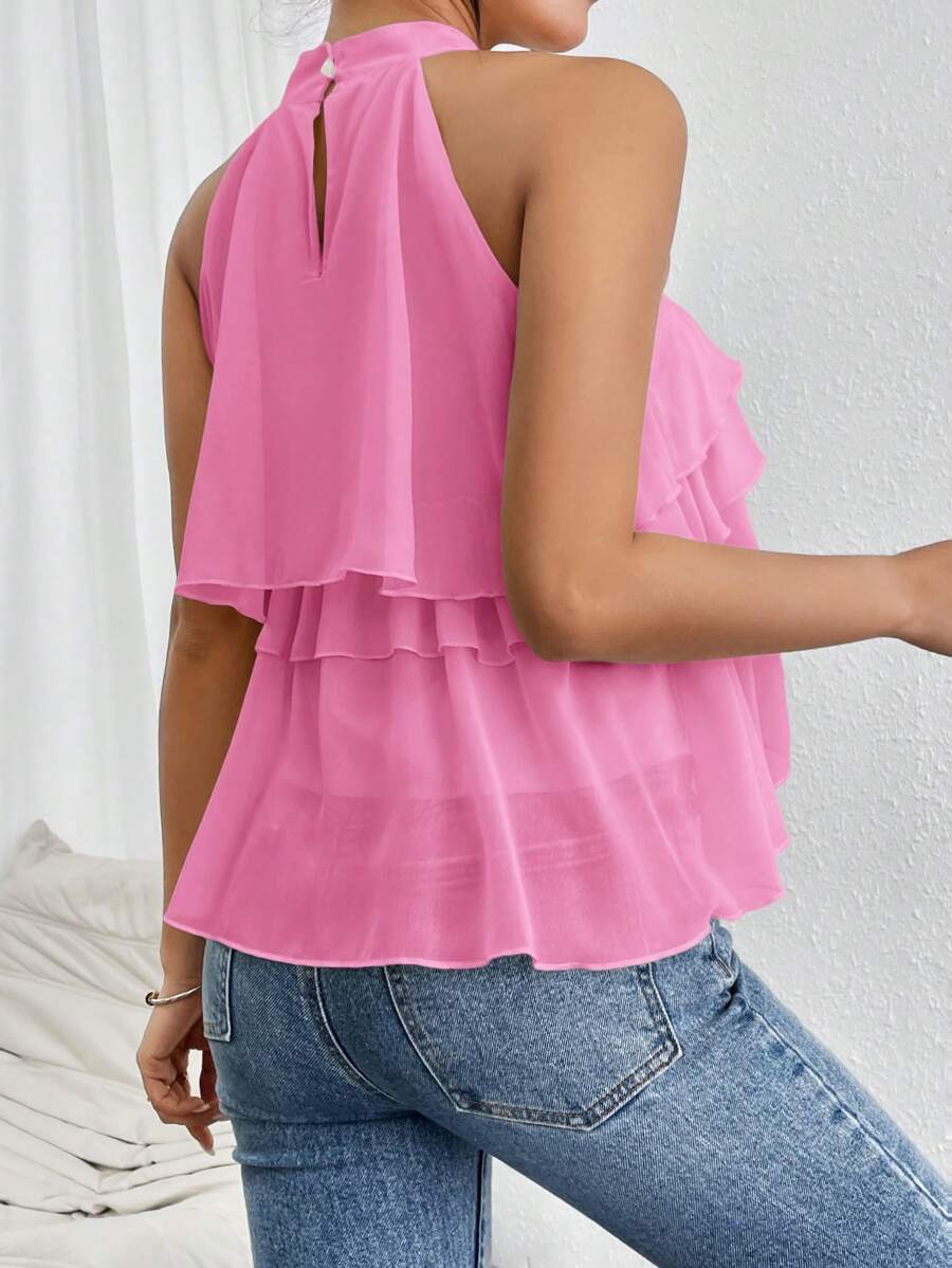MIU Halter Neck Ruffled Cake Chiffon Blouse