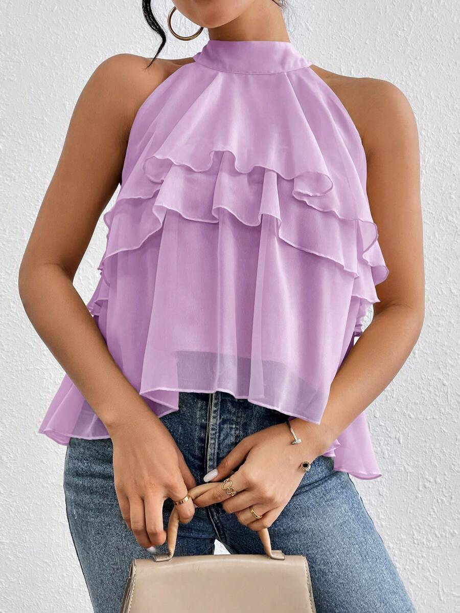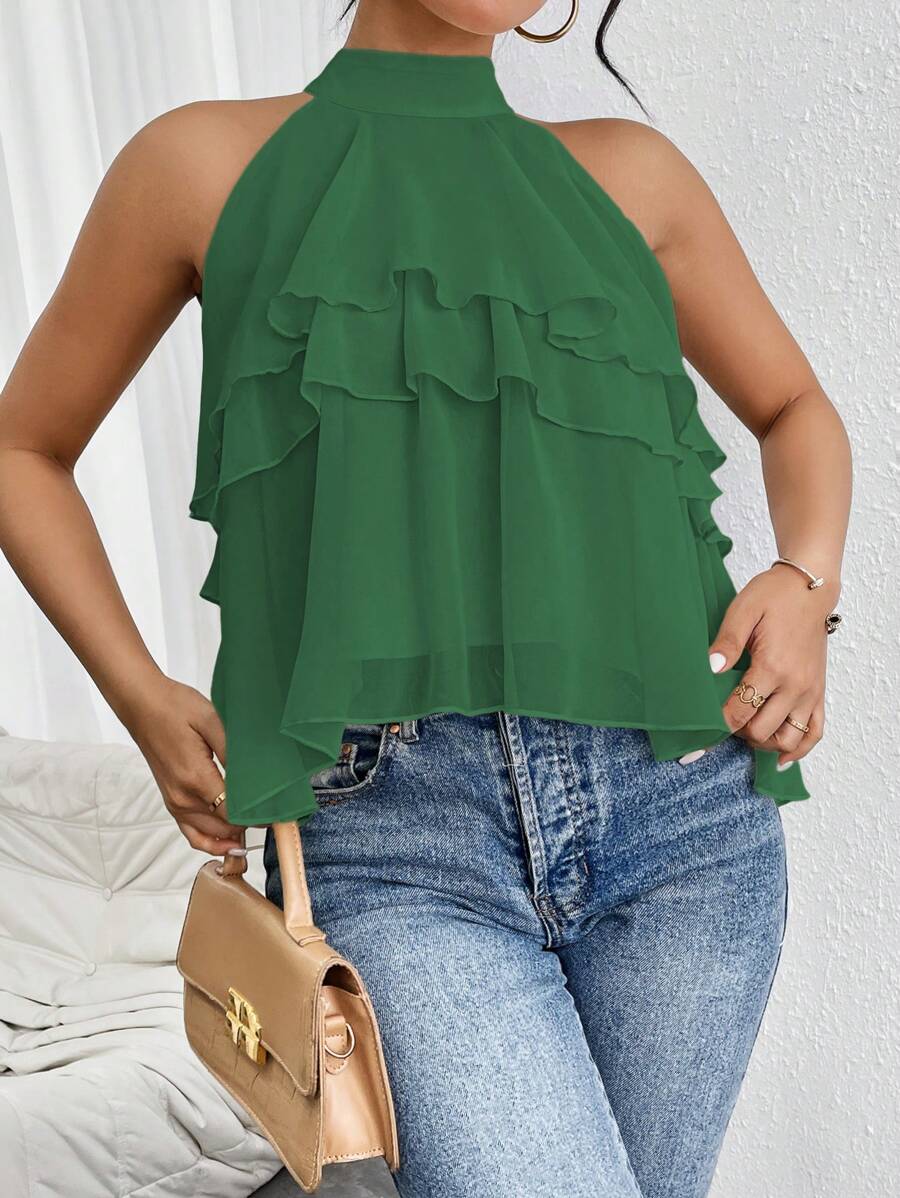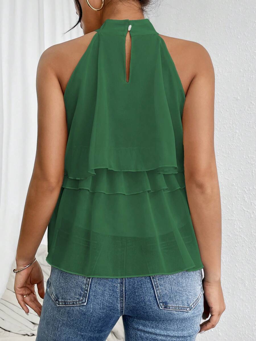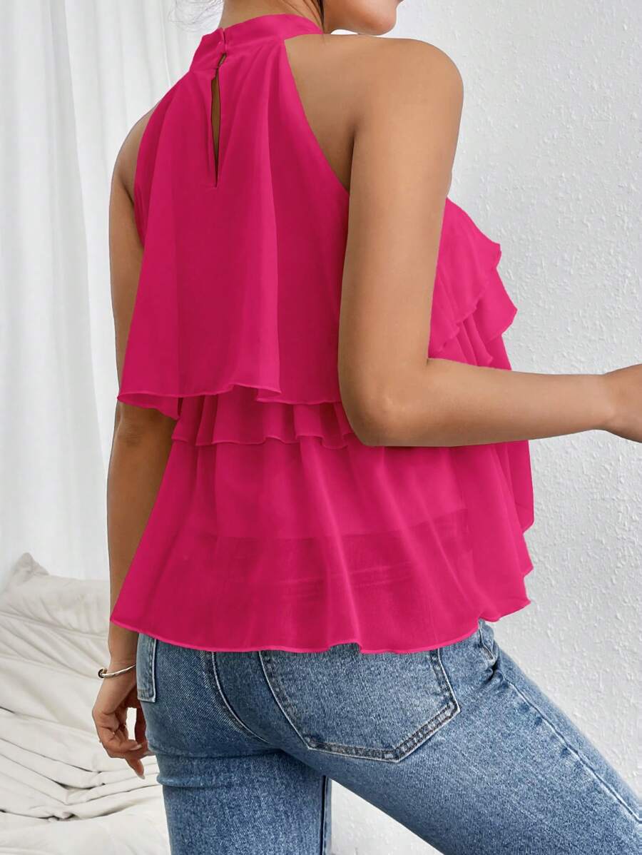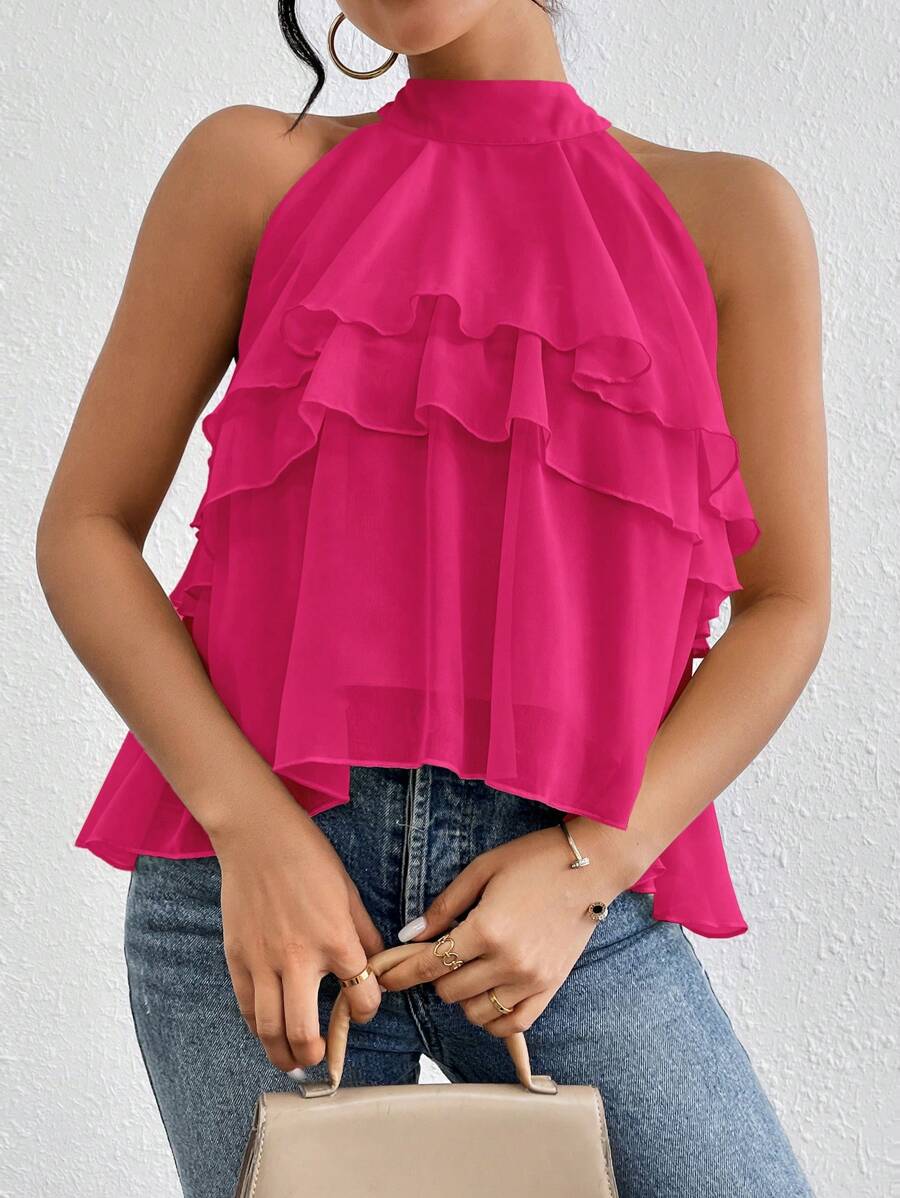 MIU Halter Neck Ruffled Cake Chiffon Blouse
