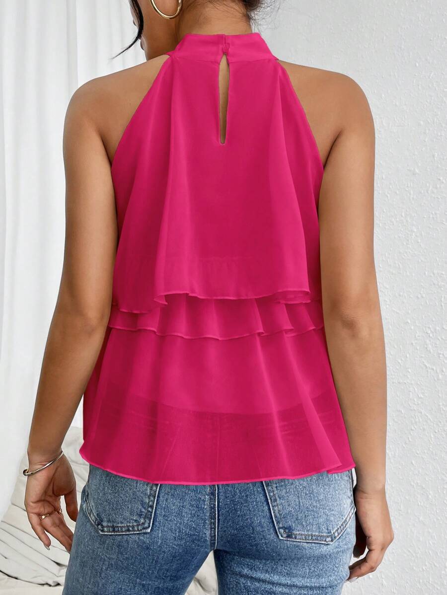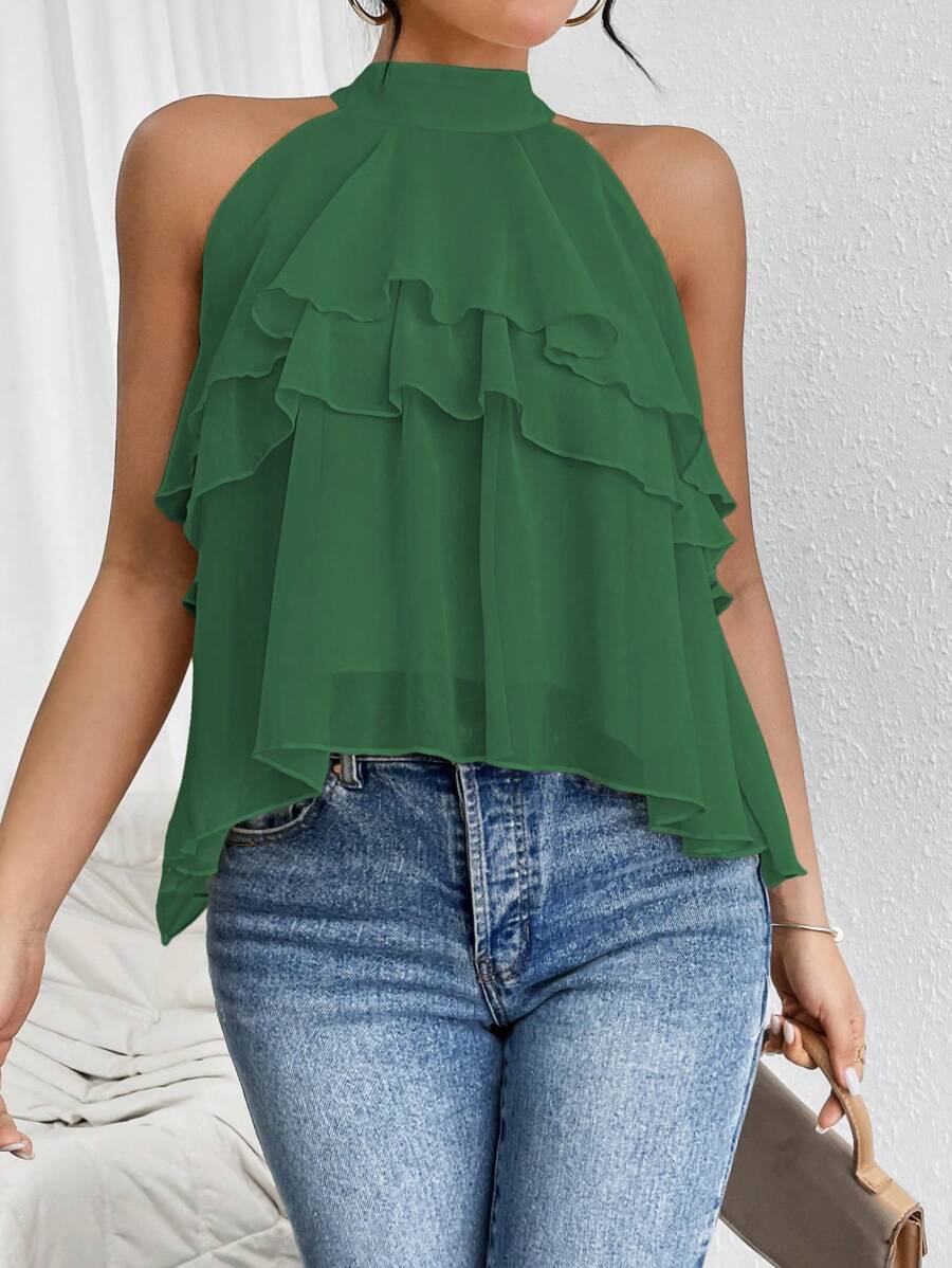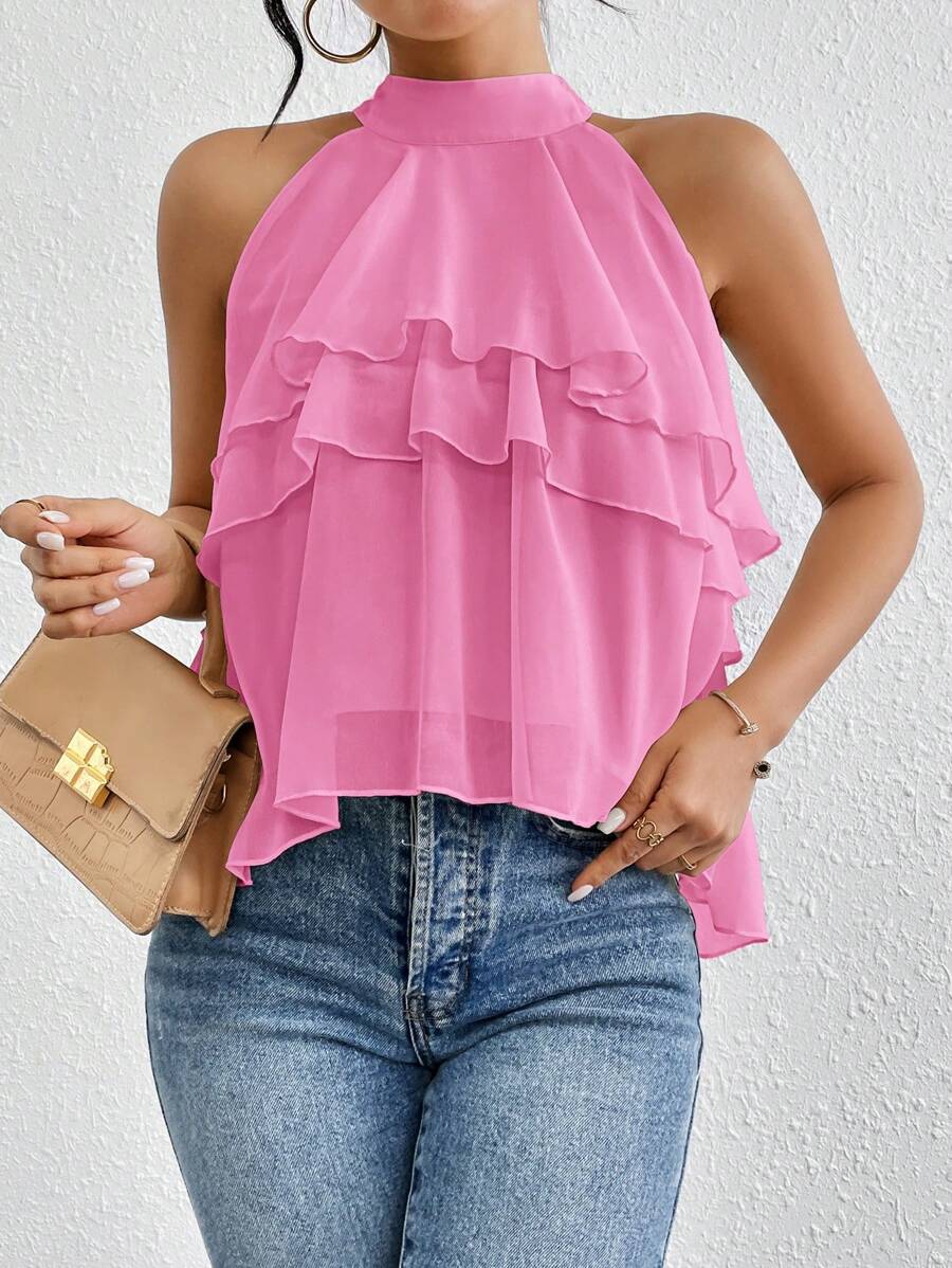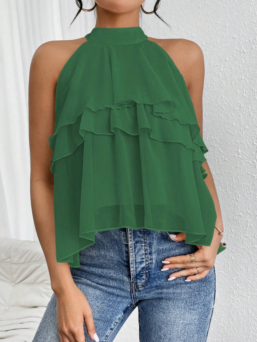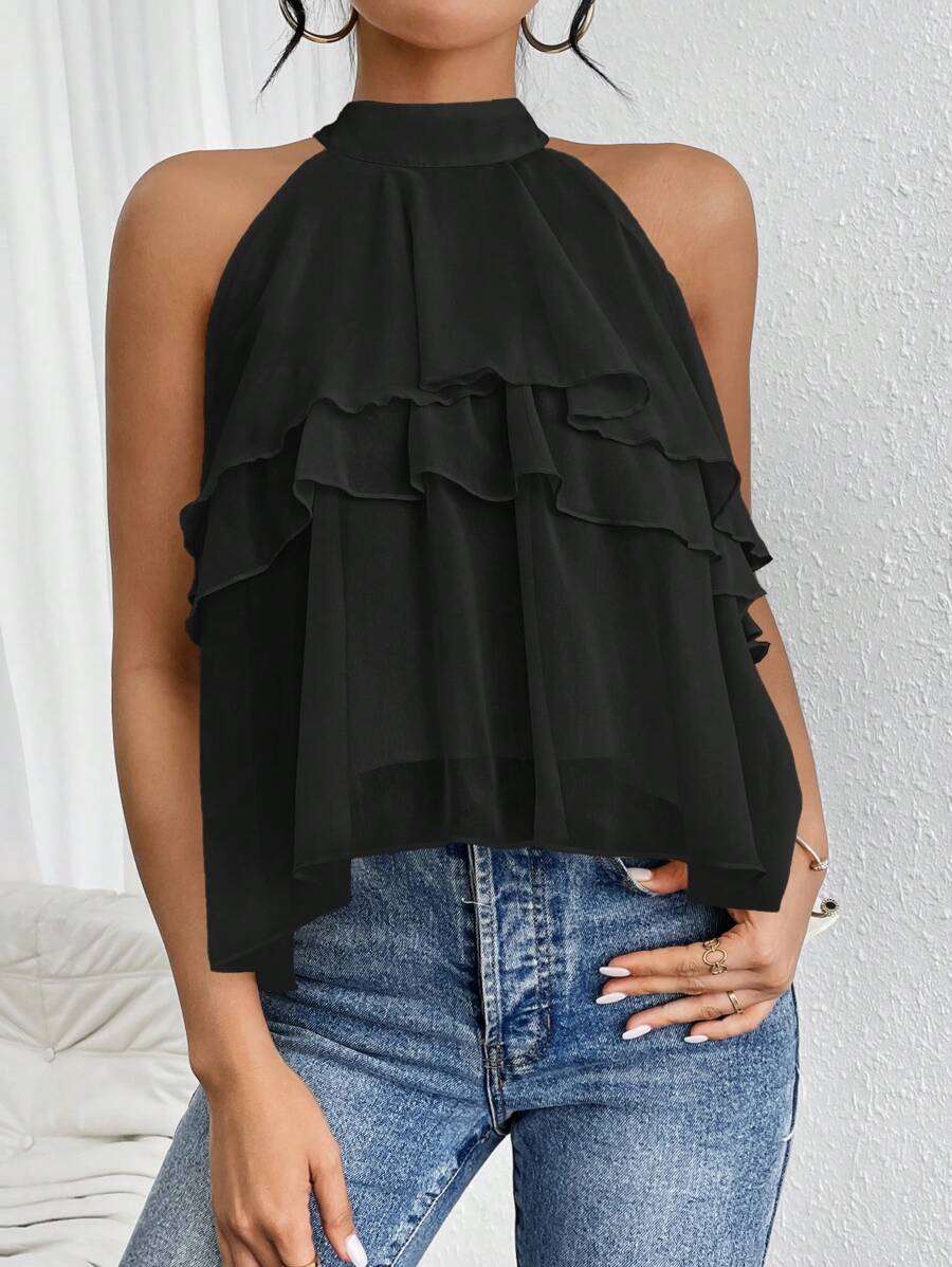 MIU Halter Neck Ruffled Cake Chiffon Blouse