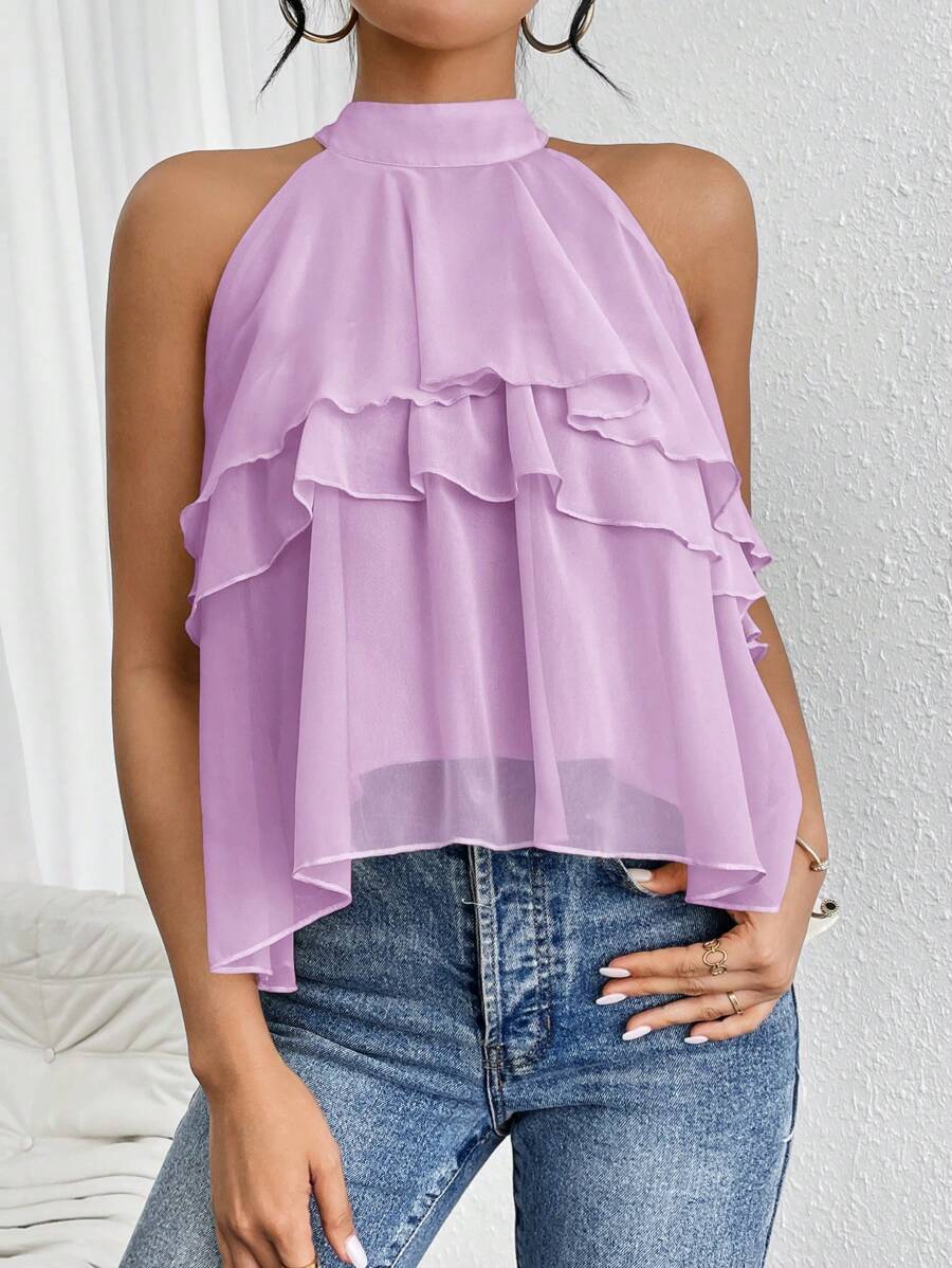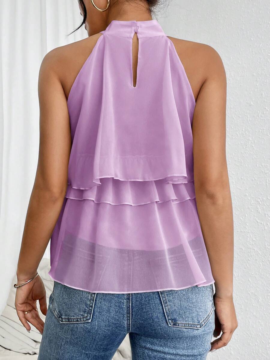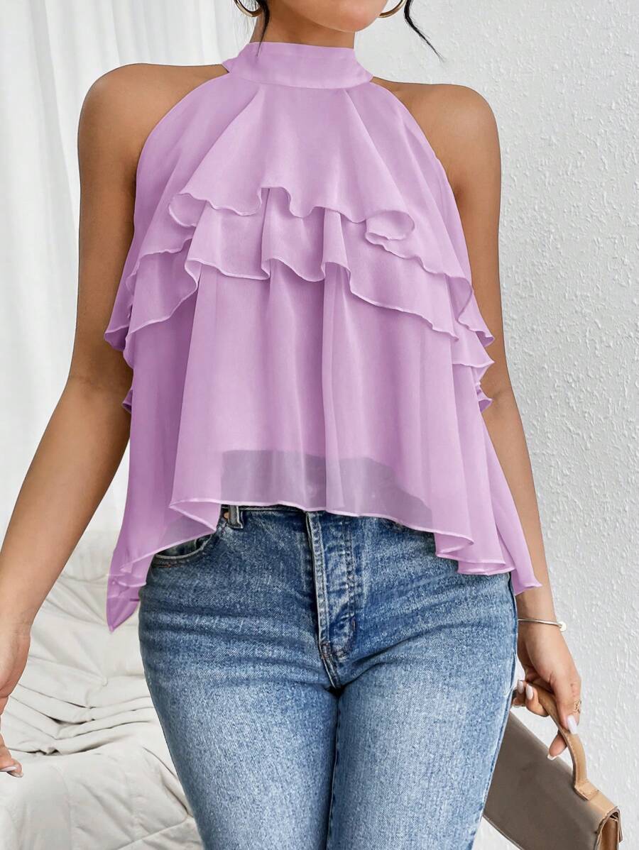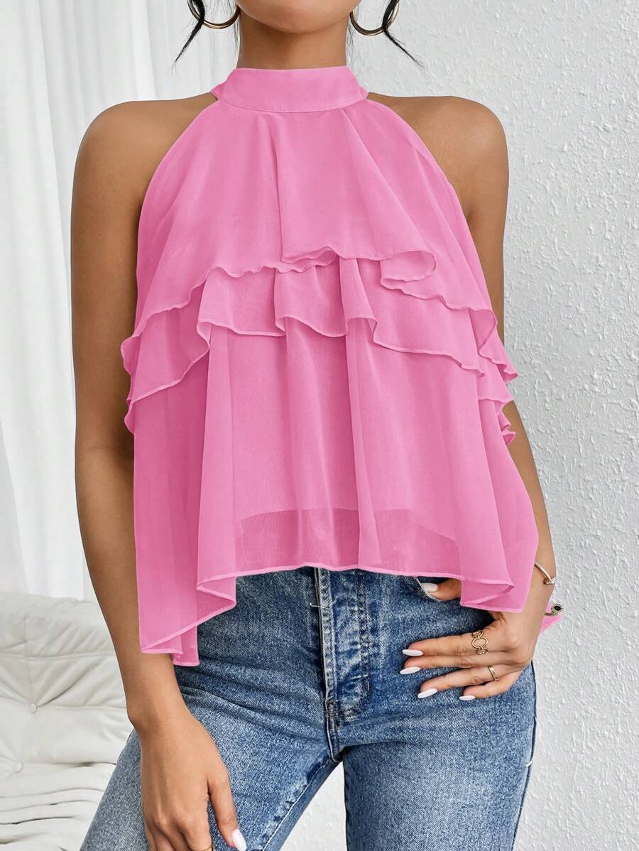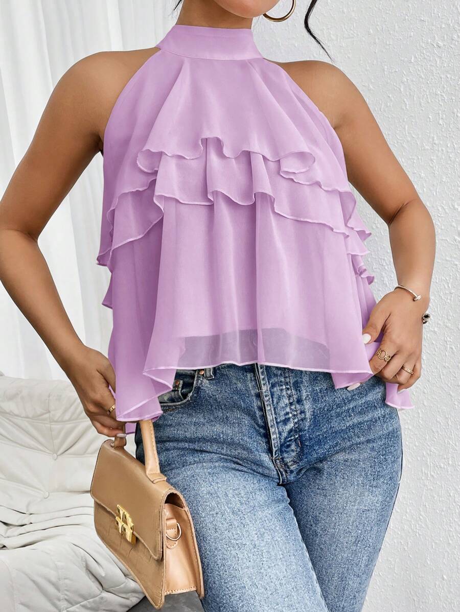 MIU Halter Neck Ruffled Cake Chiffon Blouse