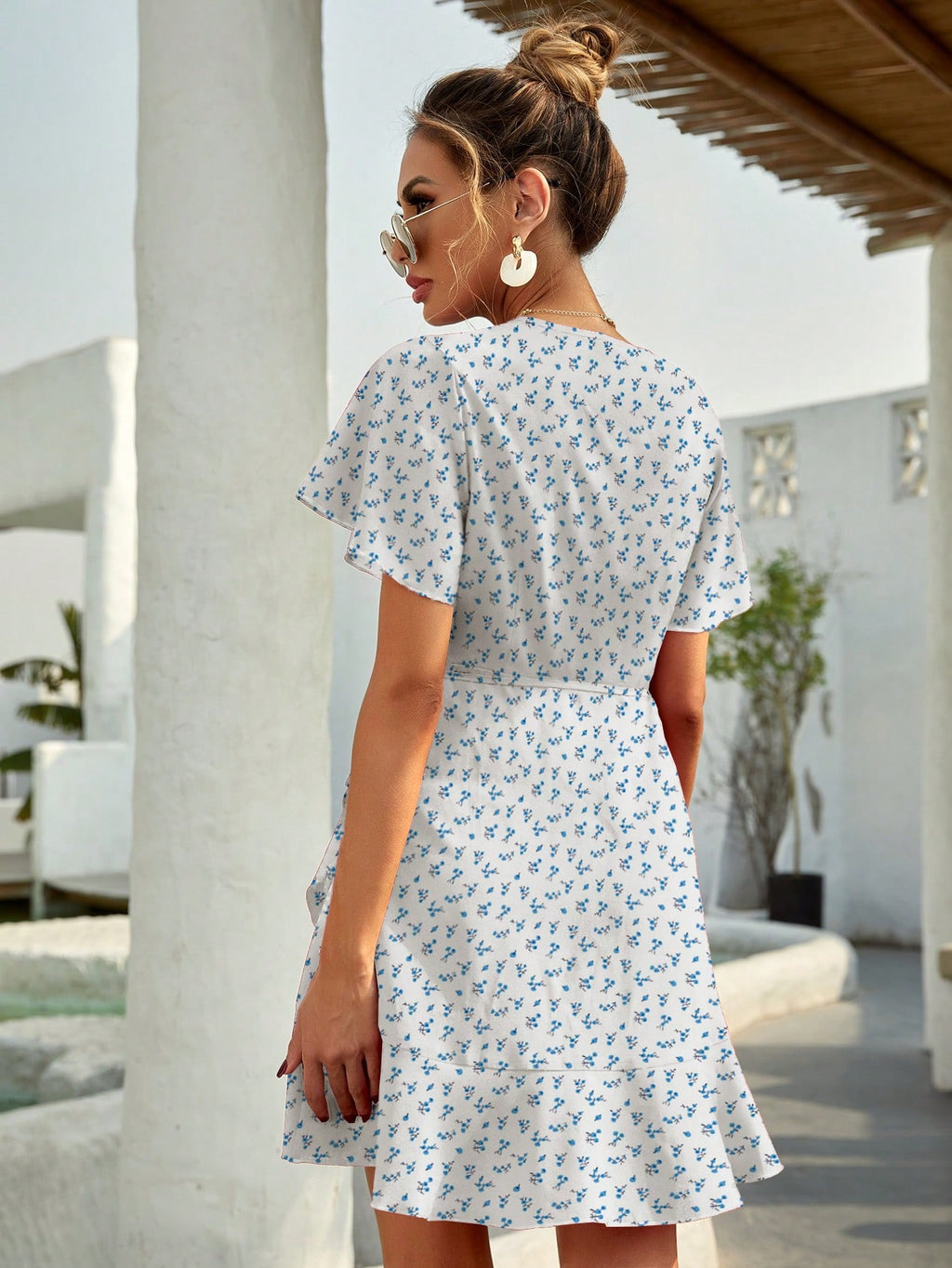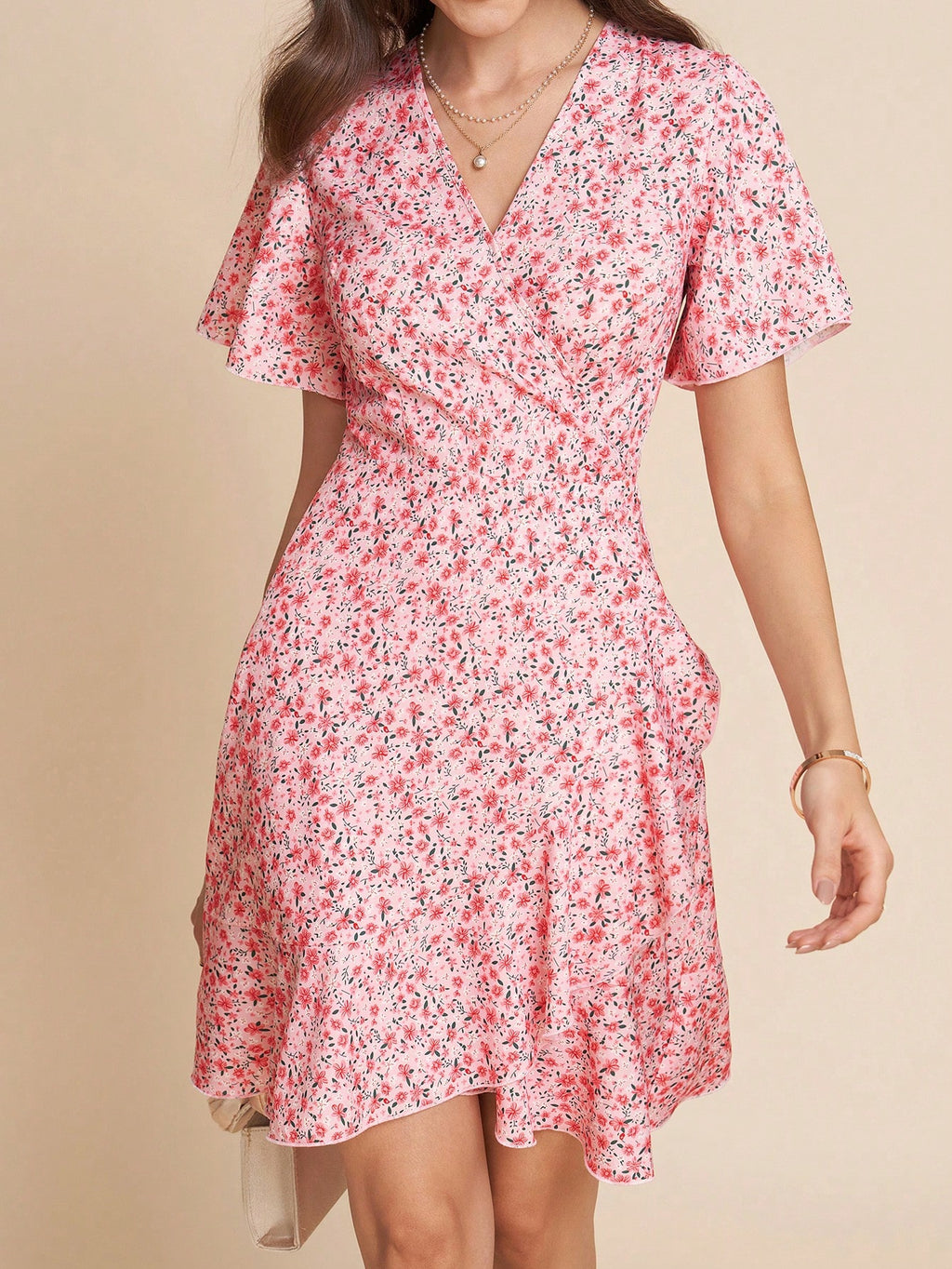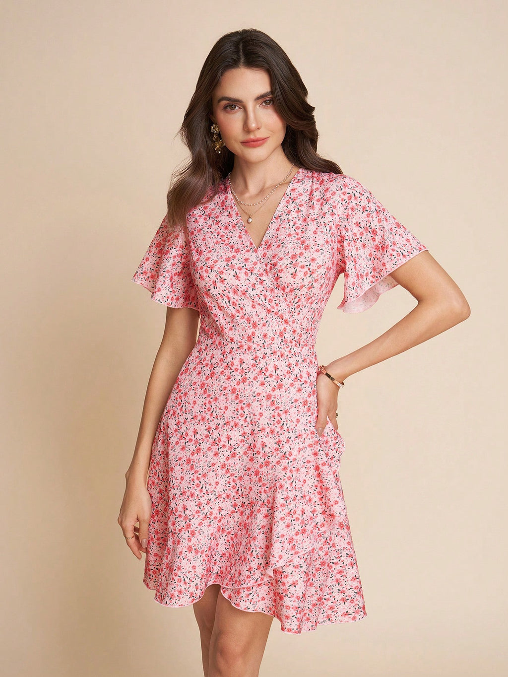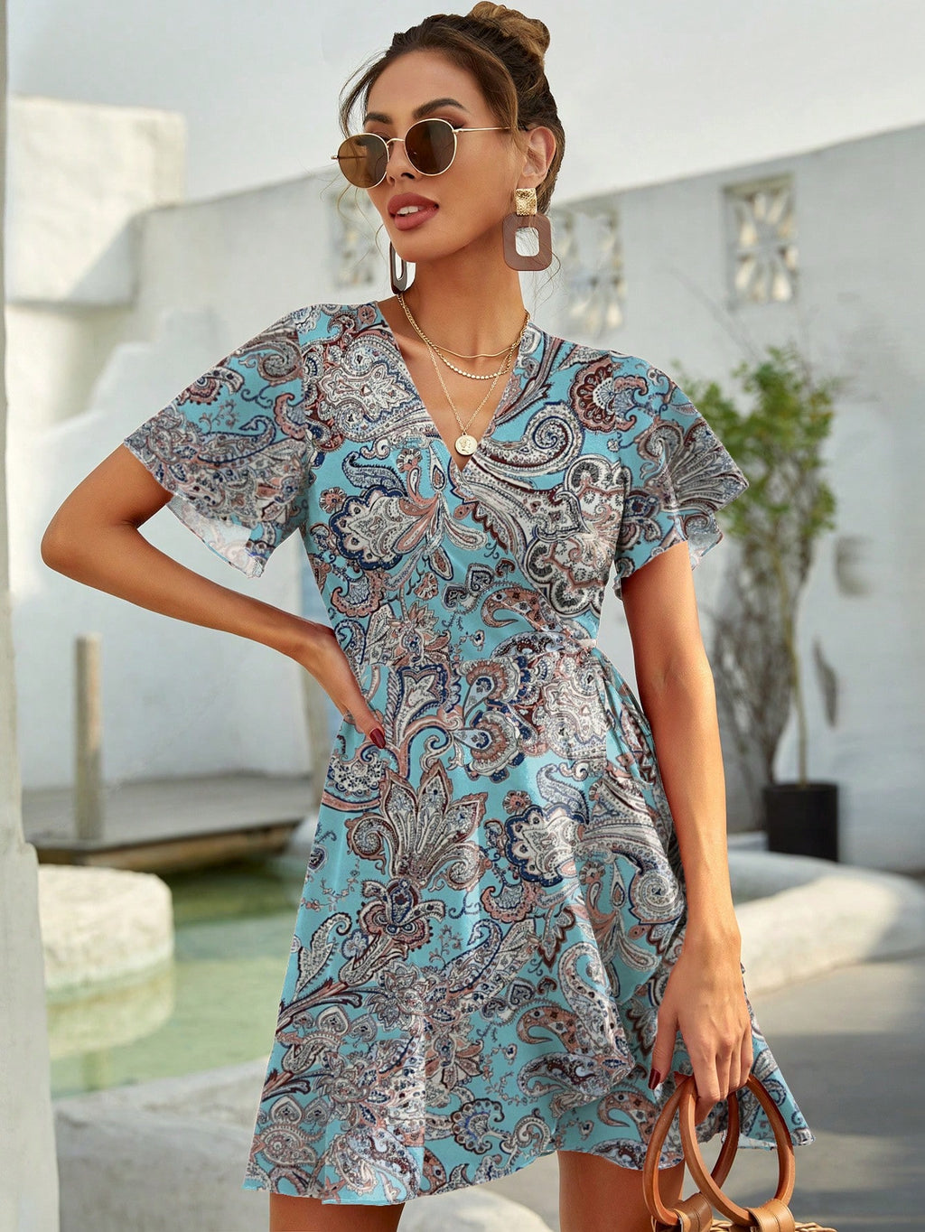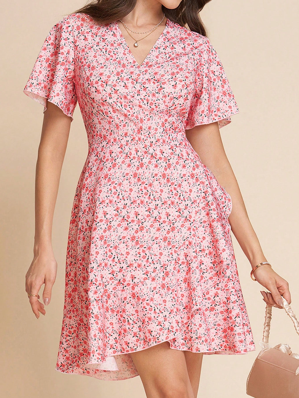 MIU AZRA Ženska Crna Crep Haljina sa Nabranom Ovratnikom i Rukavima u Zvonu