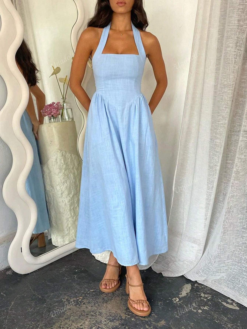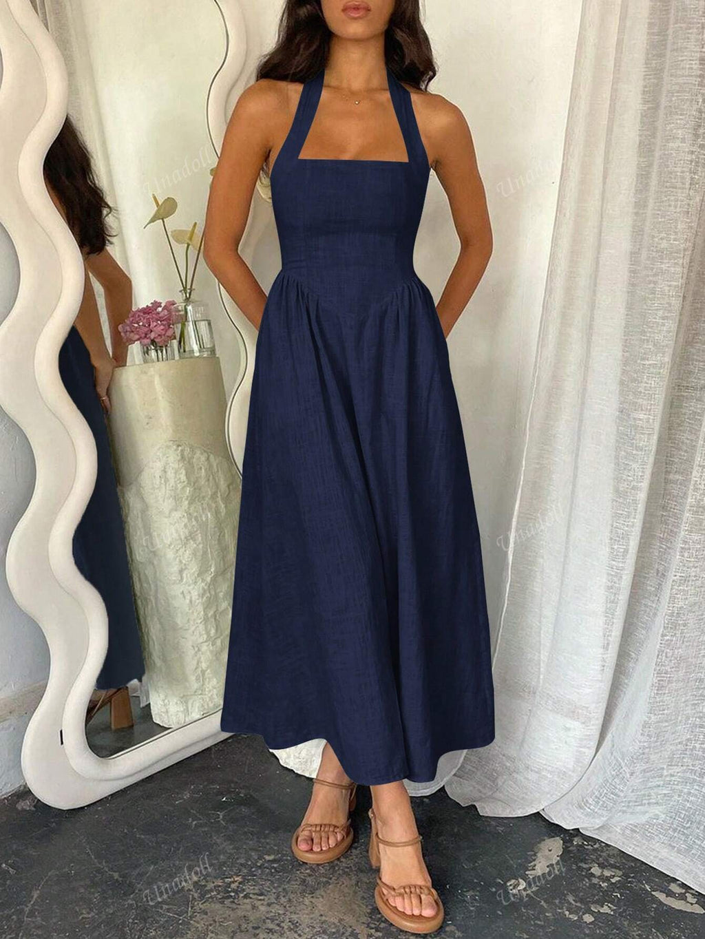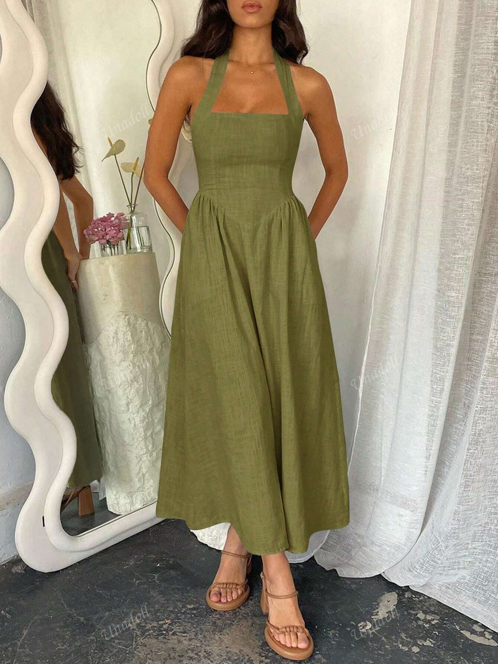 MIU AZRA Ženska Crna Crep Haljina sa Nabranom Ovratnikom i Rukavima u Zvonu
