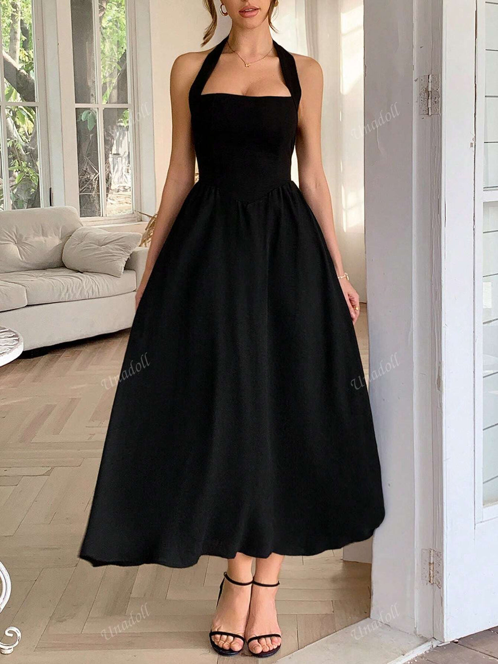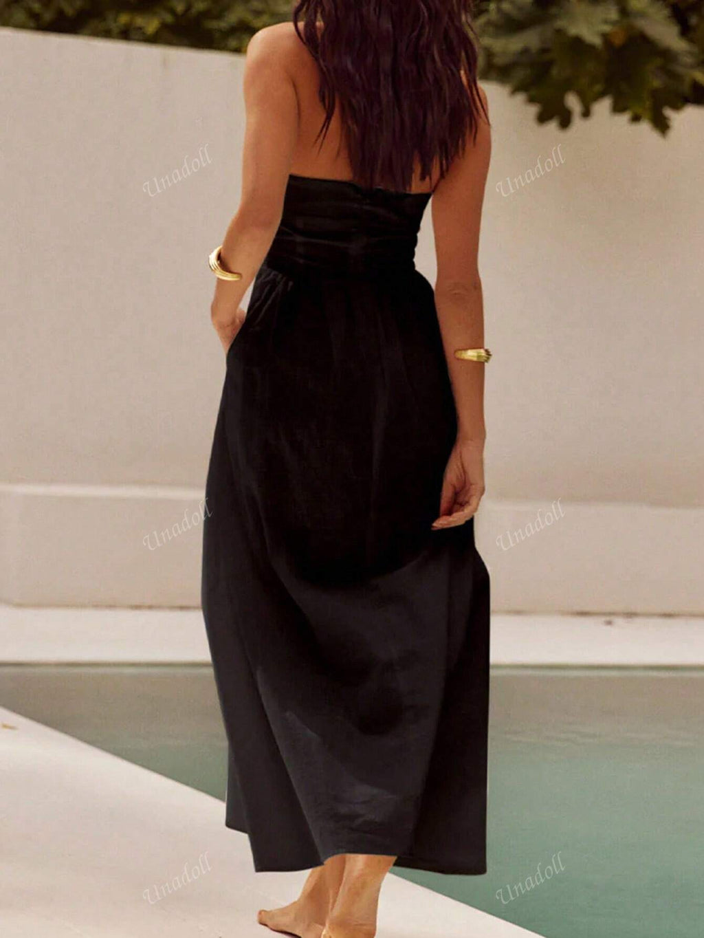 MIU AZRA Elenzya Asimetrična Prugasta Majica sa Dugim Rukavima za Žene, Elegantna Romantična, Casual i Komutna Odjeća, Haljina za Noć Veštica, Crna