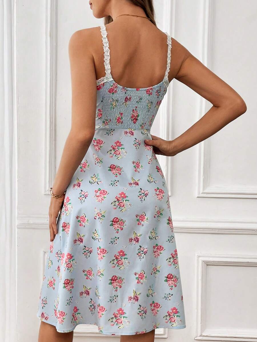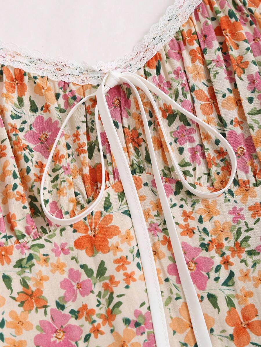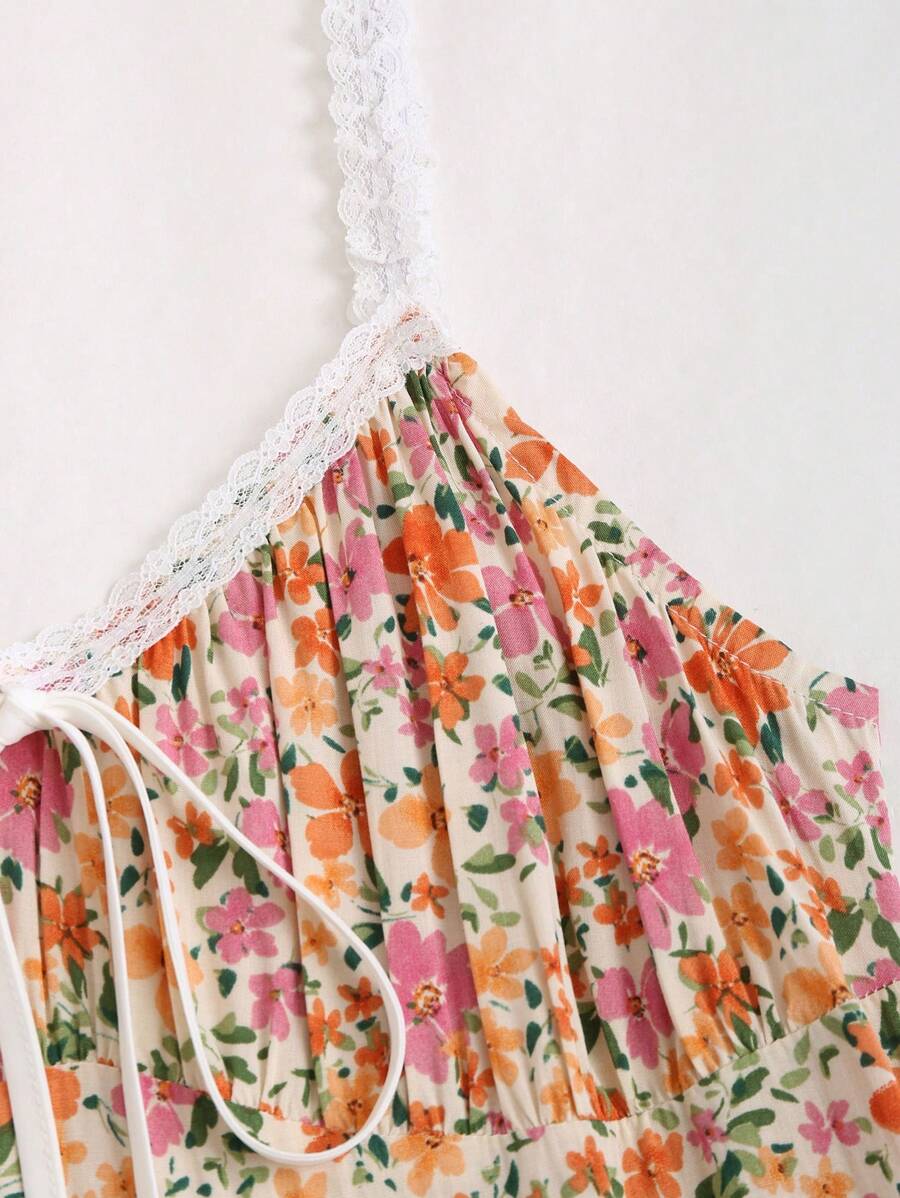 MIU Ladies' Summer Contrast Lace Floral Print Vacation Style Dress Maxi Women Outfit