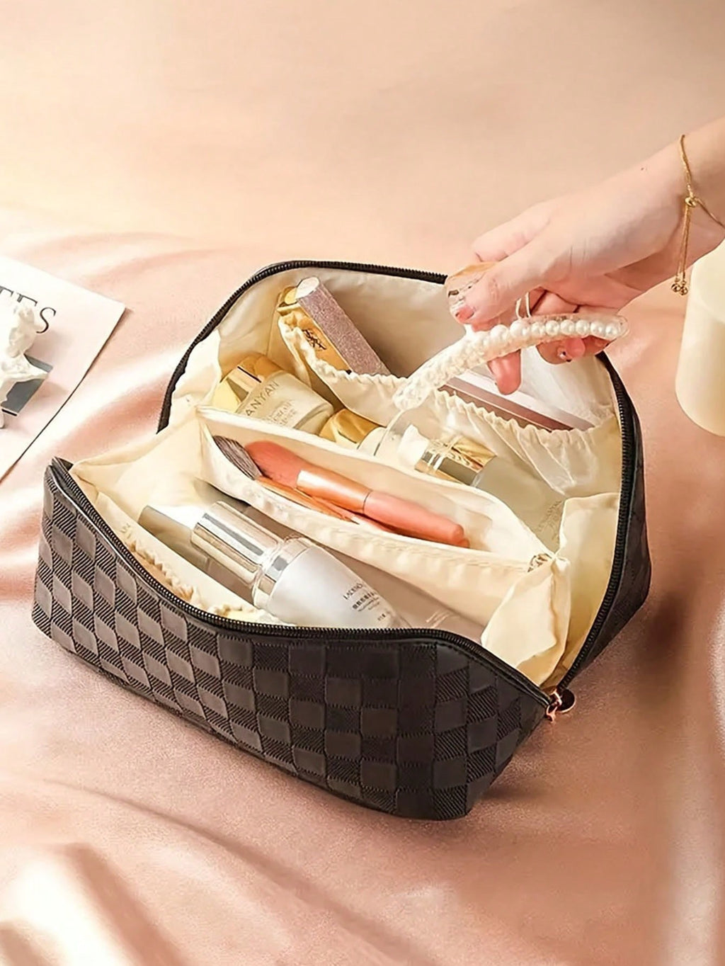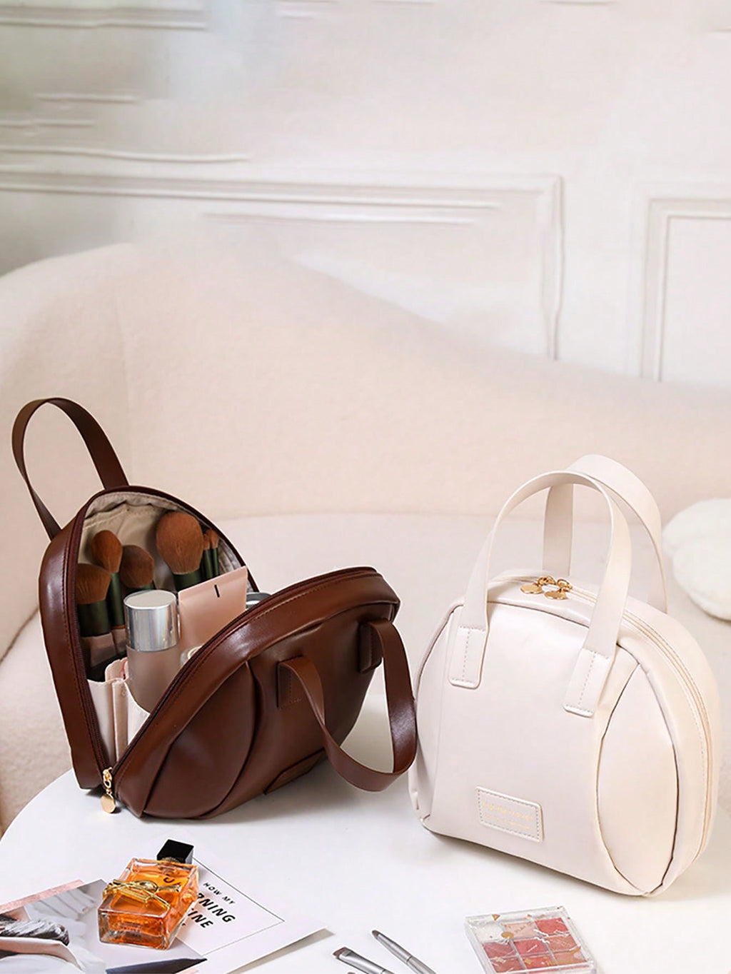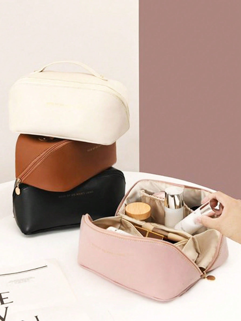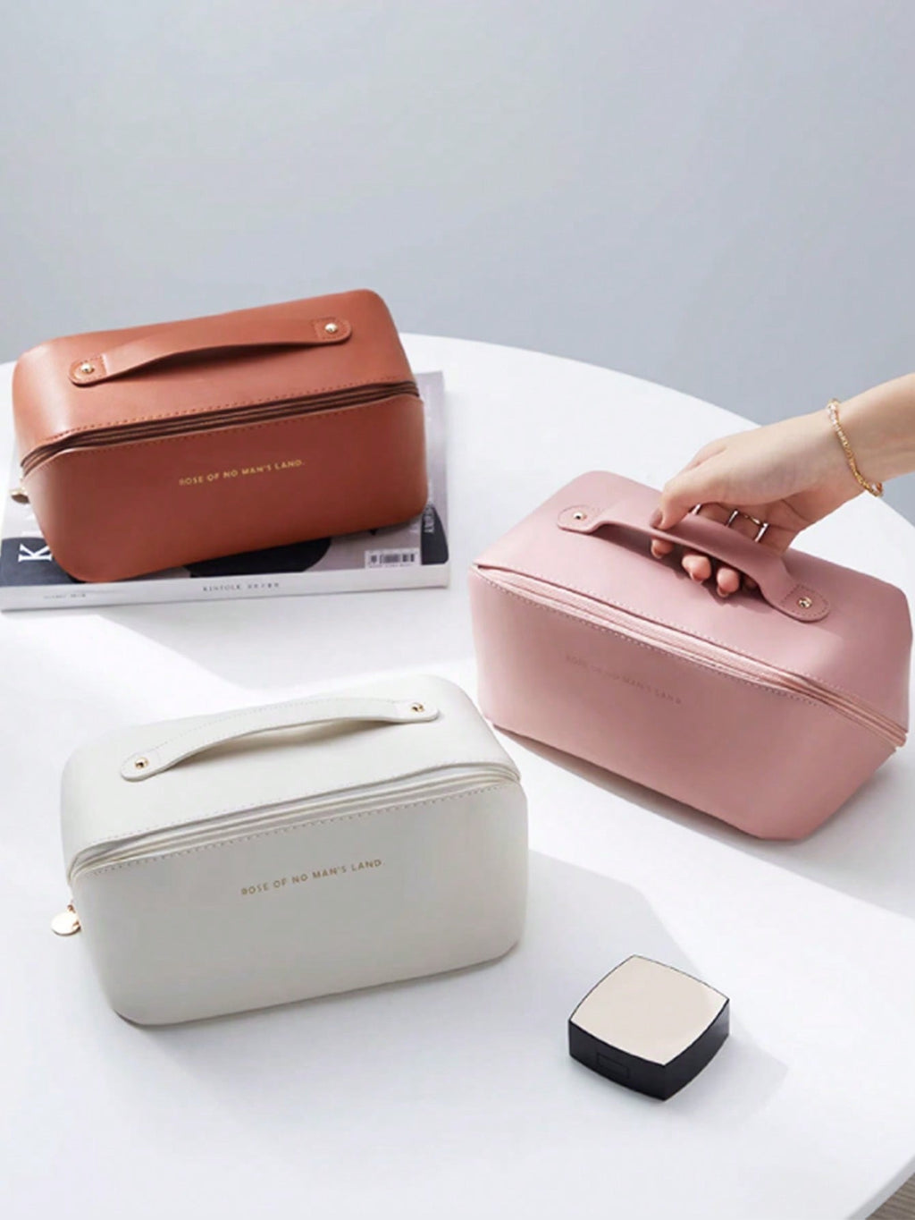 MIU Leather Waterproof Cosmetic Bag, Large Capacity Spacious Double-Layer Cosmetic Bag, Cosmetic Storage Bag, Multi-Functional Travel Storage Bag, Lightweight Toiletries Cosmetic Bag, Cosmetic Travel Bag, Travel Home Cosmetic Bag Organizer