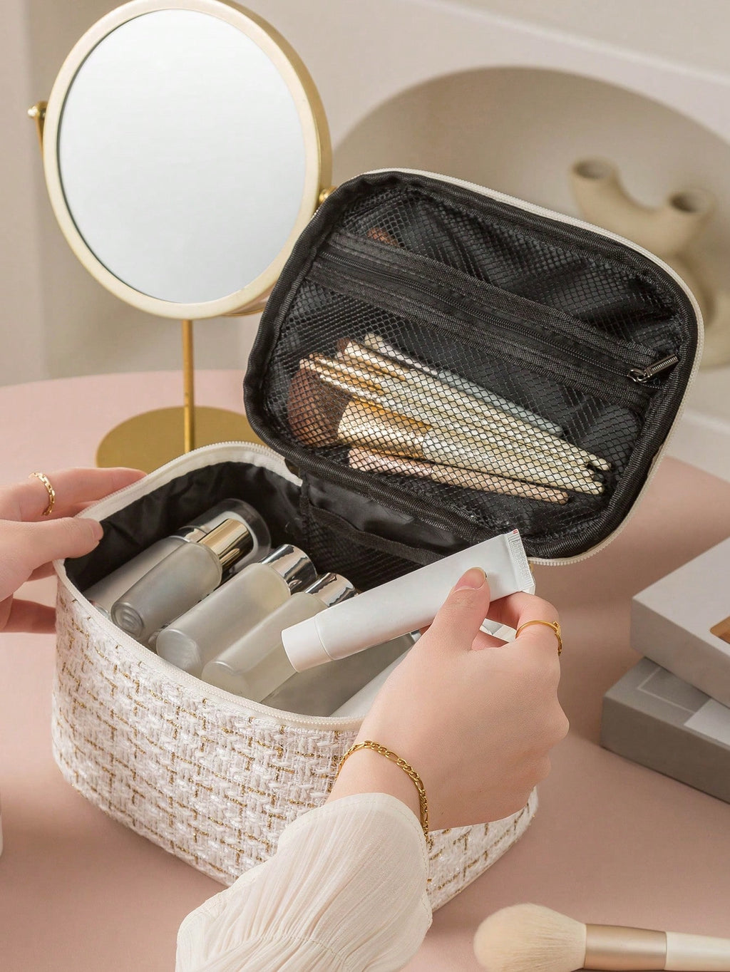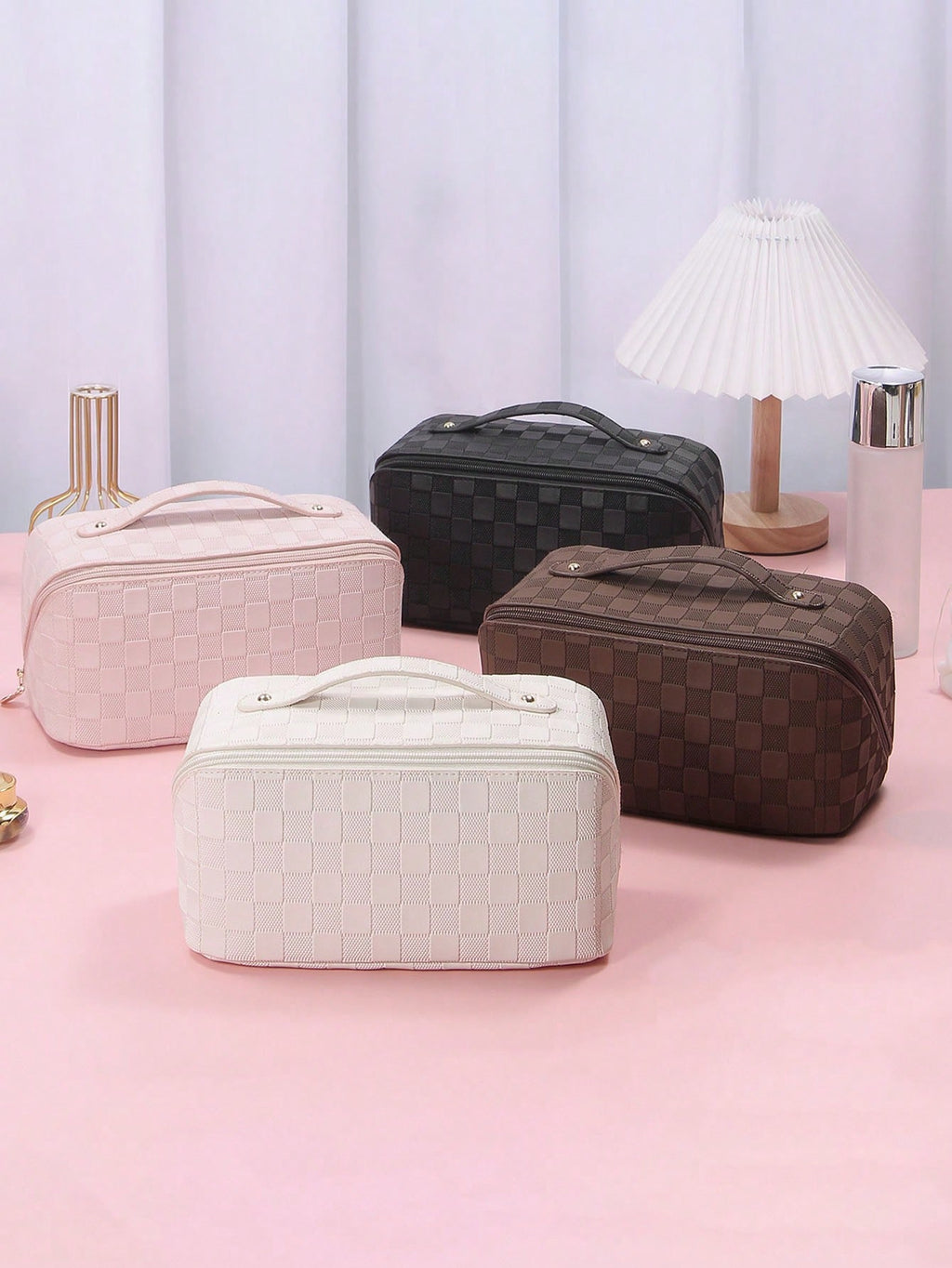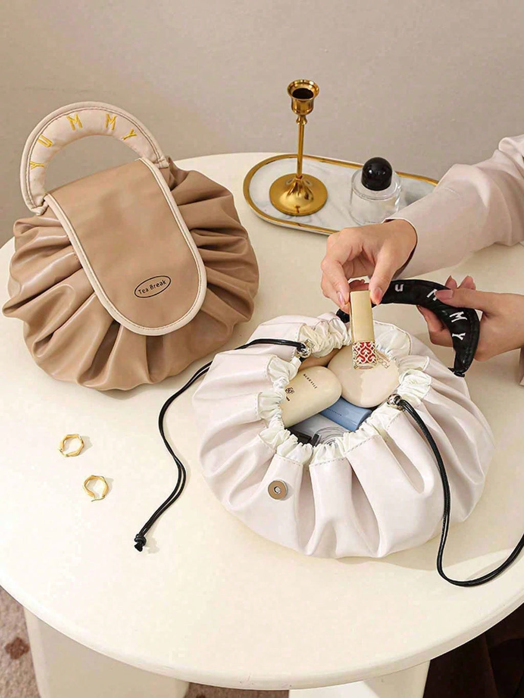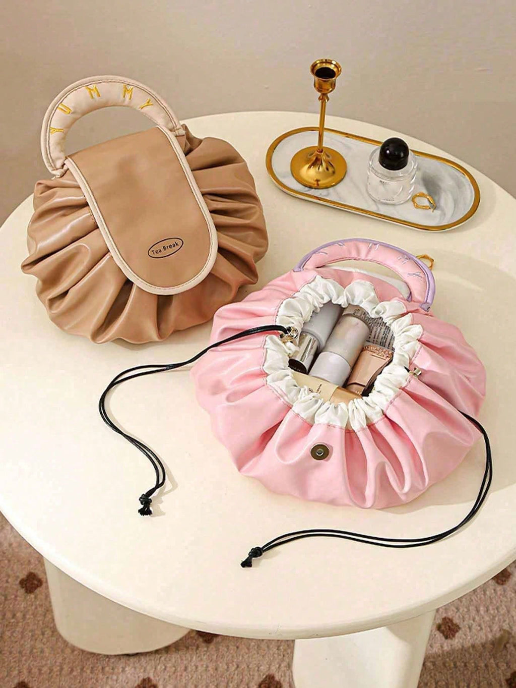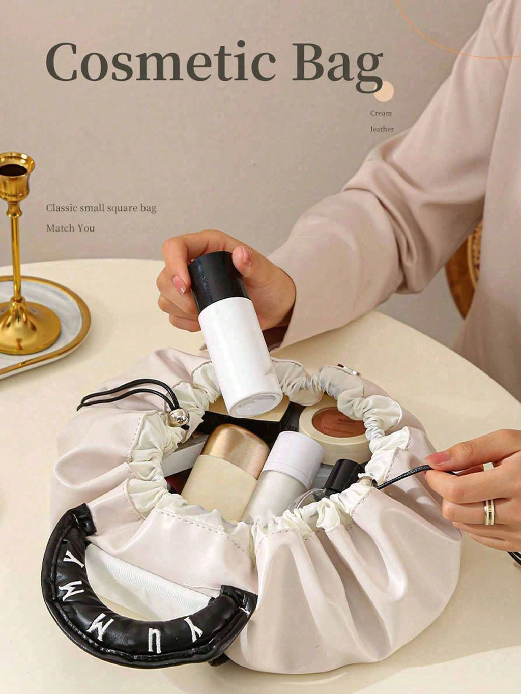 MIU Leather Waterproof Cosmetic Bag, Large Capacity Spacious Double-Layer Cosmetic Bag, Cosmetic Storage Bag, Multi-Functional Travel Storage Bag, Lightweight Toiletries Cosmetic Bag, Cosmetic Travel Bag, Travel Home Cosmetic Bag Organizer