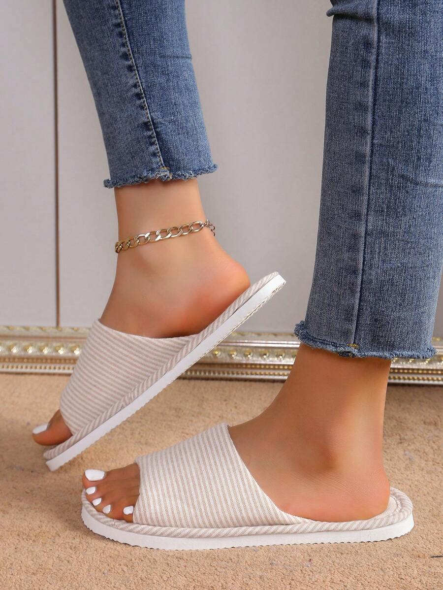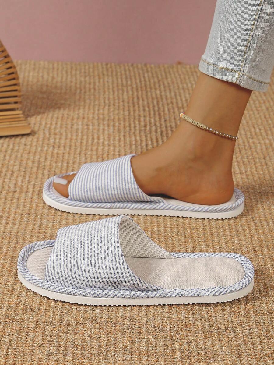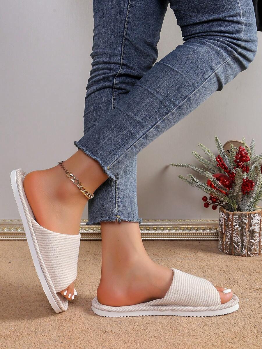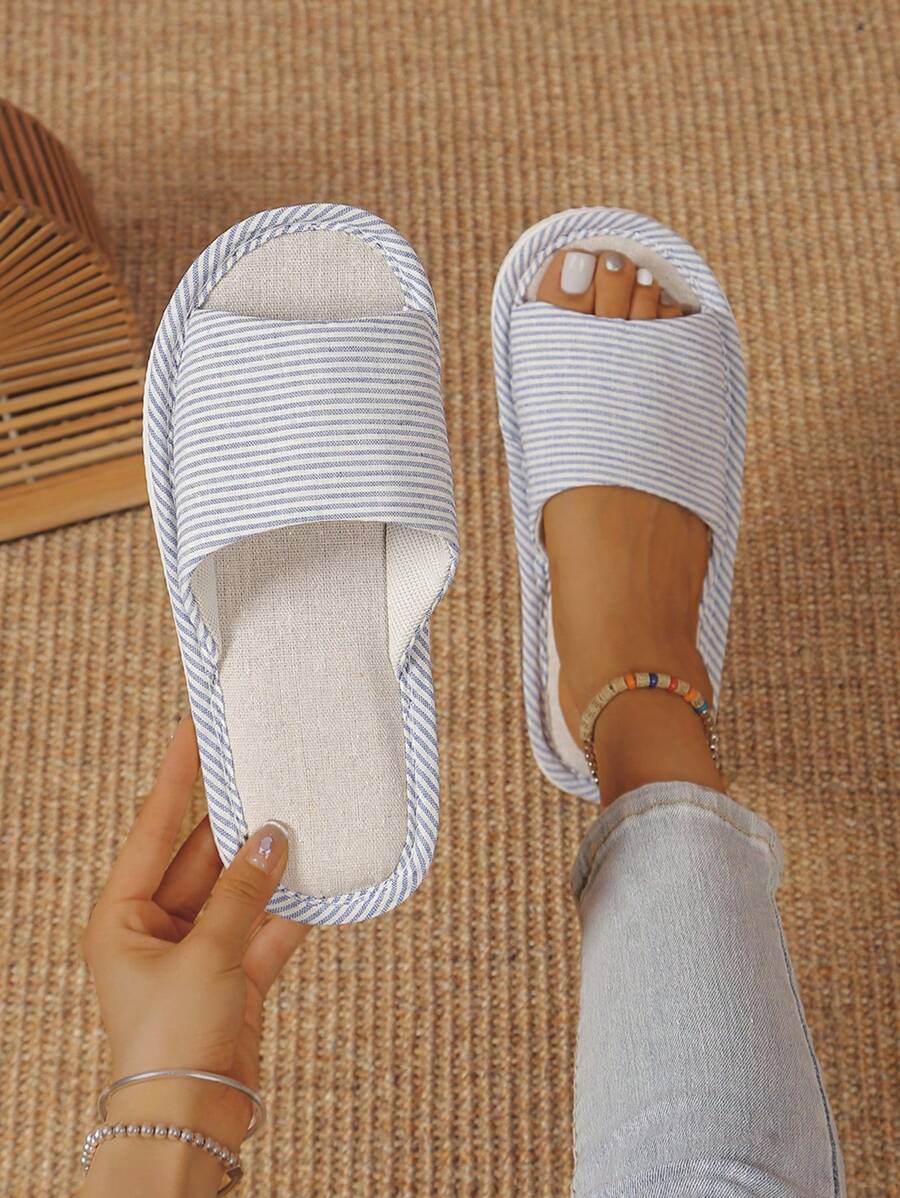 MIU Linen Fabric Slippers, Women's Indoor House Slippers With Soft