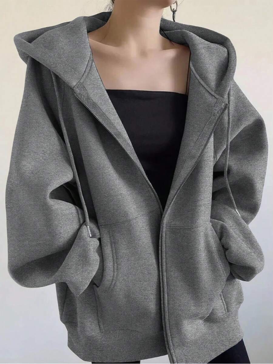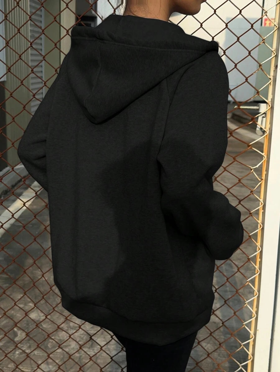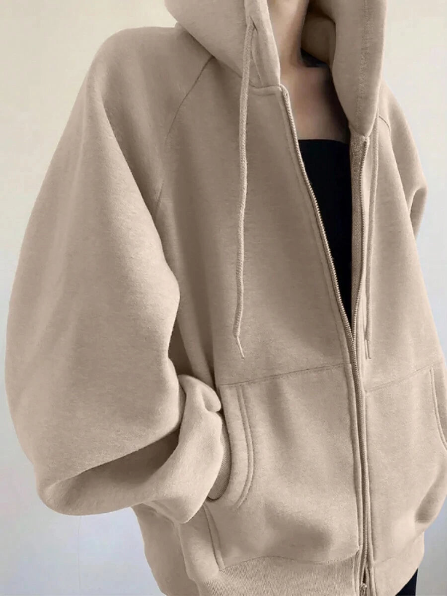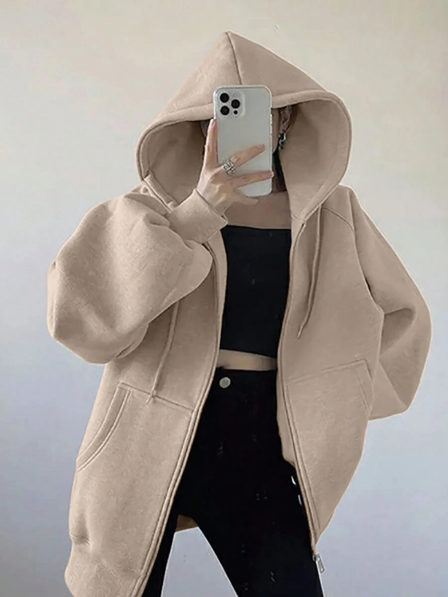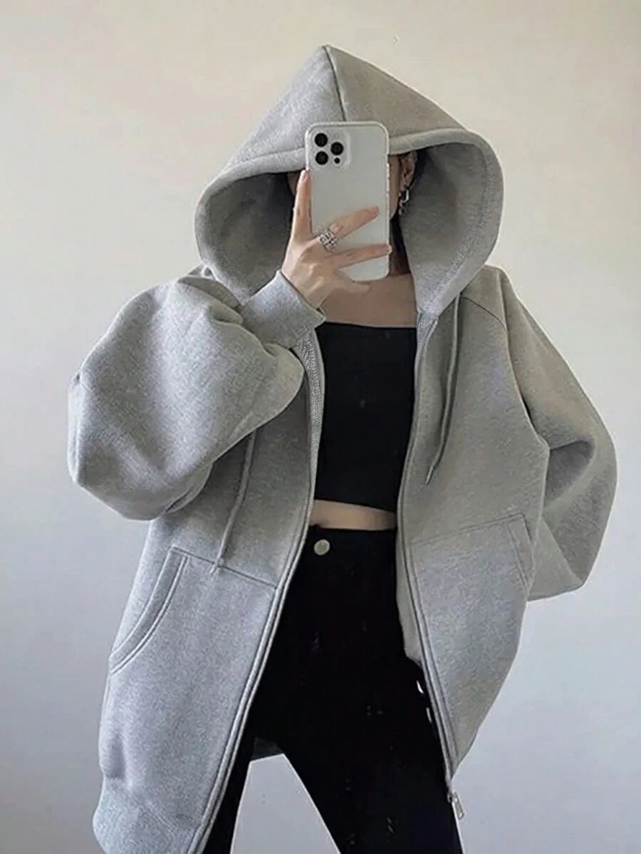 MIU Loose Casual Hooded Zip-Up Cardigan Outerwear For Women