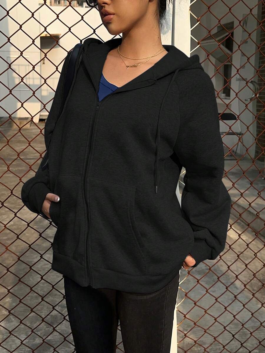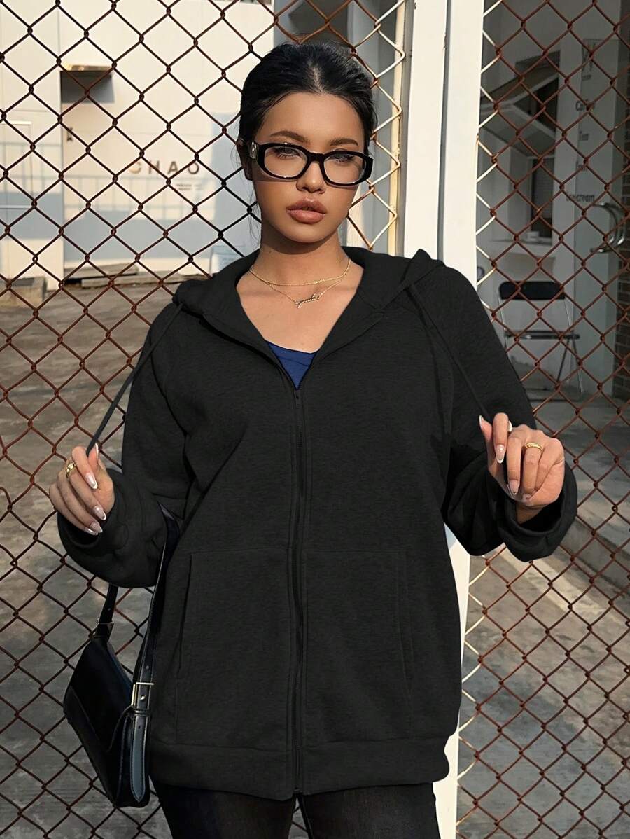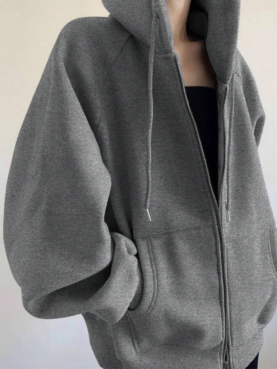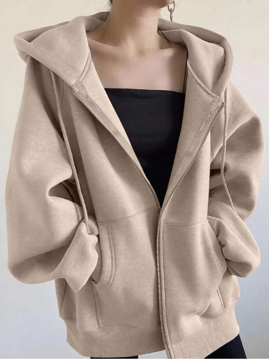MIU Loose Casual Hooded Zip-Up Cardigan Outerwear For Women