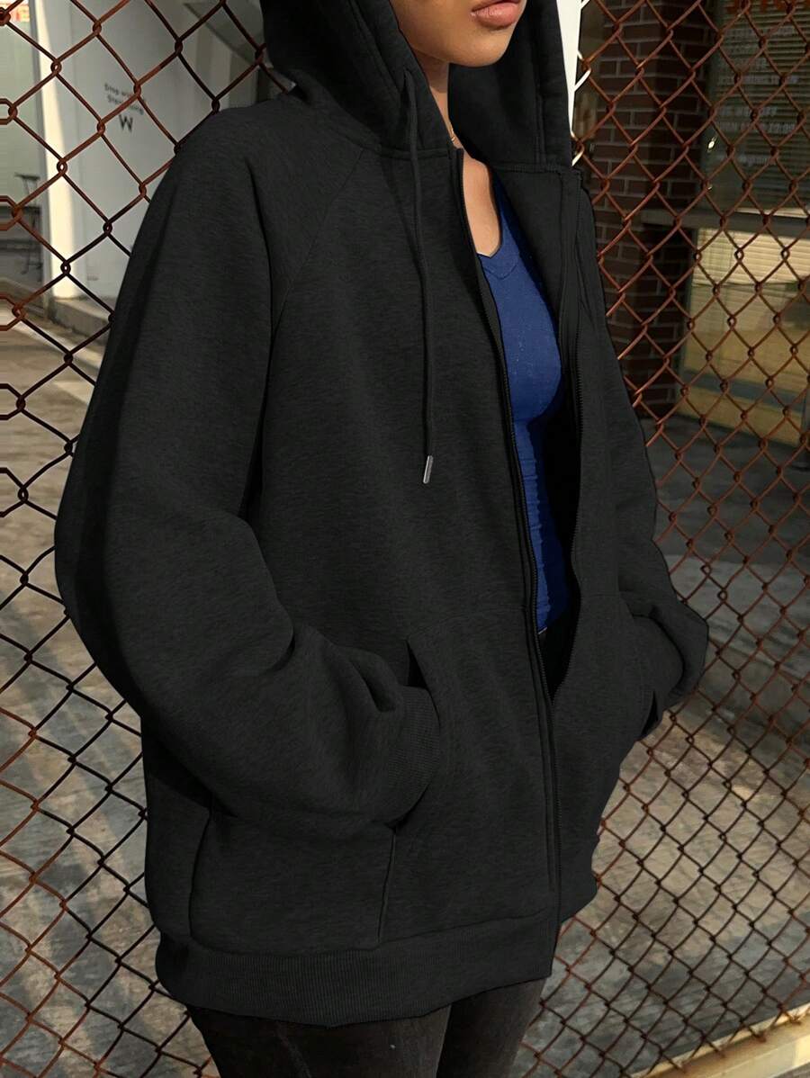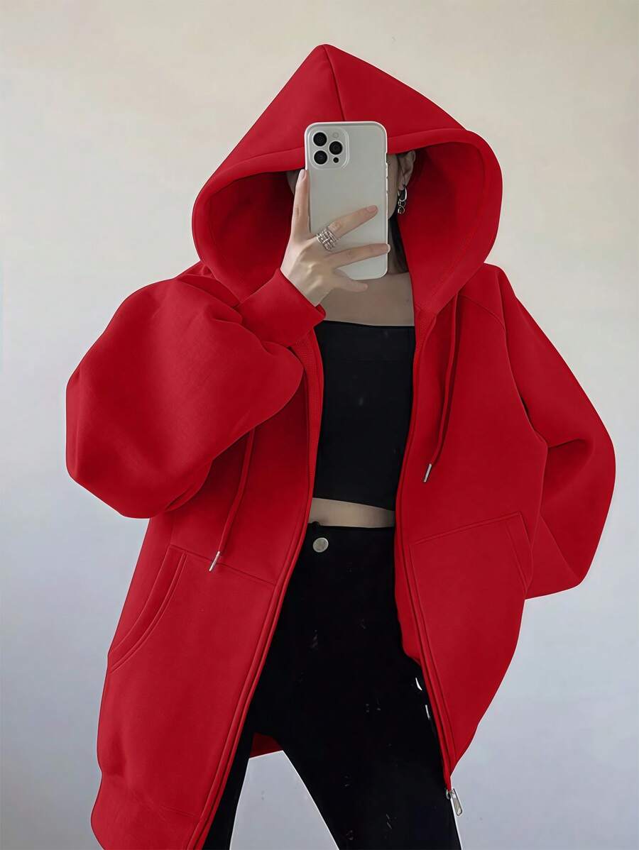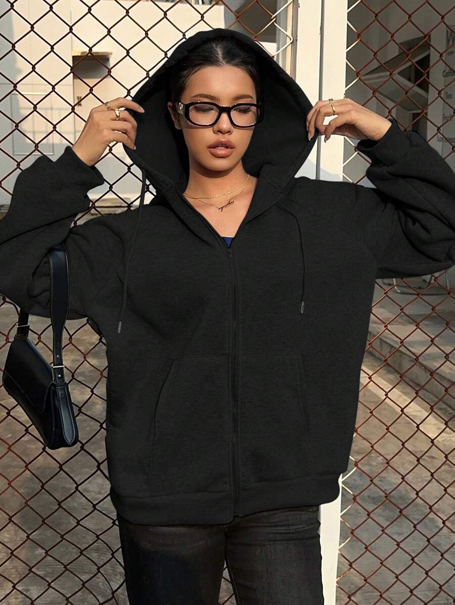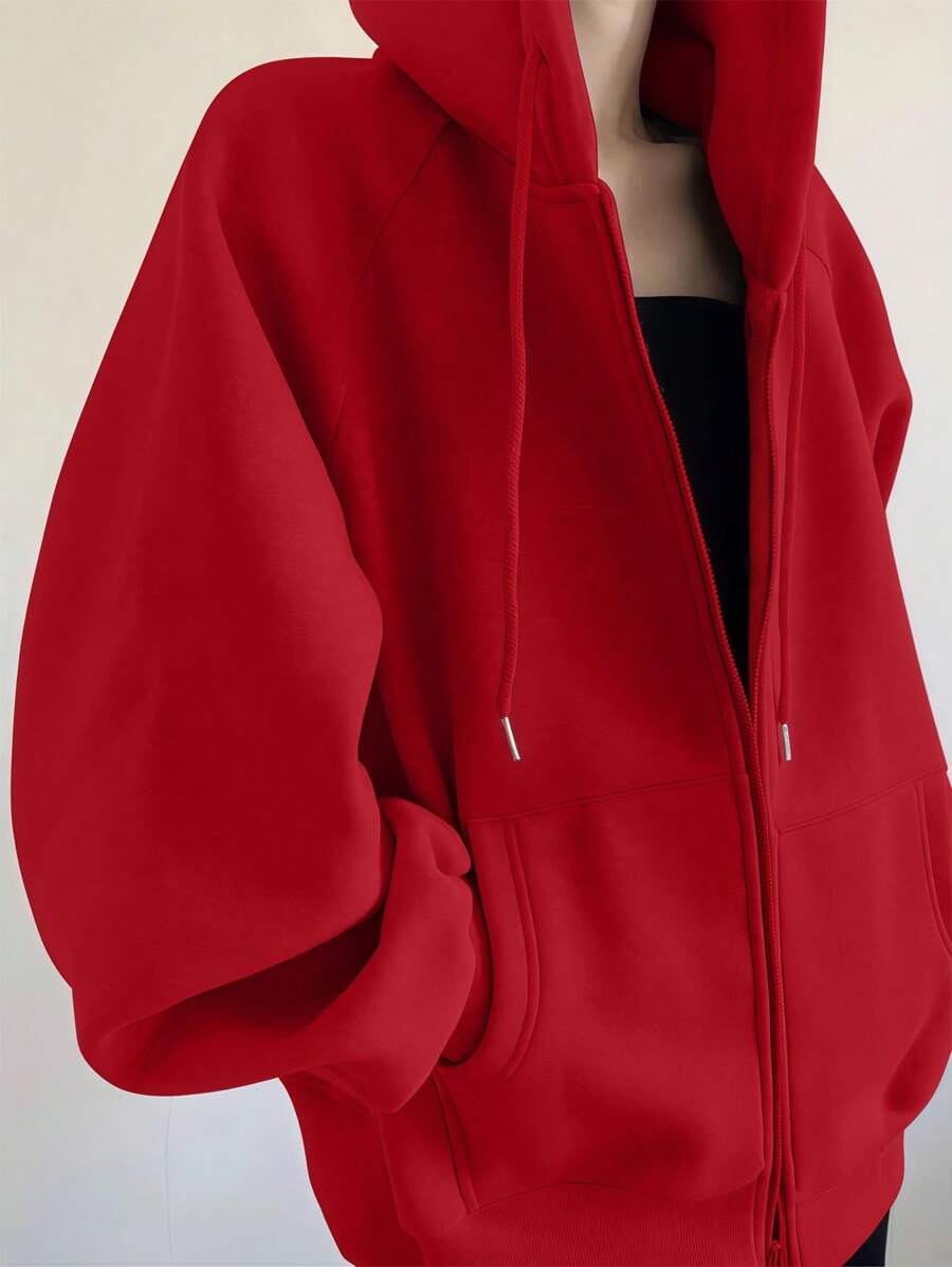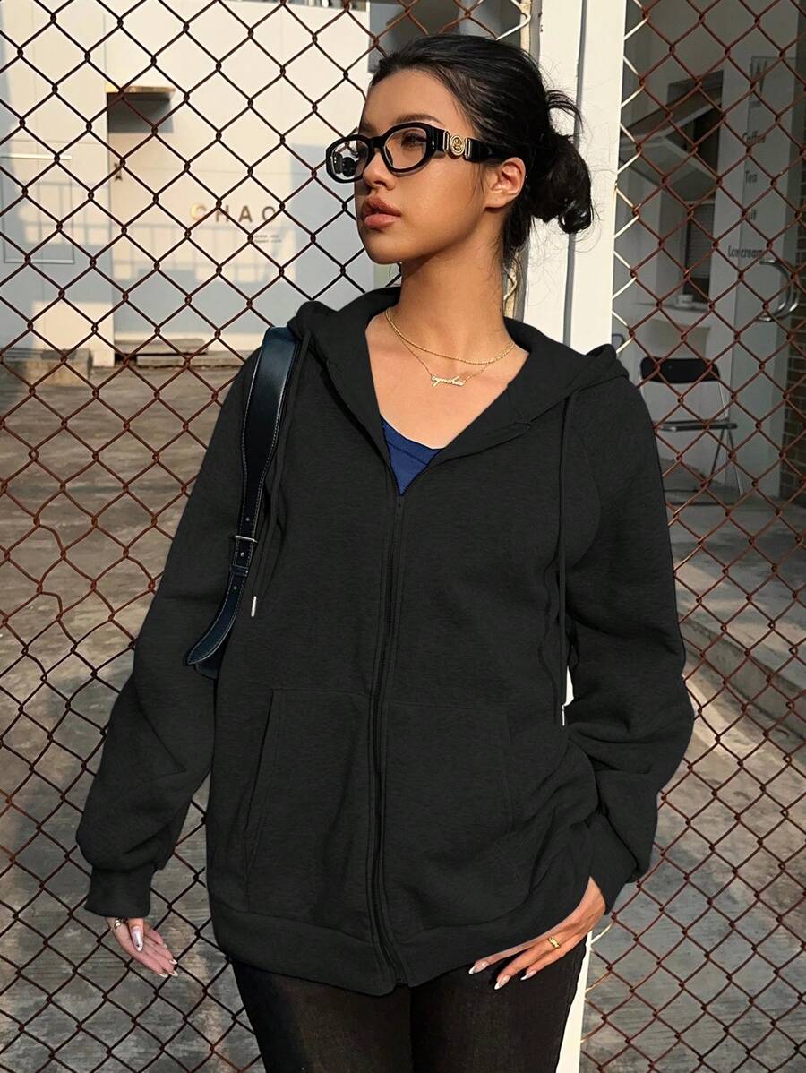 MIU Loose Casual Hooded Zip-Up Cardigan Outerwear For Women