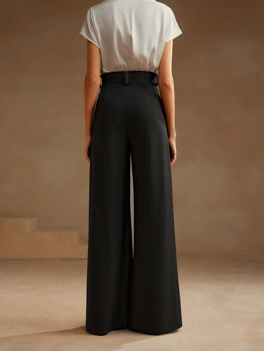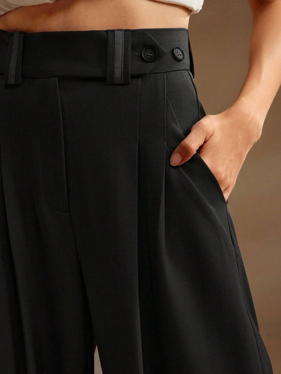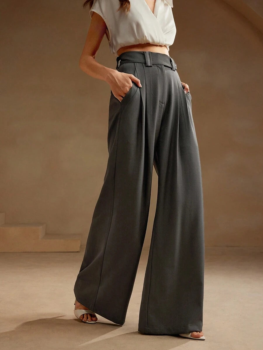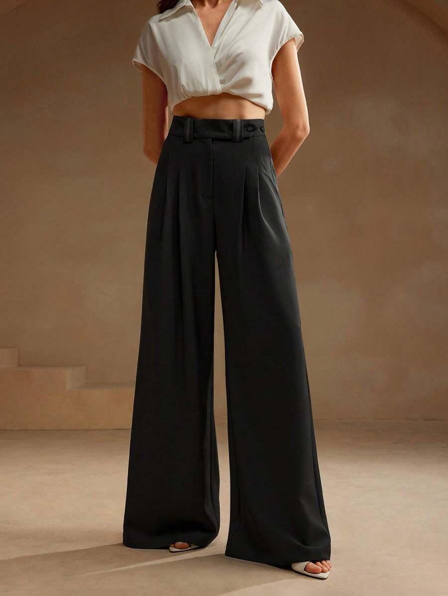 MIU Loose Straight Wide Leg Pants, Double Pleated Casual Draped Business Trousers, Slimming Effect
