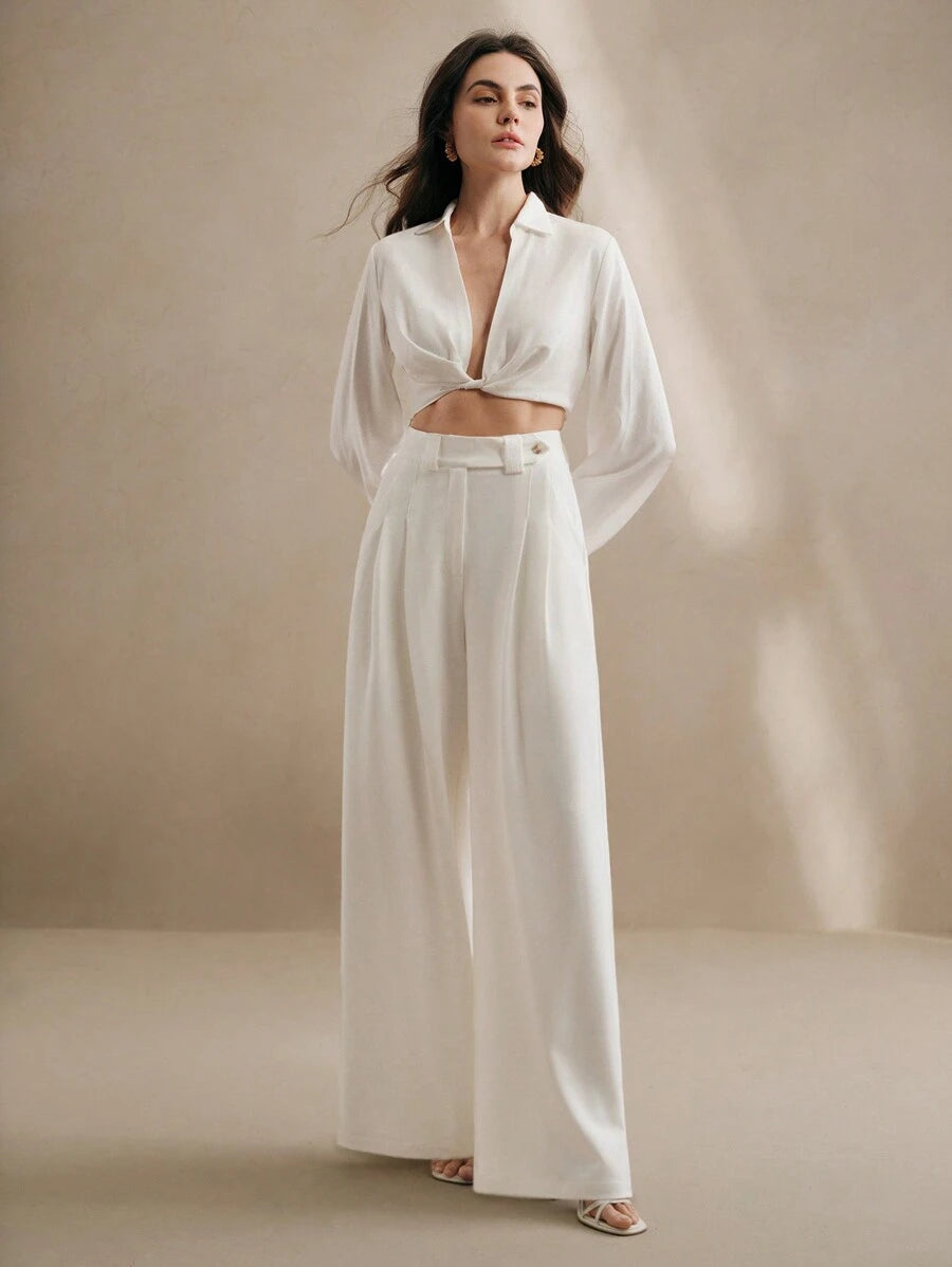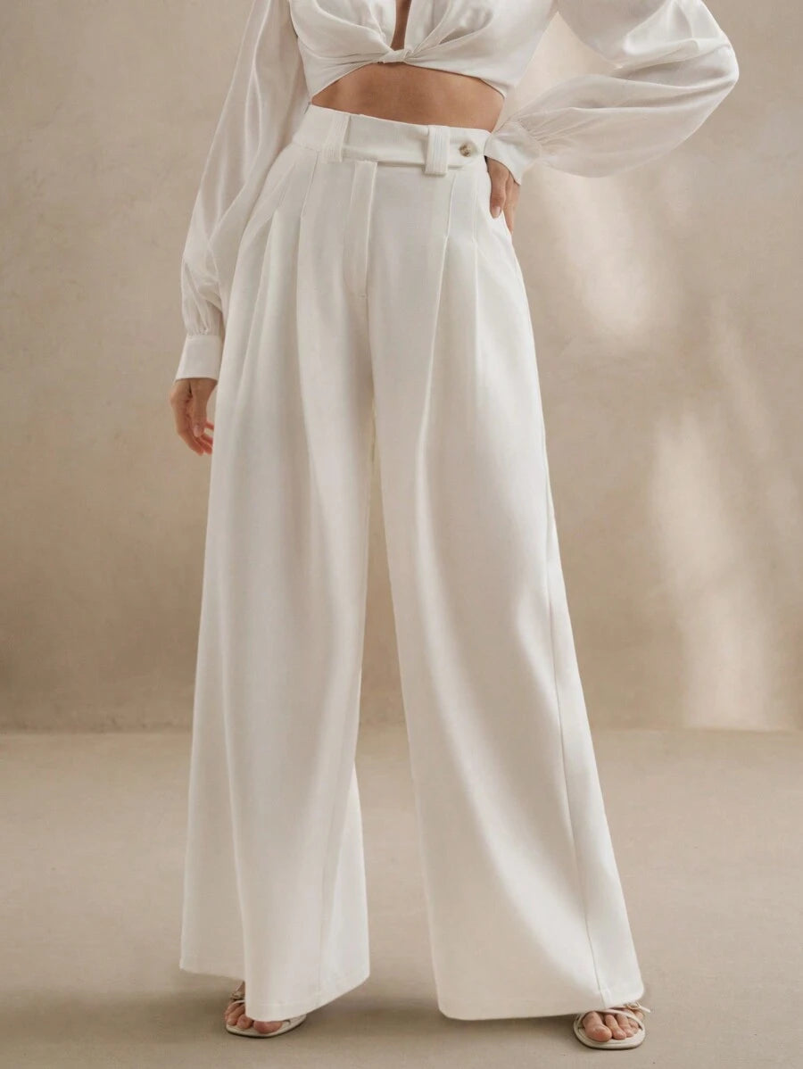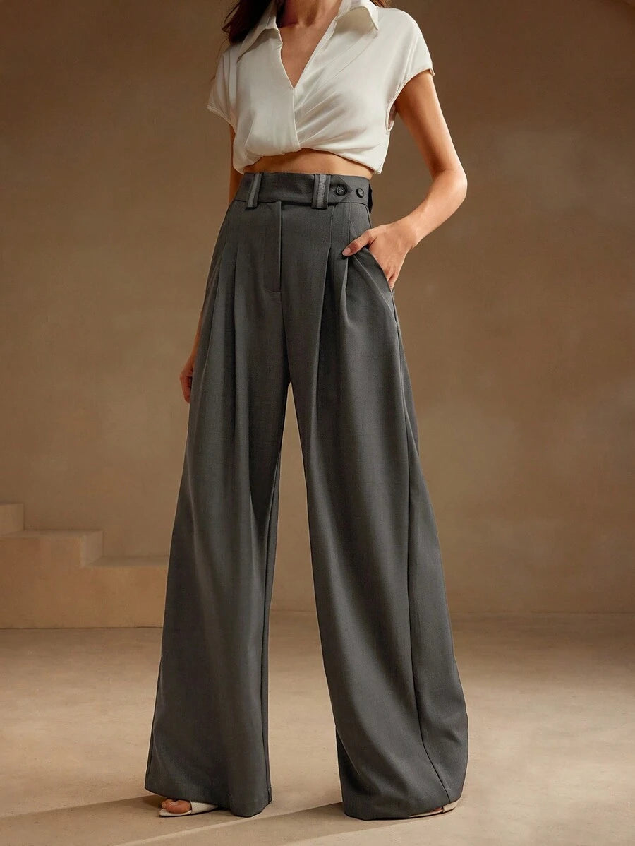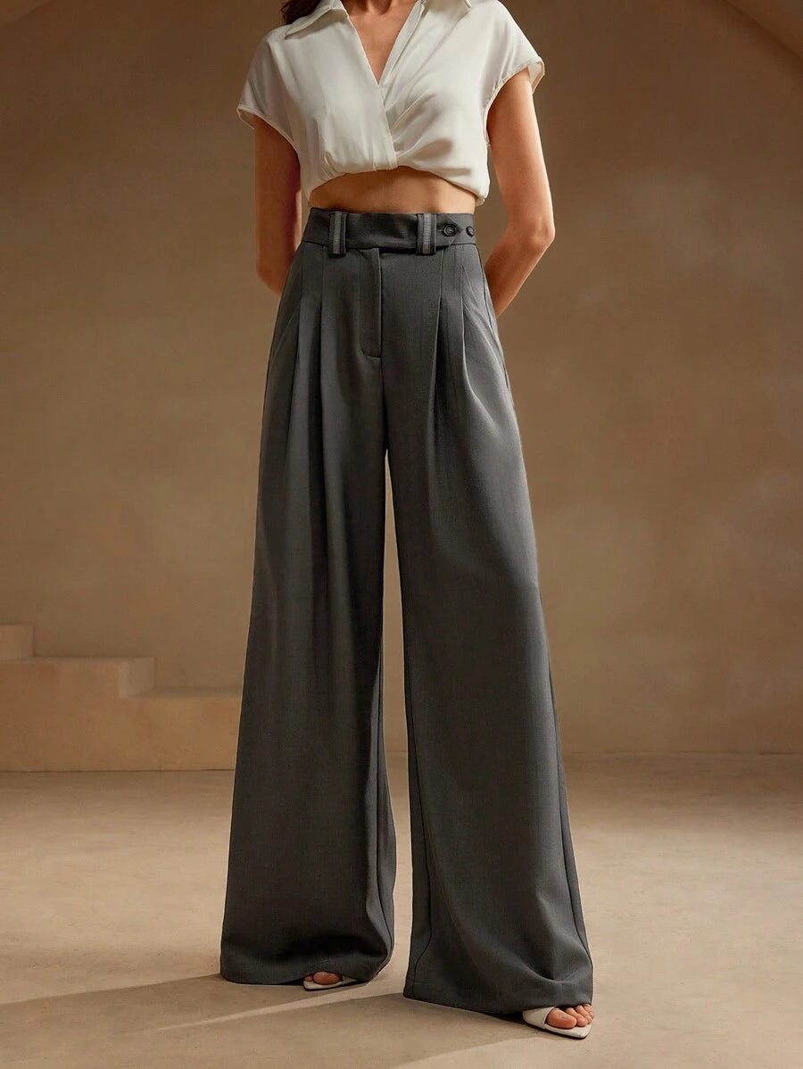 MIU Loose Straight Wide Leg Pants, Double Pleated Casual Draped Business Trousers, Slimming Effect