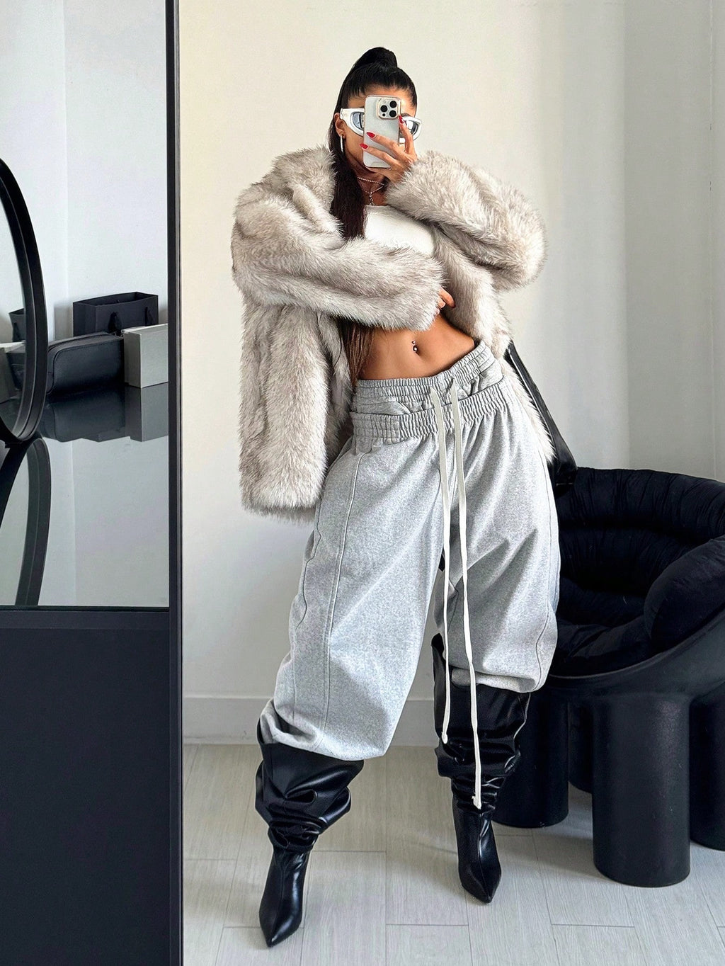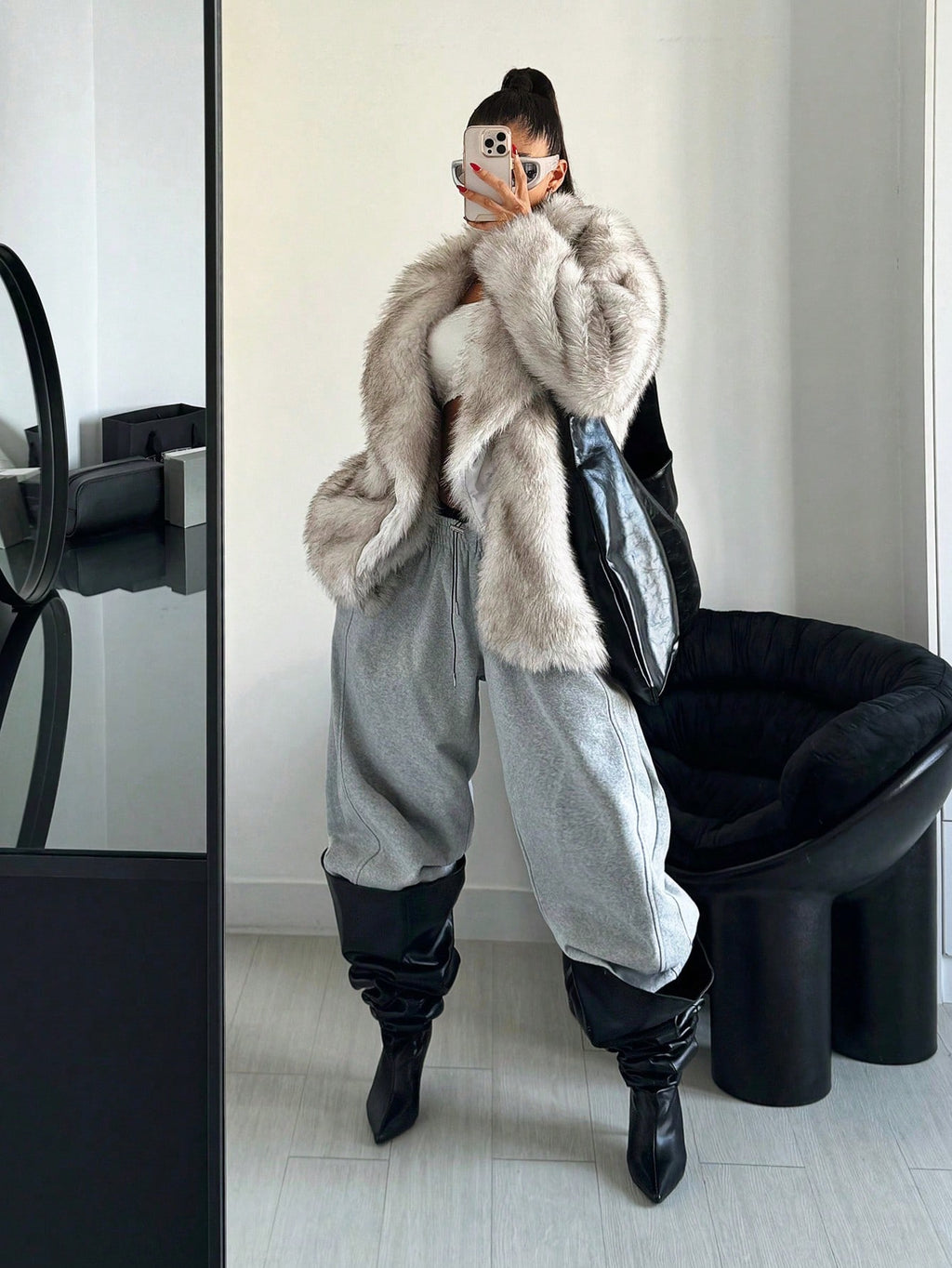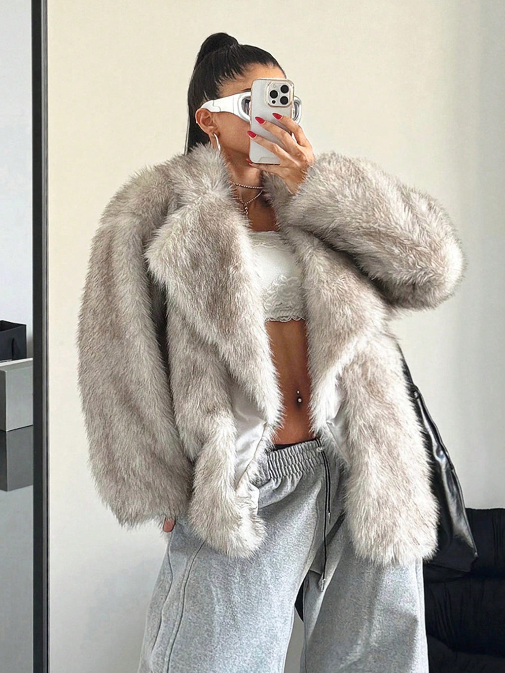 MIU MAJA EZwear elegantna ženska jakna s ombre efektom prelijevanja boja i ukrasnom bib kragnom, izrađena od mekanog, pahuljastog materijala