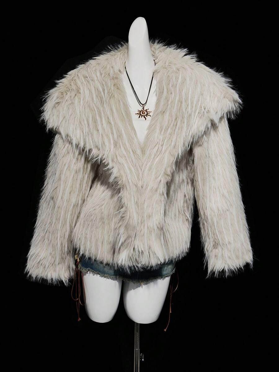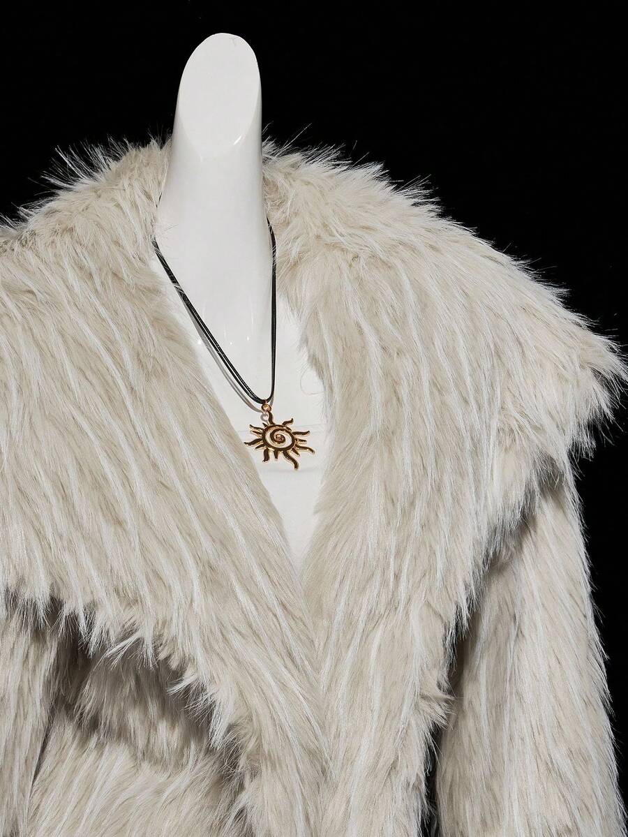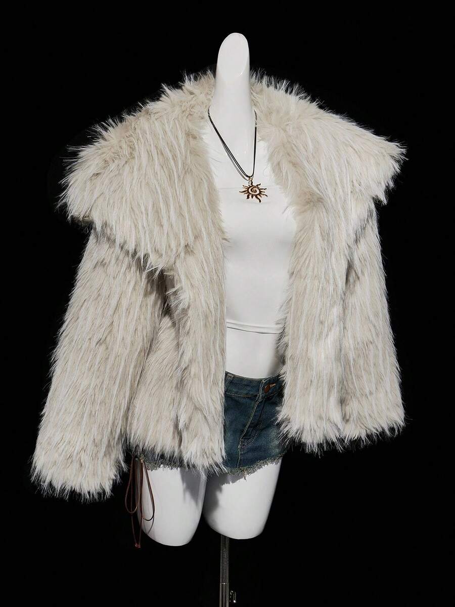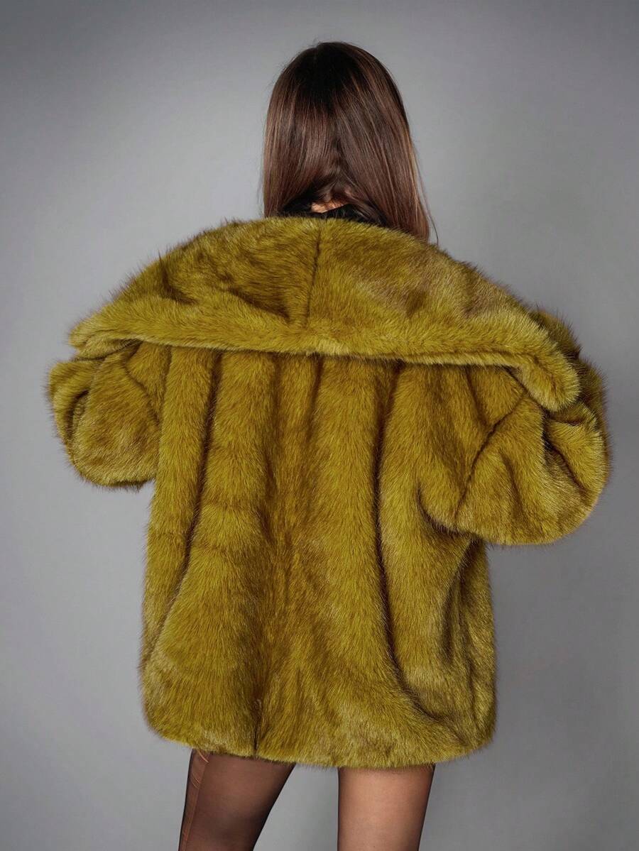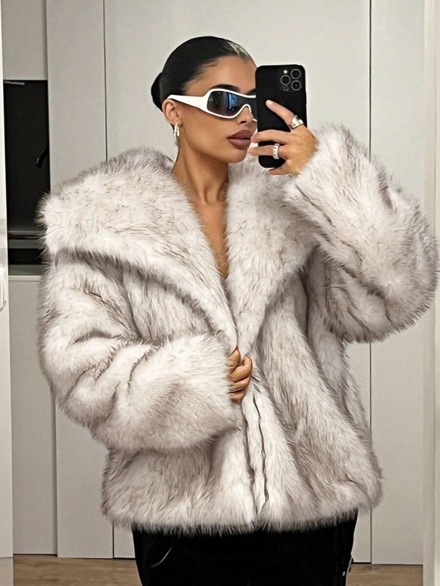 MIU MAJA ICON ženska zimska jakna od umjetnog krzna s rever kragnom i otvorenim prednjim dijelom, mekane i pahuljaste teksture, idealna za elegantan i udoban zimski izgled