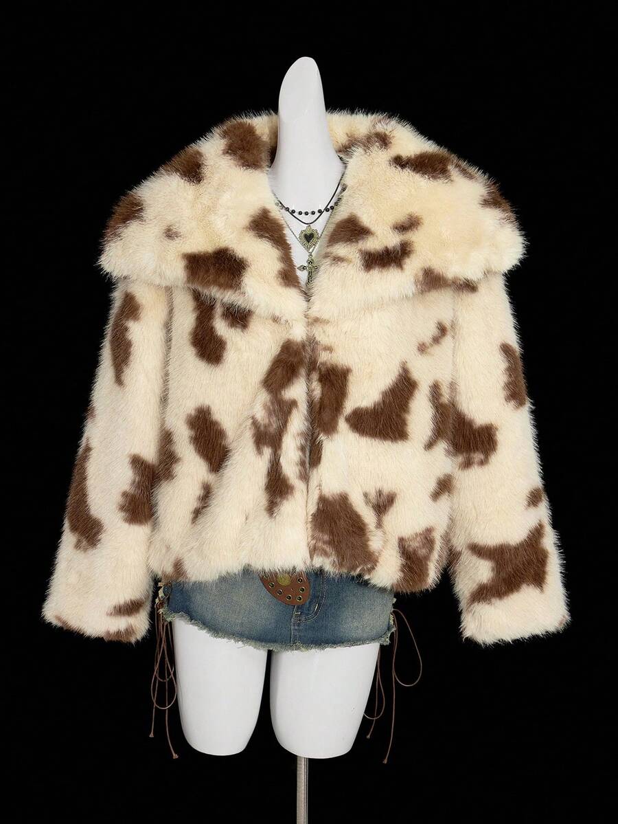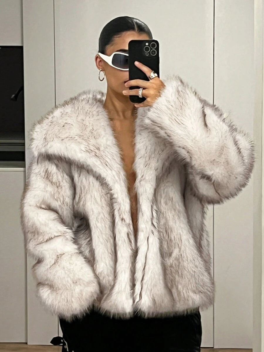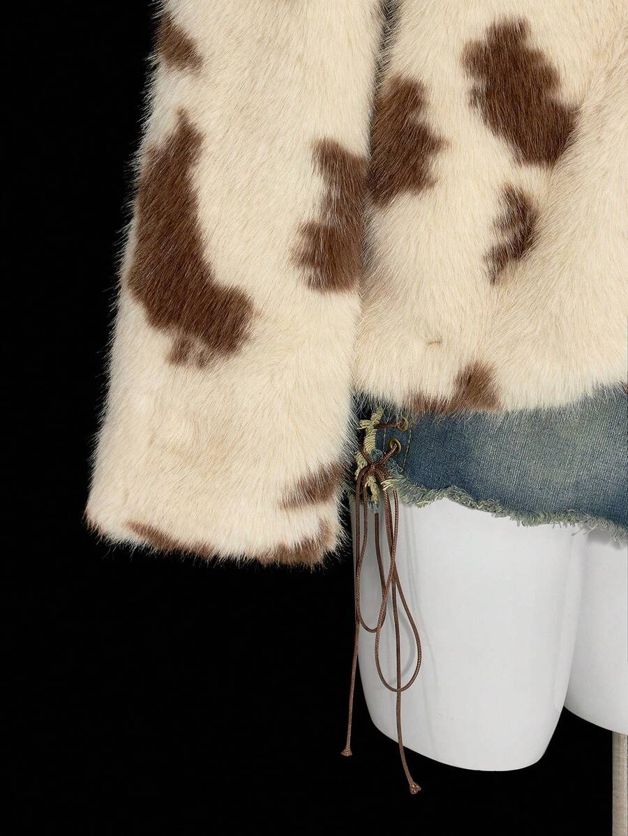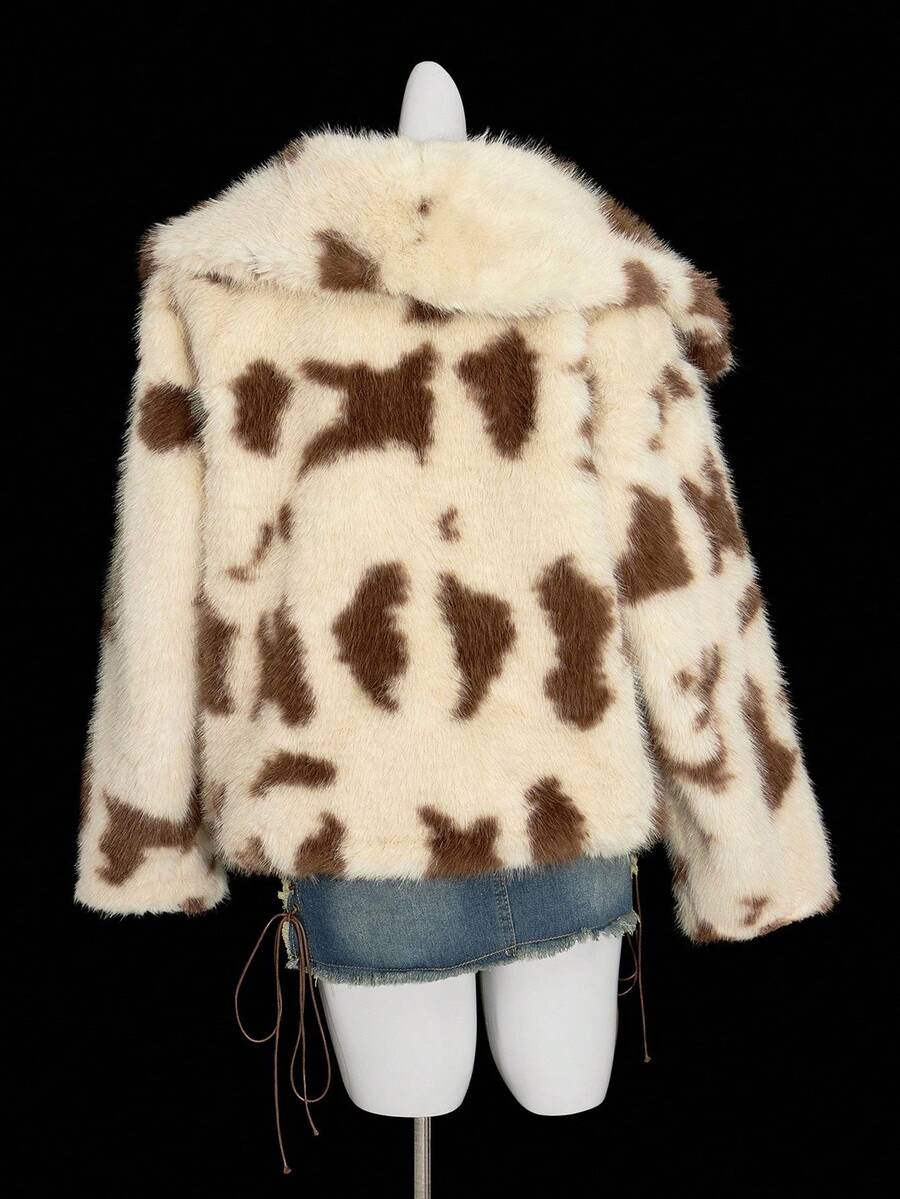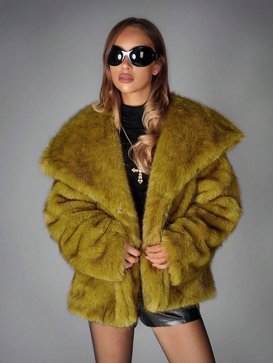 MIU MAJA ICON ženska zimska jakna od umjetnog krzna s rever kragnom i otvorenim prednjim dijelom, mekane i pahuljaste teksture, idealna za elegantan i udoban zimski izgled