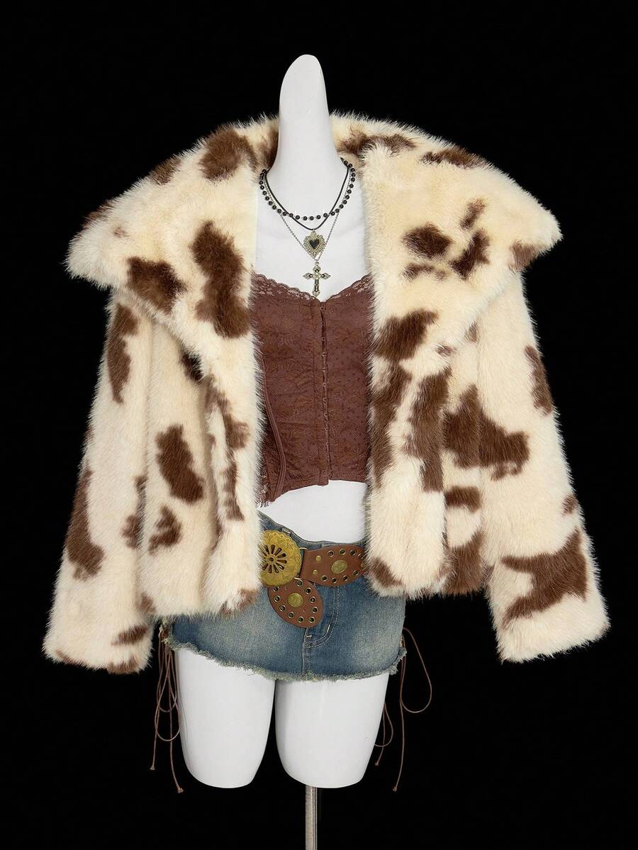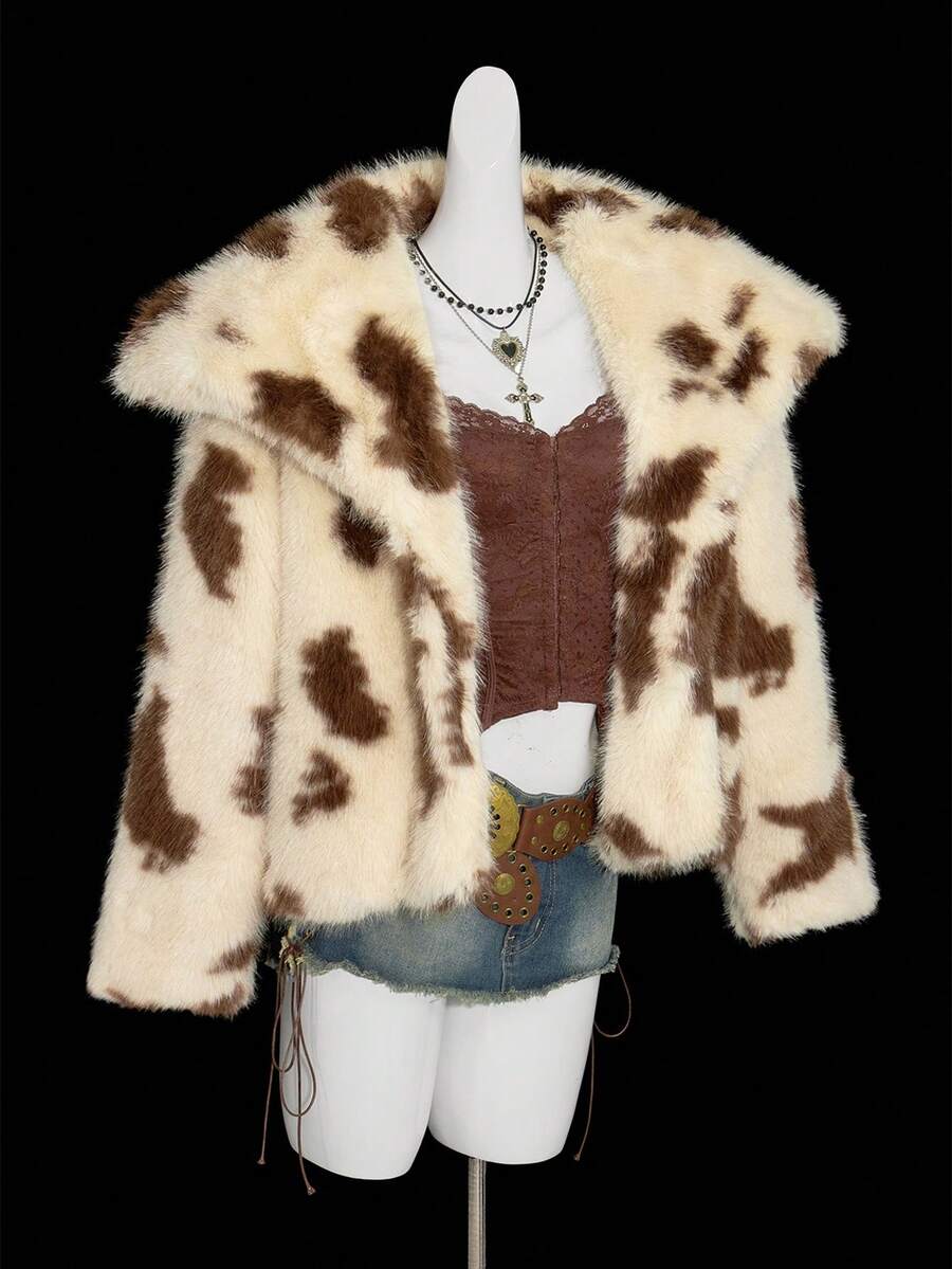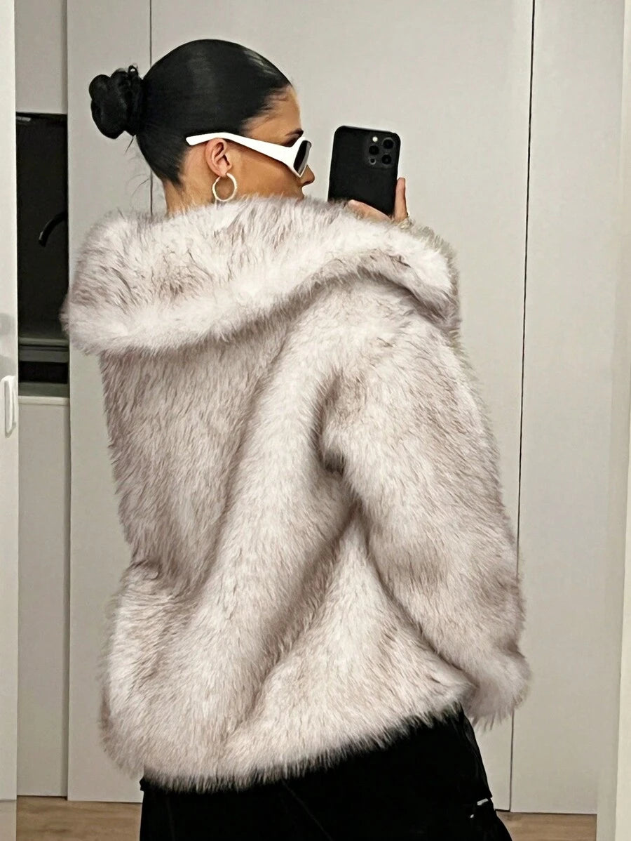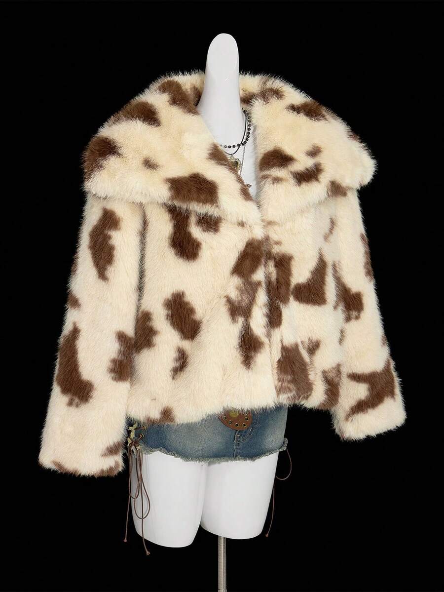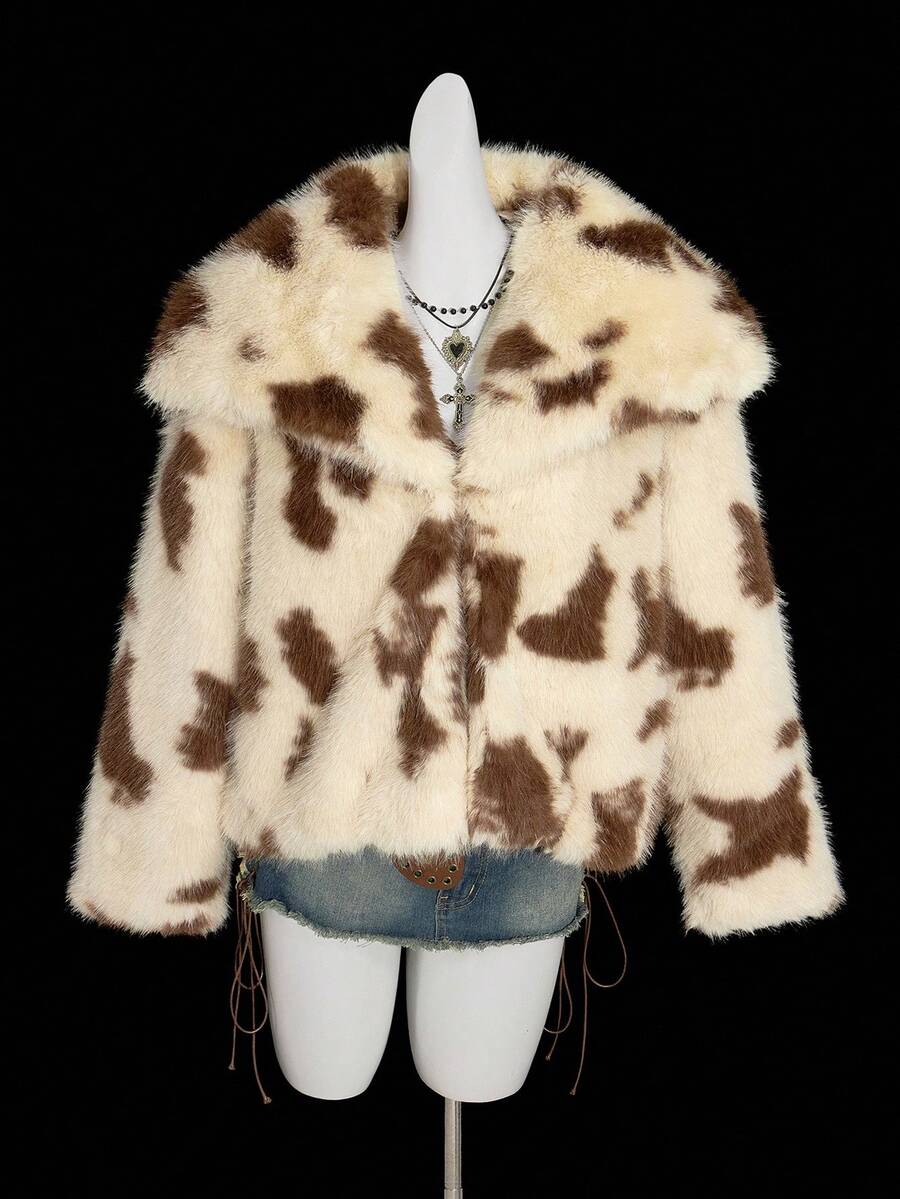 MIU MAJA ICON ženska zimska jakna od umjetnog krzna s rever kragnom i otvorenim prednjim dijelom, mekane i pahuljaste teksture, idealna za elegantan i udoban zimski izgled