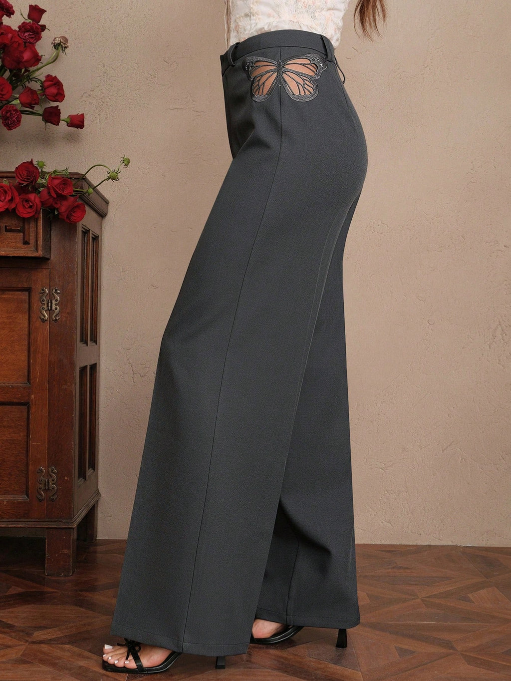 MIU New Spring/Summer/Autumn Dreamy Butterfly Cutout Embroidery Design Straight Wide Leg Pants, Modern Fashion Business Office Commute Trousers