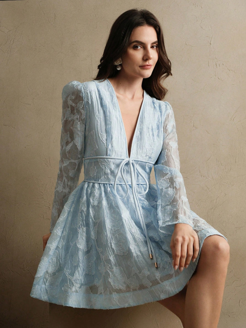 MIU Organza Floral Print V-Neck Flare Dress With Bowknot Tie, Great For Parties, Dates, Valentine's Day, Summer Vacation Dresses For Women Party Party