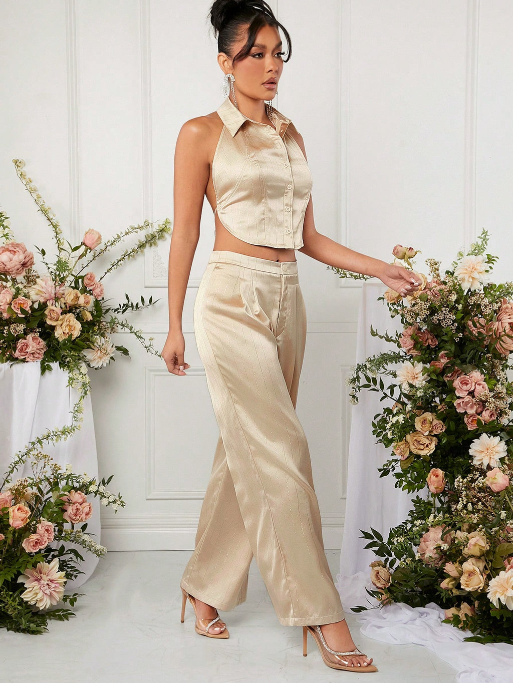 MIU Pinstriped Halter Top