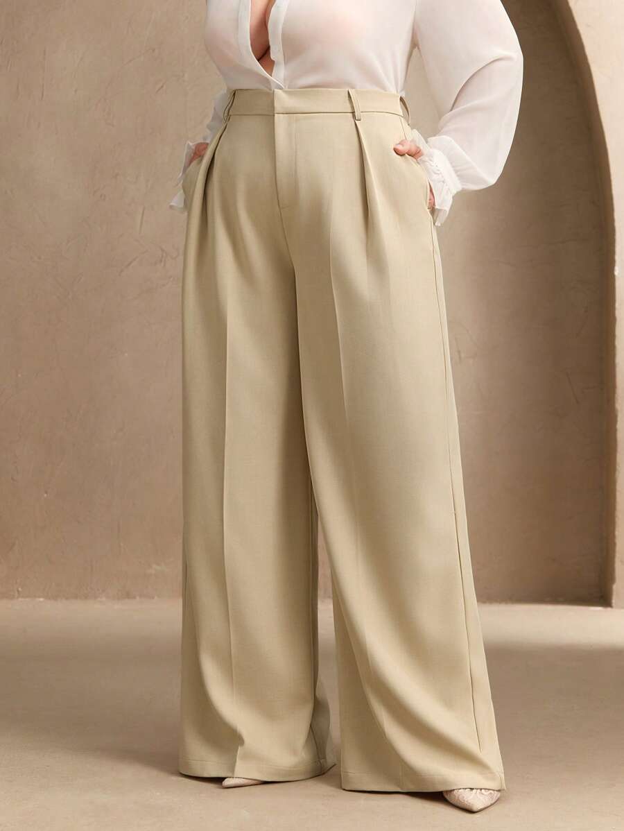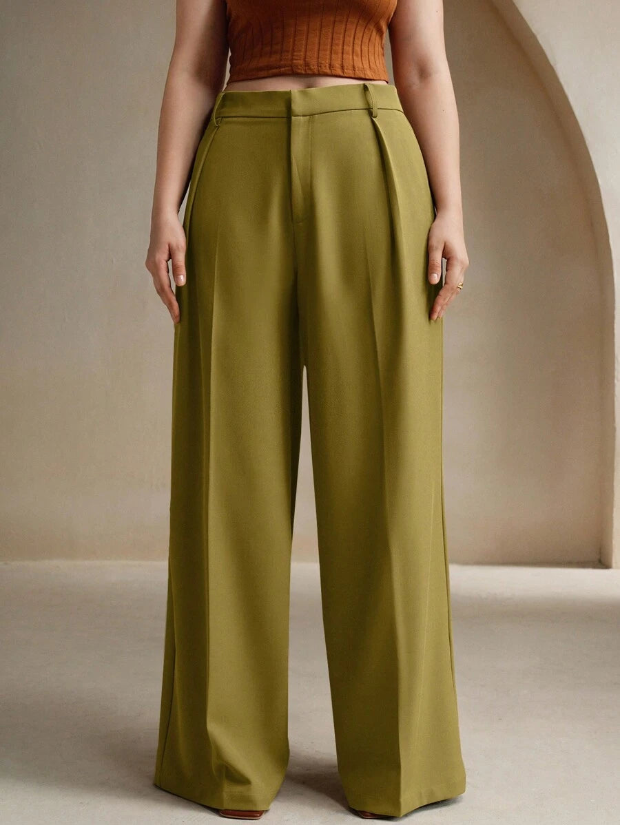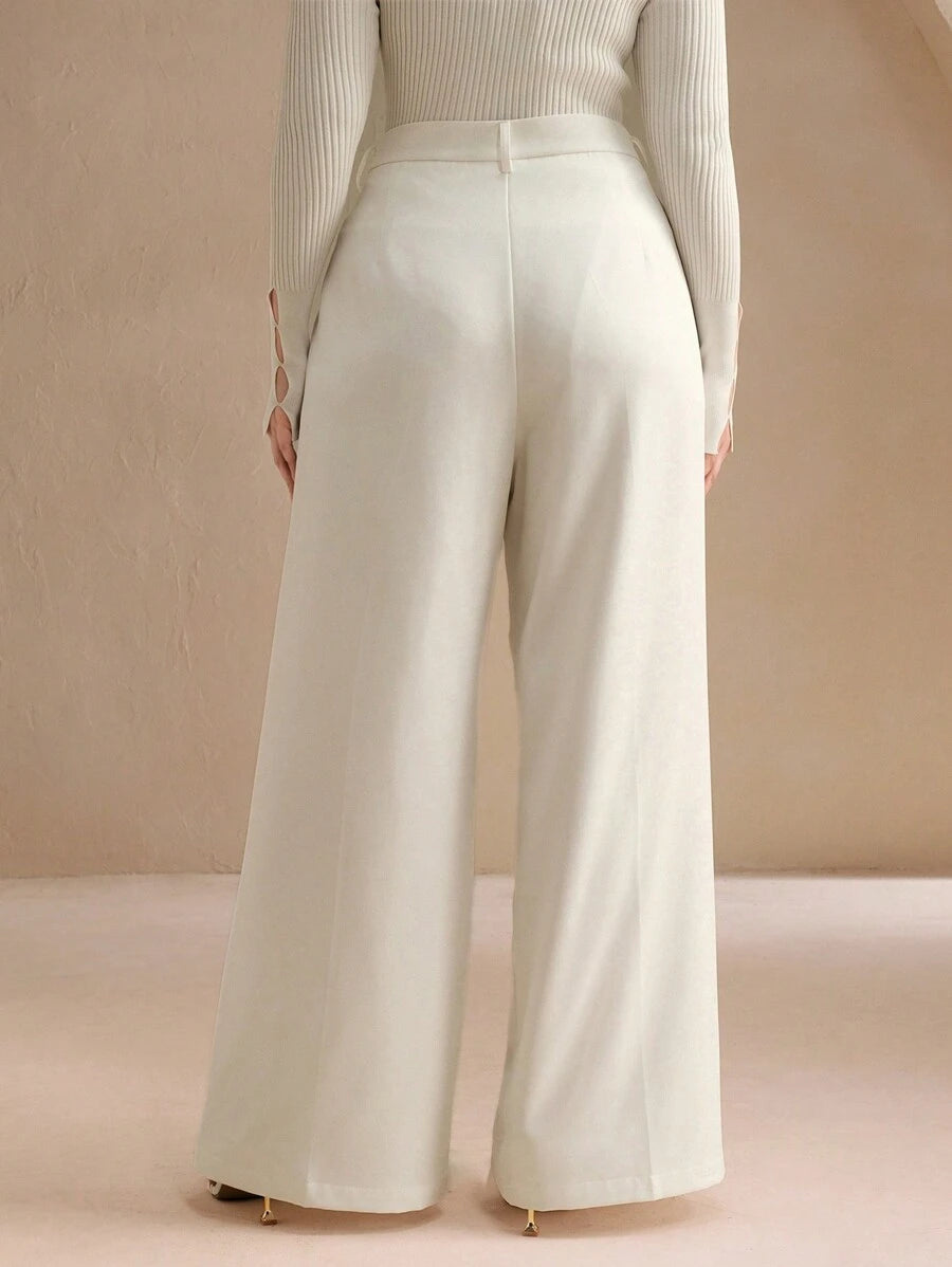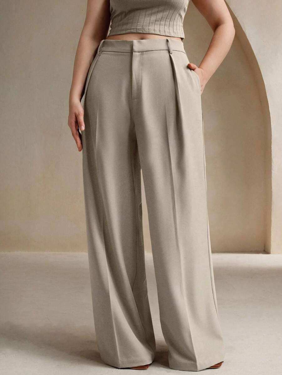 MIU Plus Size Elegant Business Casual Straight-Leg Pants, Chic And Modern "Old Money" Style, Suitable For Spring And Summer Outfits Women Clothing Pants