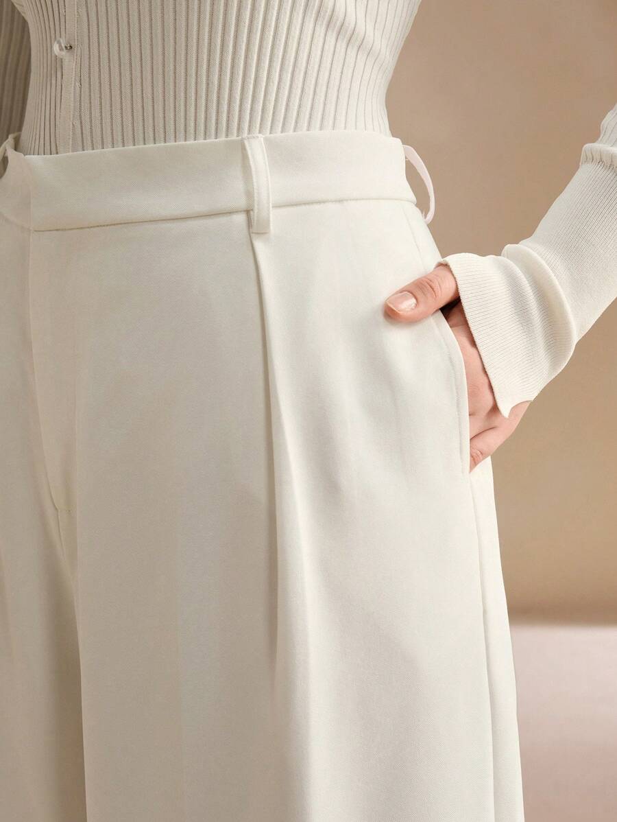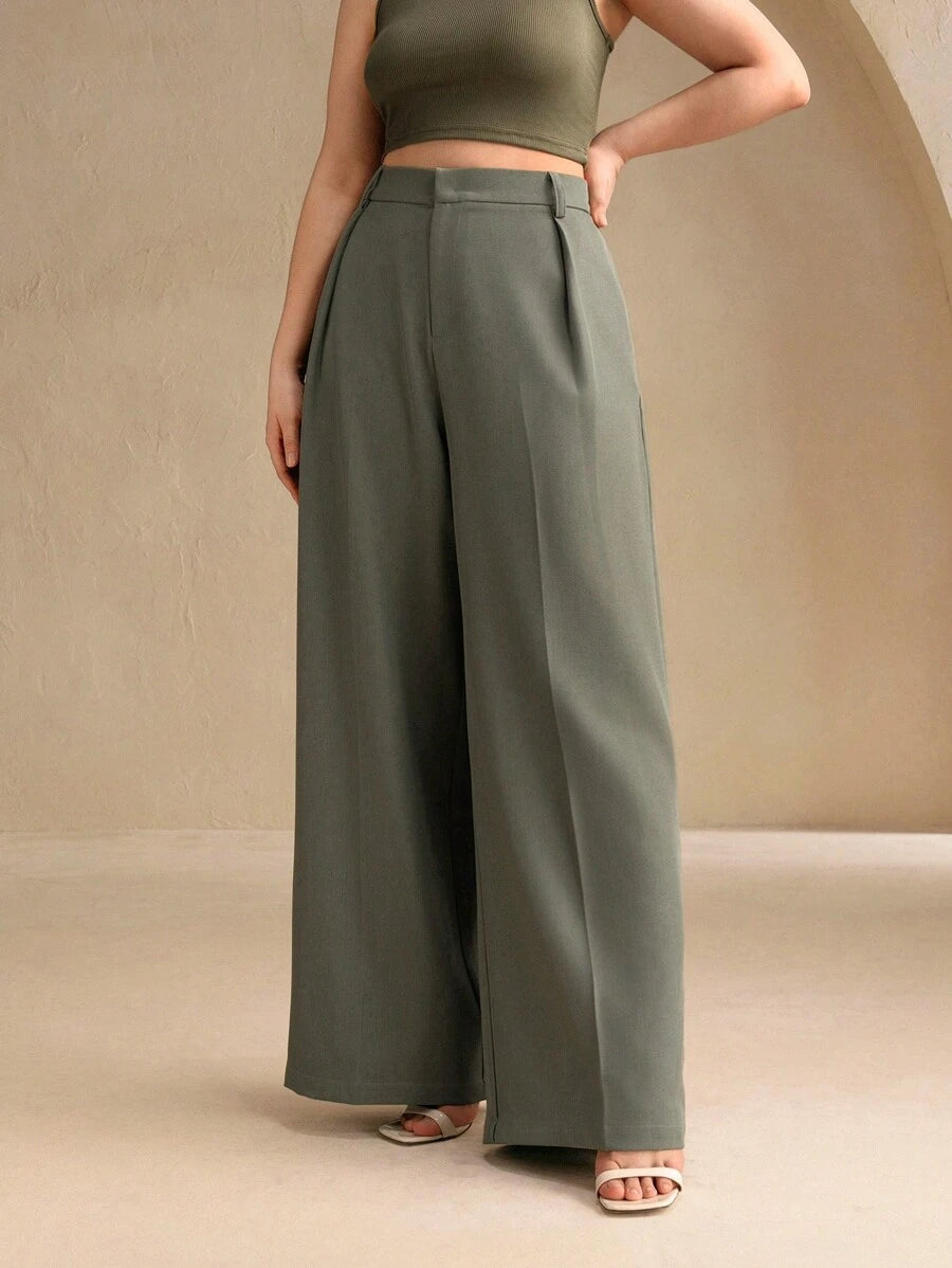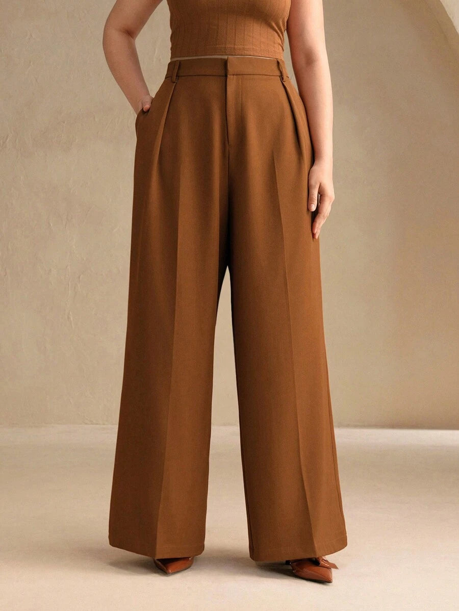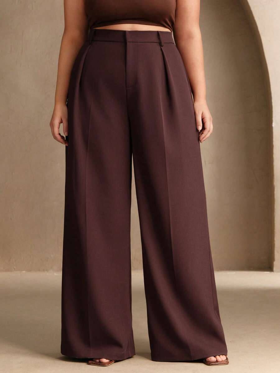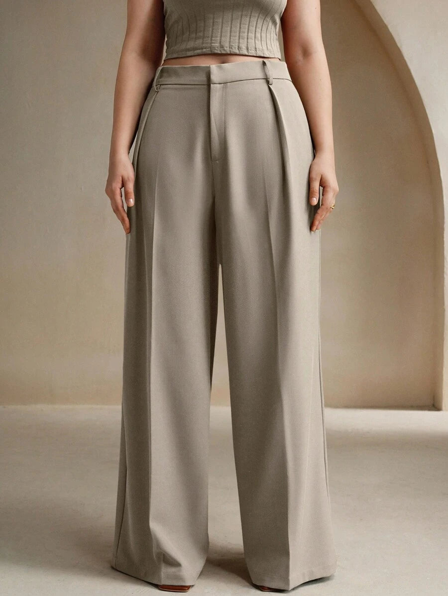 MIU Plus Size Elegant Business Casual Straight-Leg Pants, Chic And Modern "Old Money" Style, Suitable For Spring And Summer Outfits Women Clothing Pants