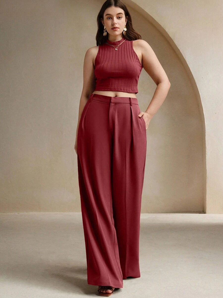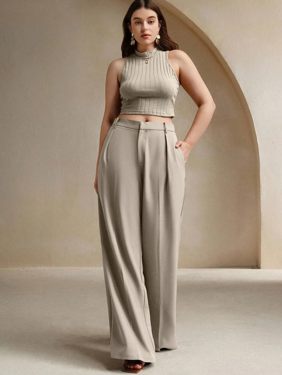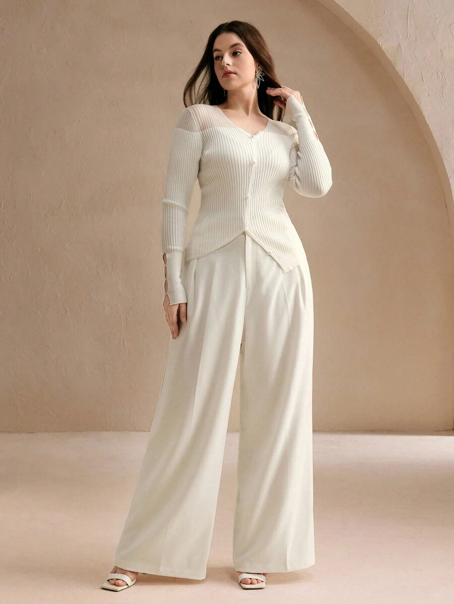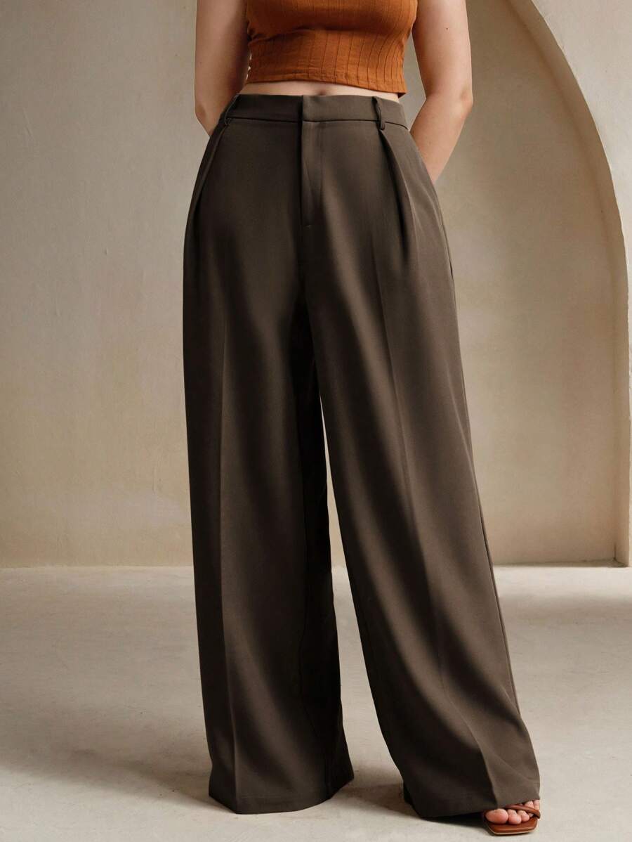 MIU Plus Size Elegant Business Casual Straight-Leg Pants, Chic And Modern "Old Money" Style, Suitable For Spring And Summer Outfits Women Clothing Pants