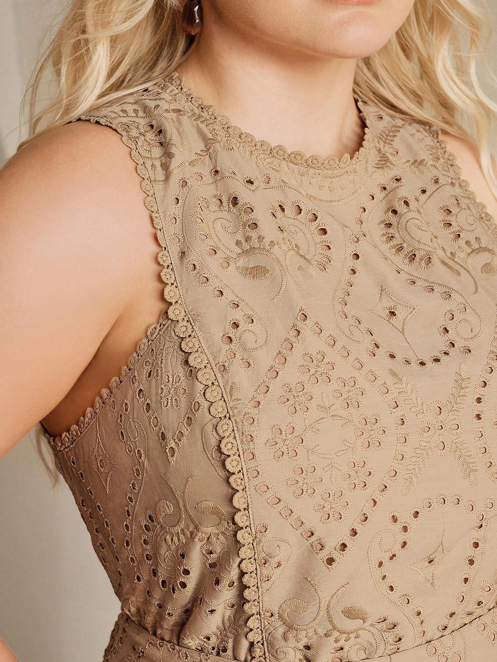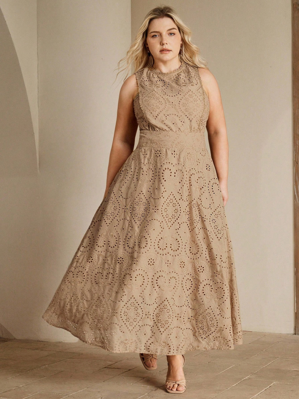 MIU Plus Size Women 2pcs Set Elegant Embroidered Sleeveless Top And Skirt