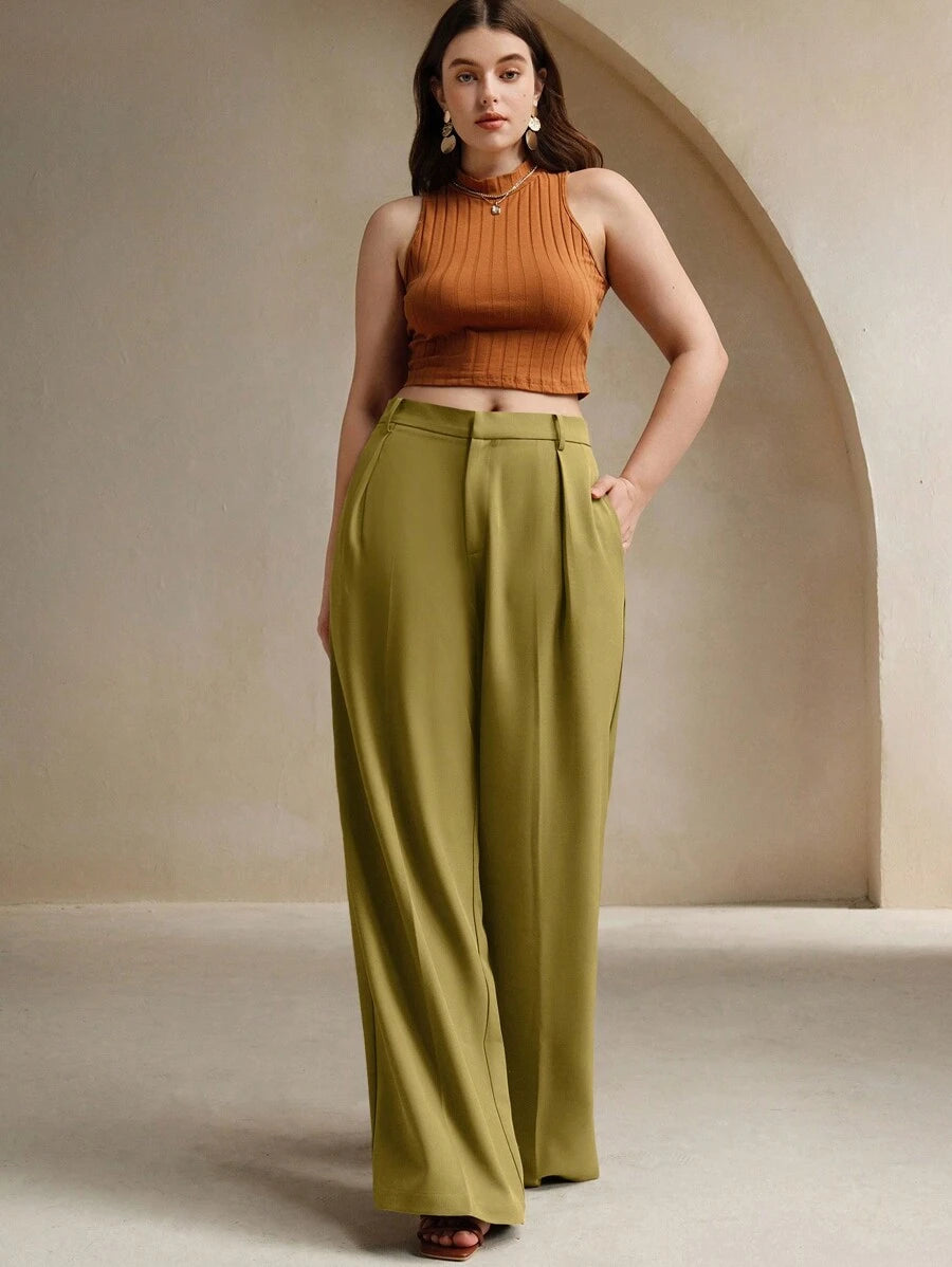 MIU Plus Size Women Solid Color Casual/Office Elegant Fashion Suit Pants