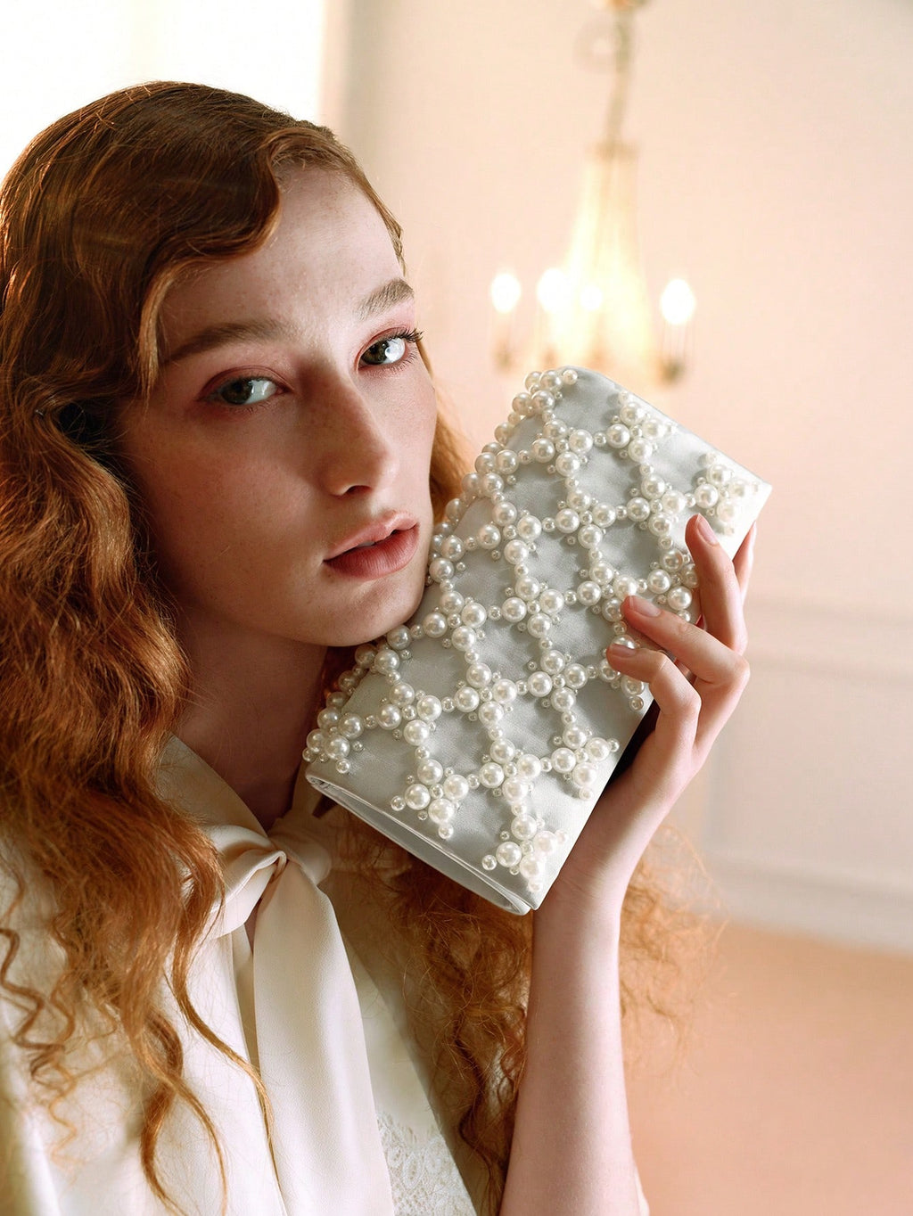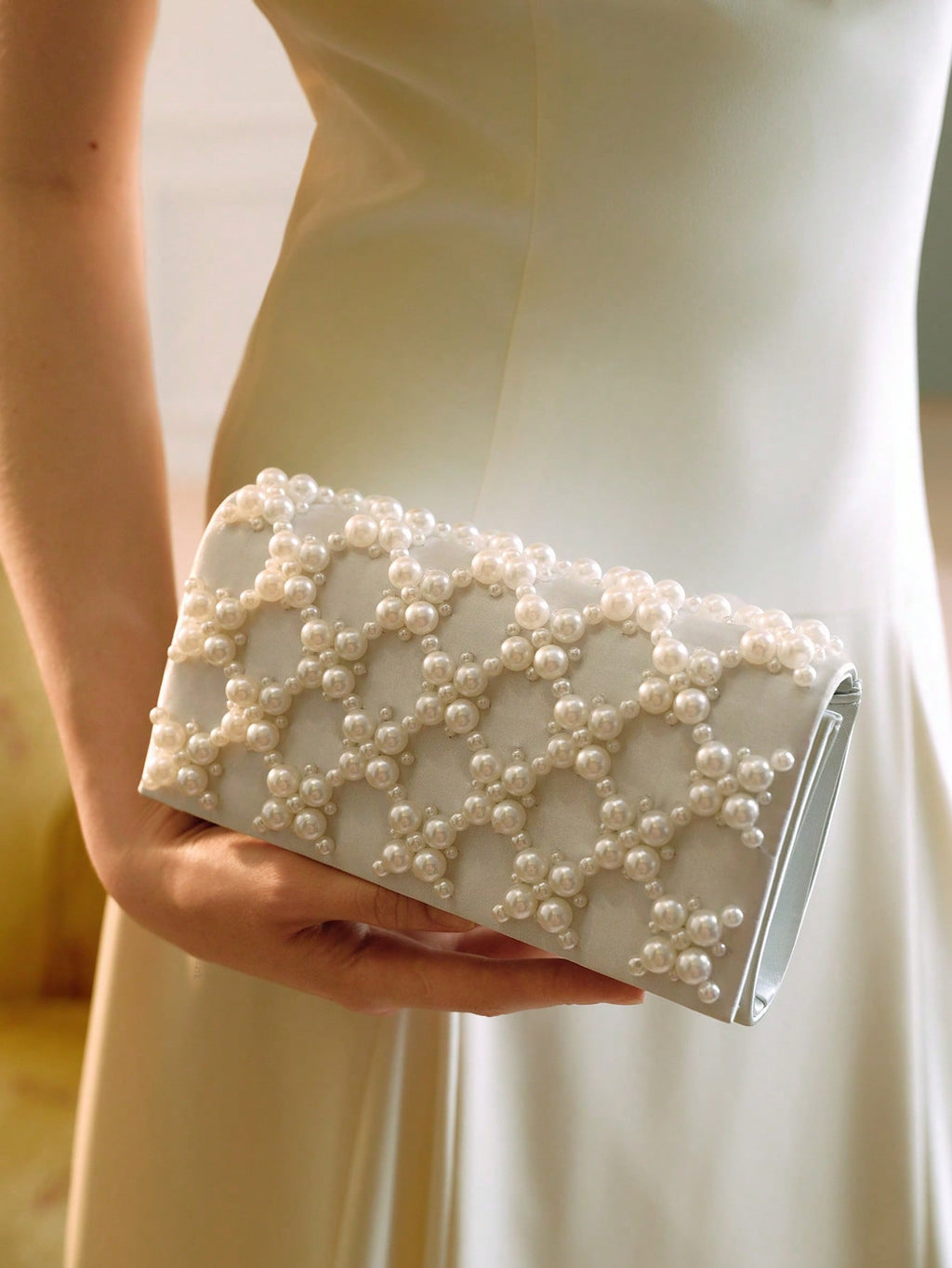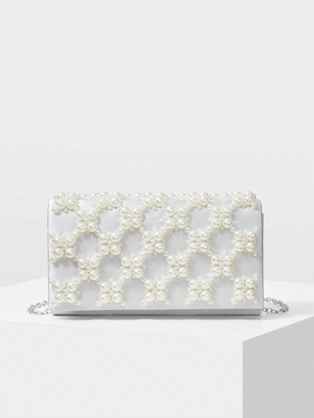 MIU PREMIUM ELEGANT PARTY PEARL FLAP CLUTCH BAG