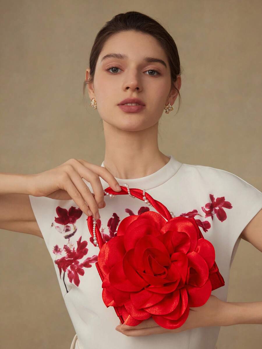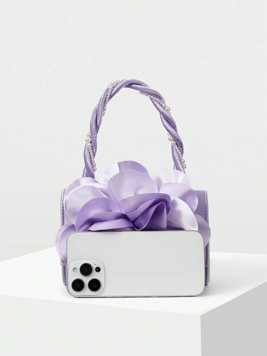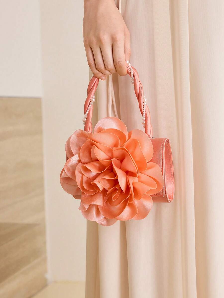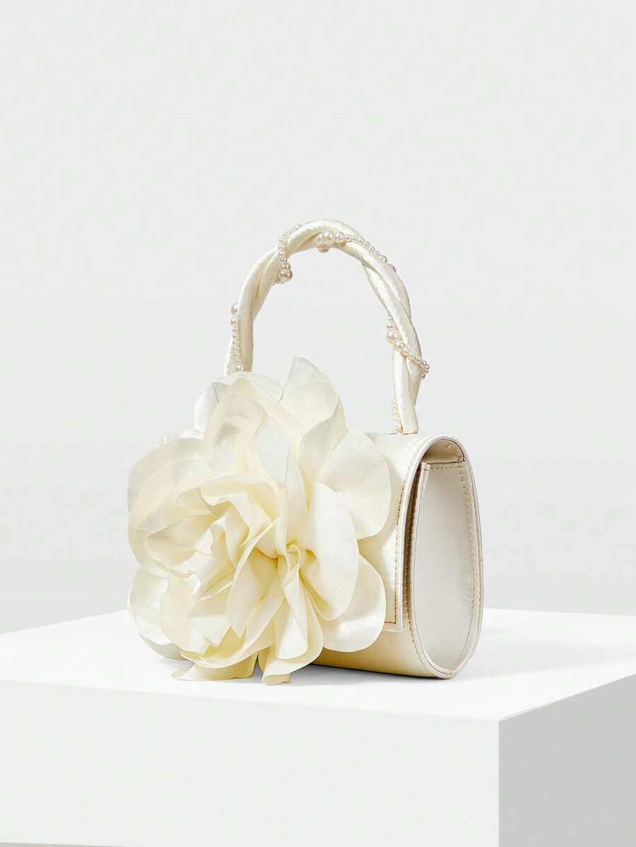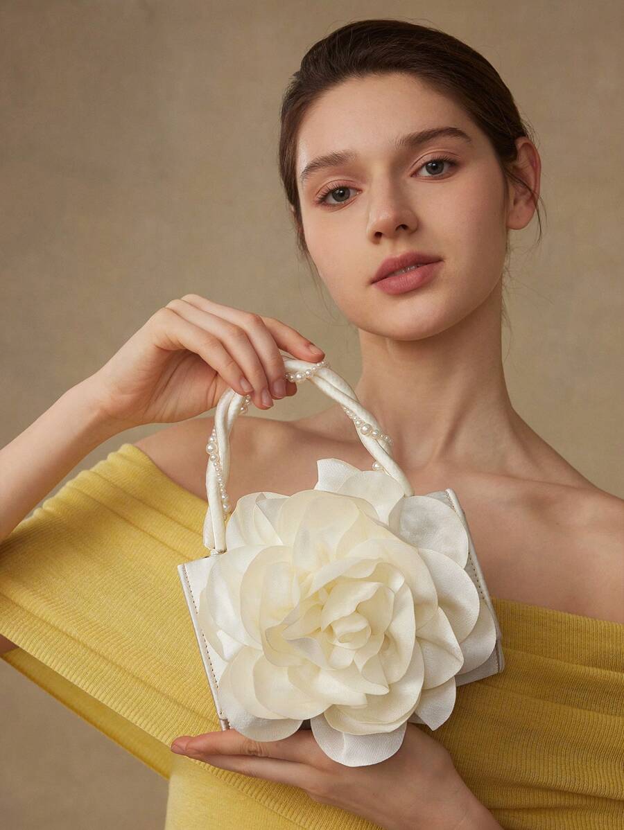 MIU PREMIUM FAUX PEARL STEREO FLORAL EVENING BAG