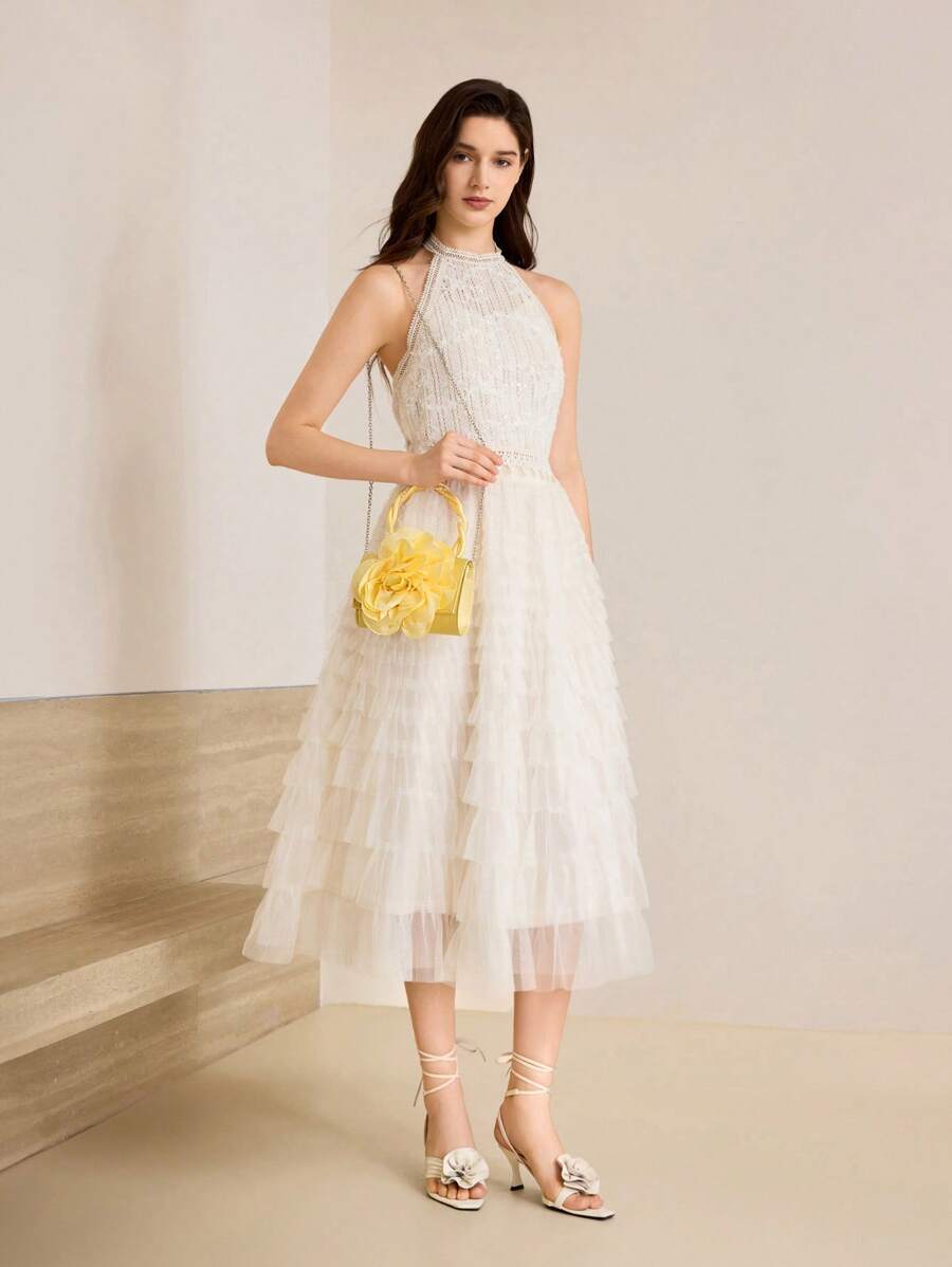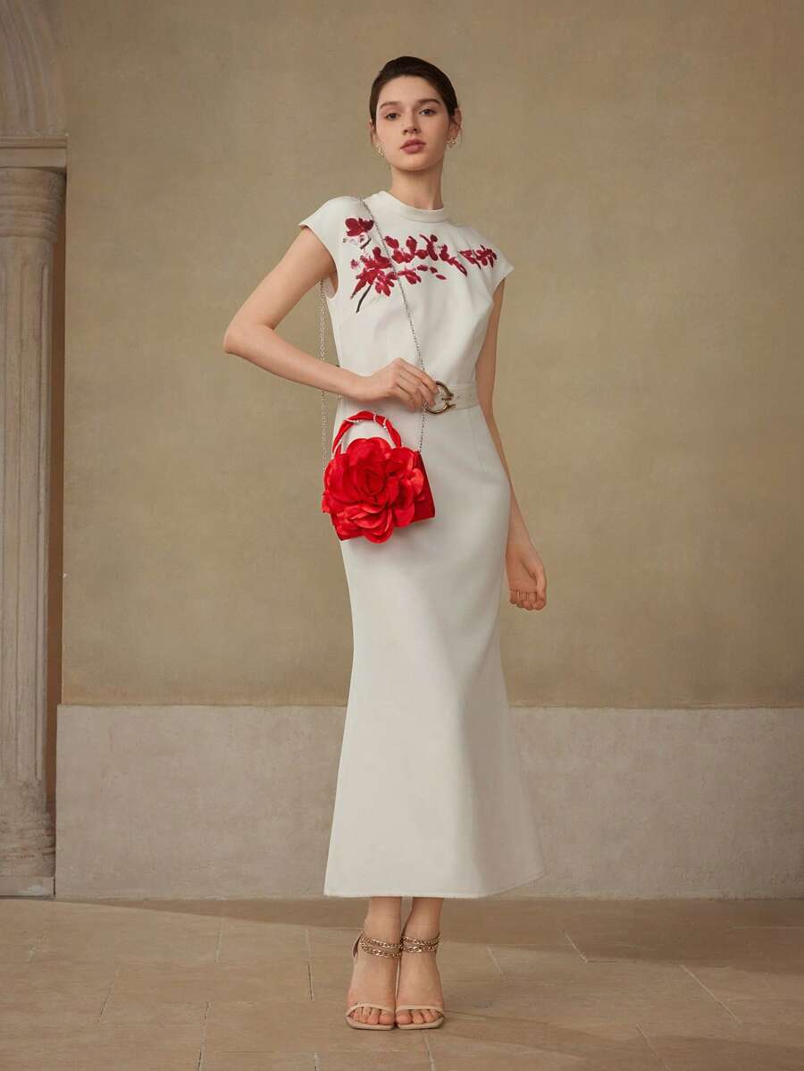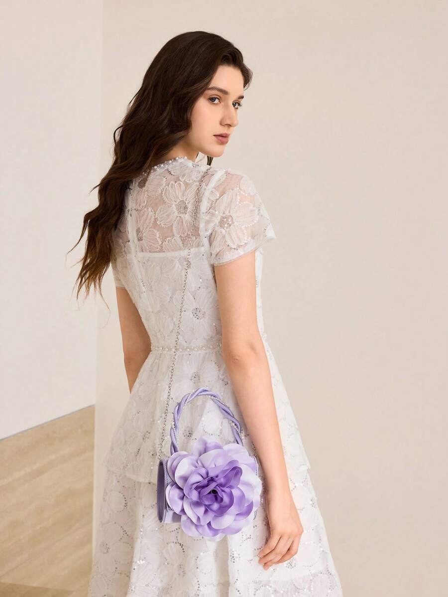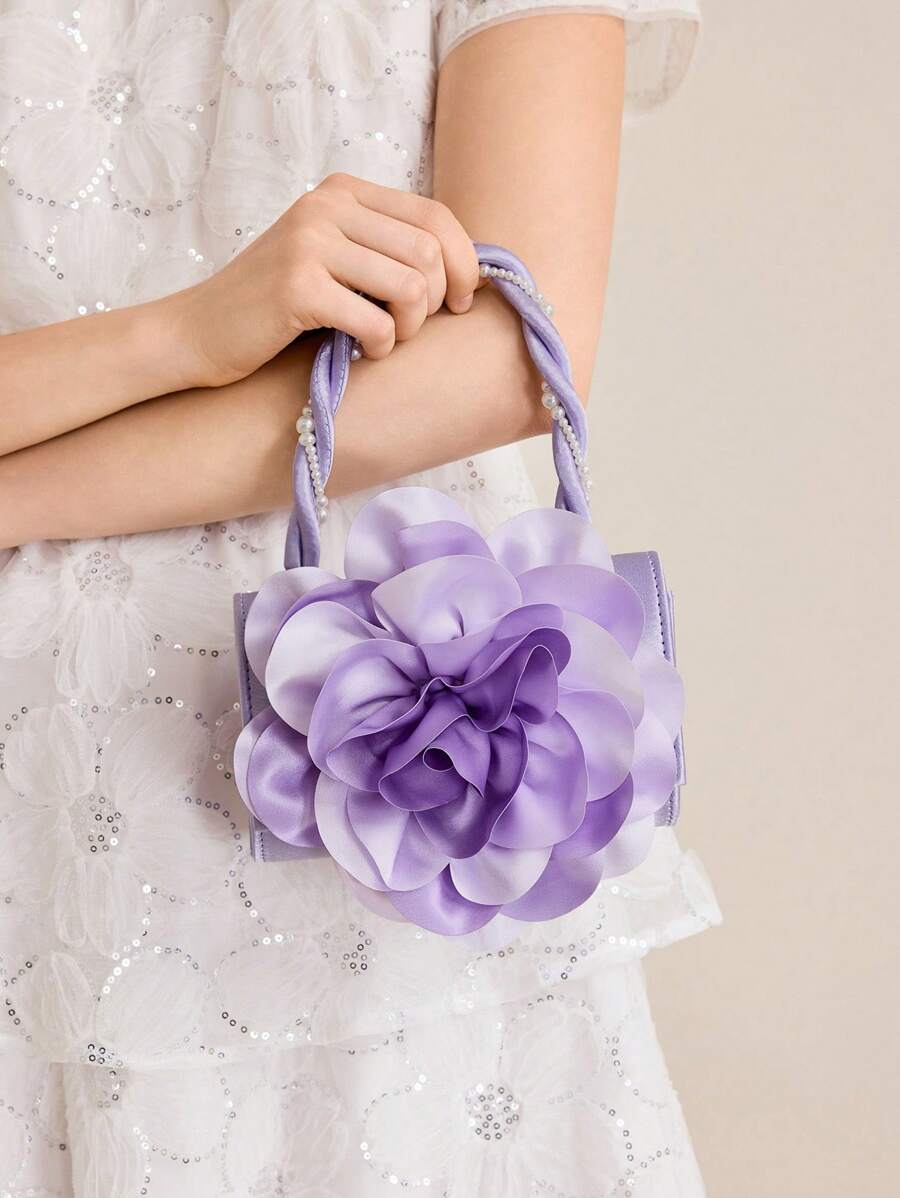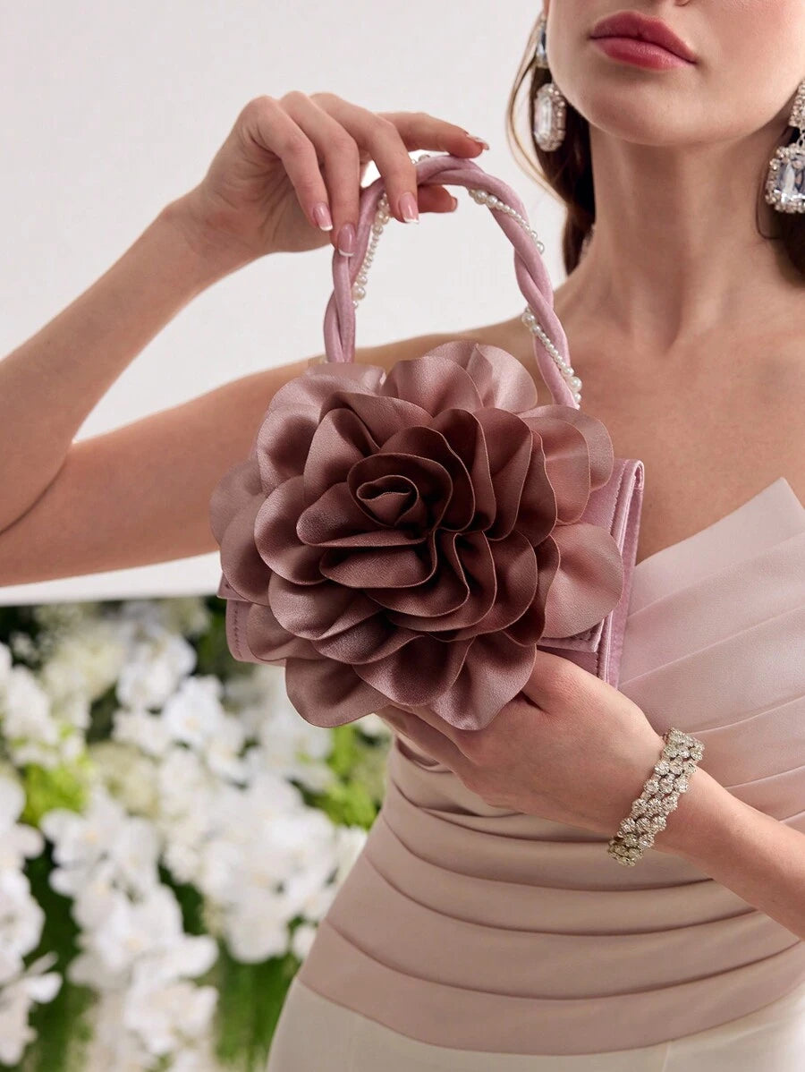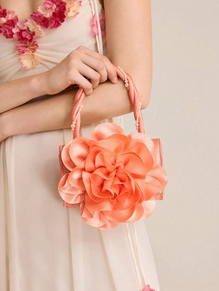 MIU PREMIUM FAUX PEARL STEREO FLORAL EVENING BAG