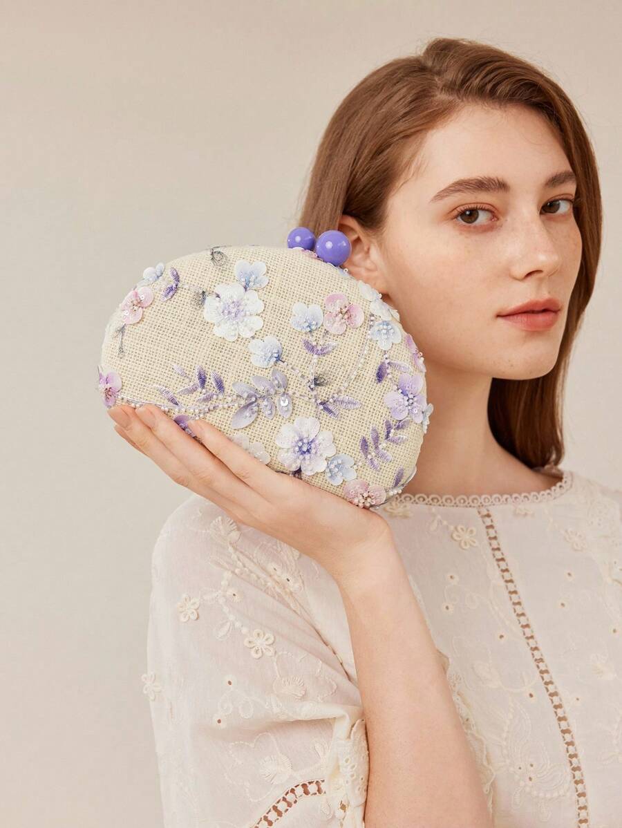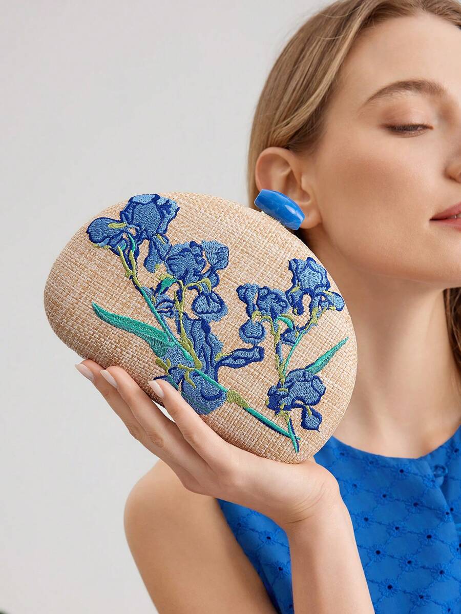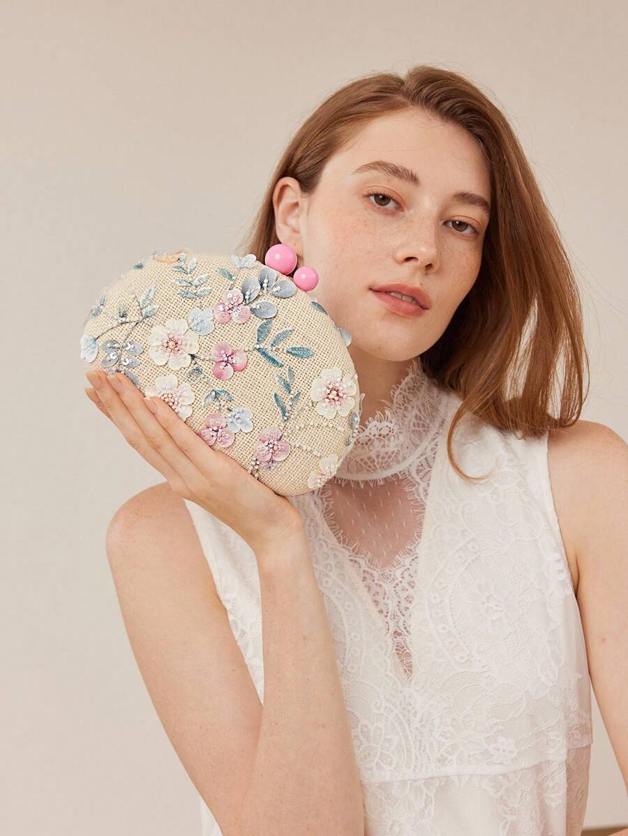 MIU PREMIUM FLORAL EMBROIDERY CLUTCH