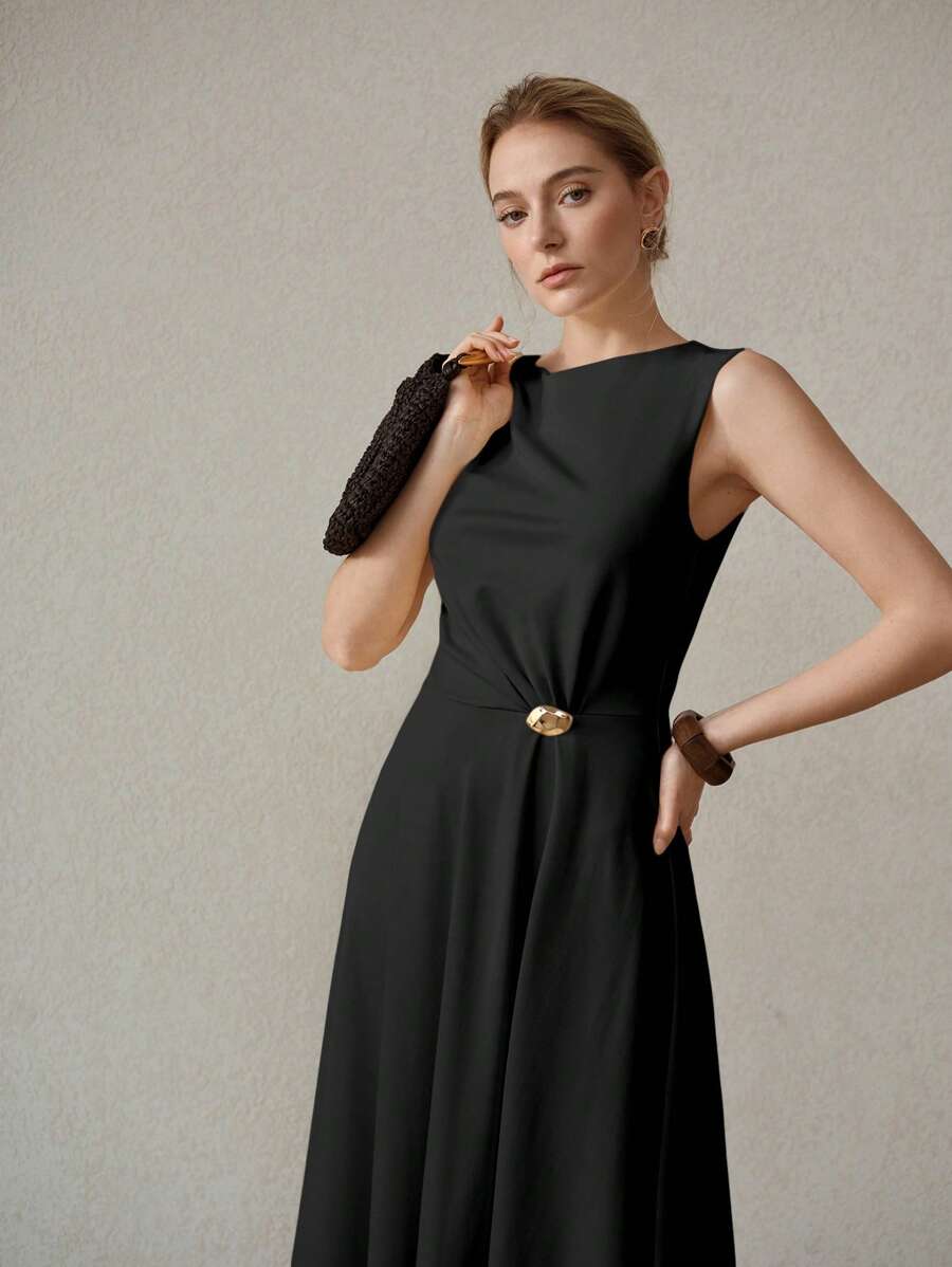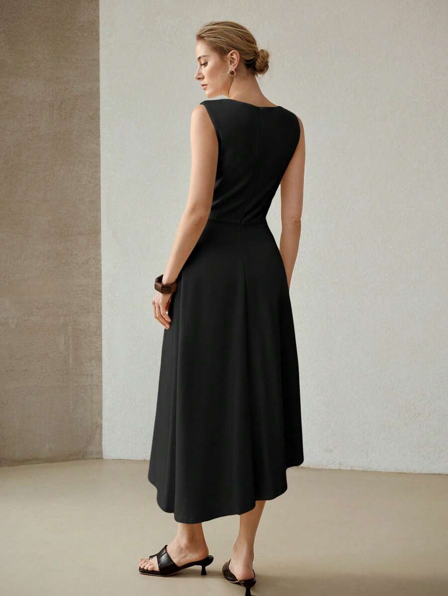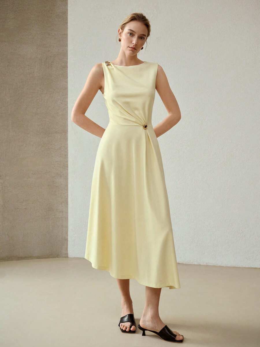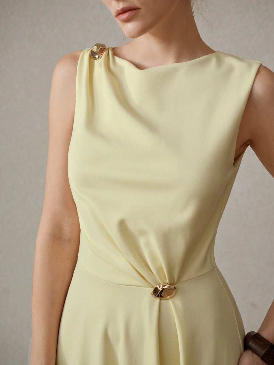 MIU PREMIUM METAL DECOR ASYMMETRICAL HEM DRESS