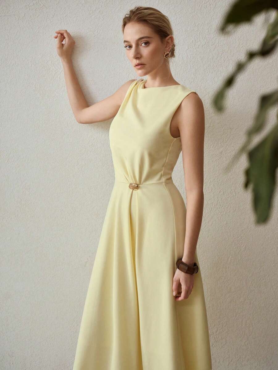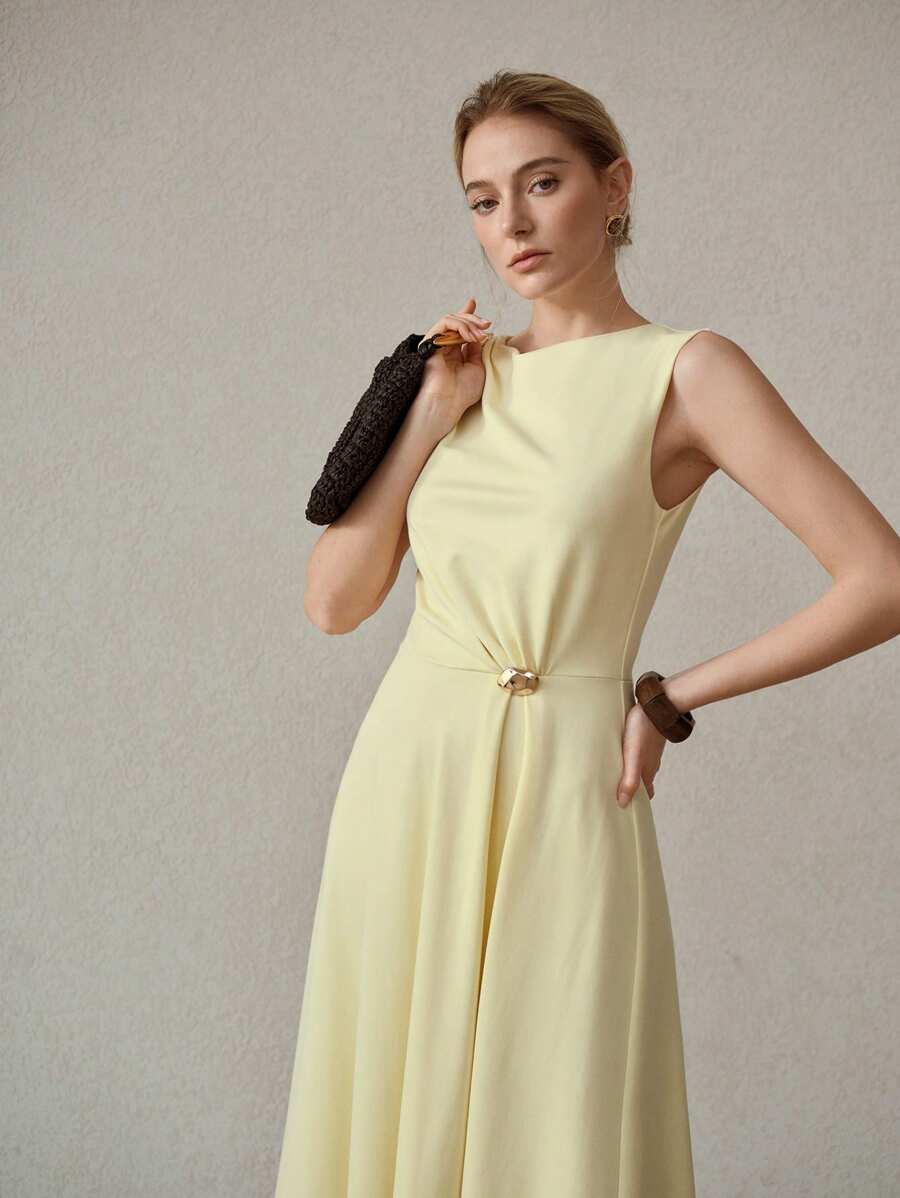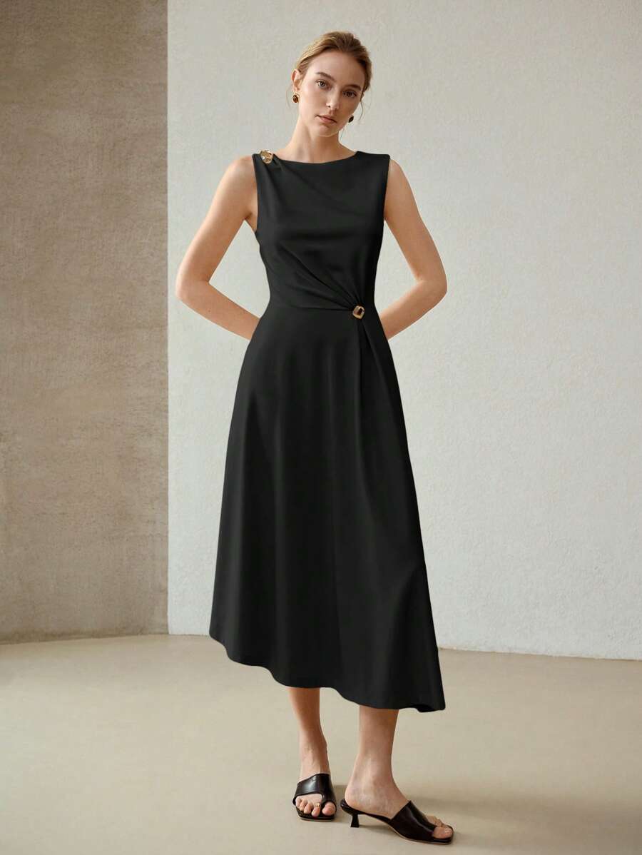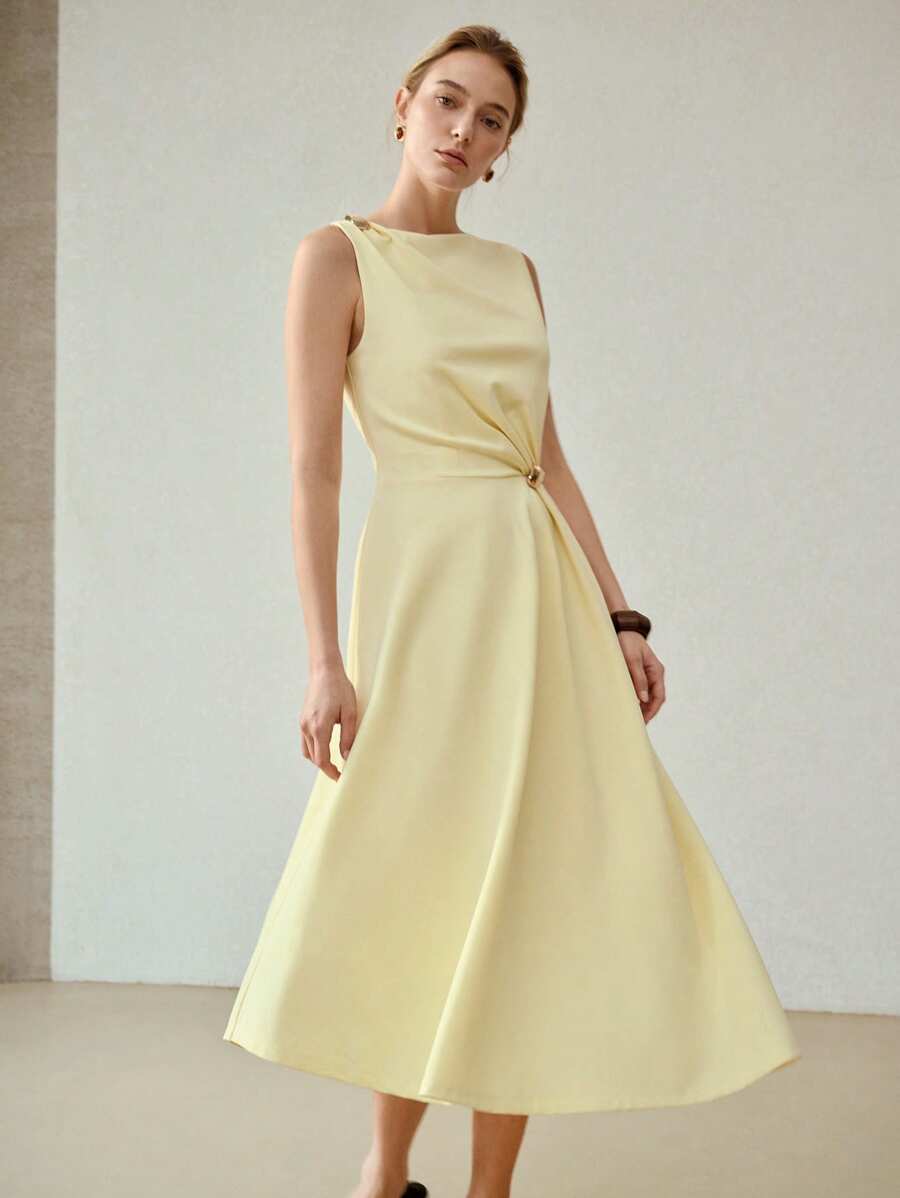 MIU PREMIUM METAL DECOR ASYMMETRICAL HEM DRESS
