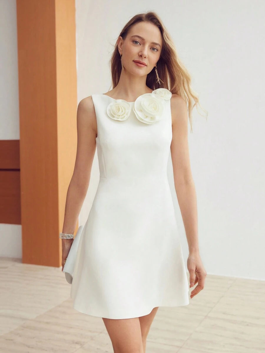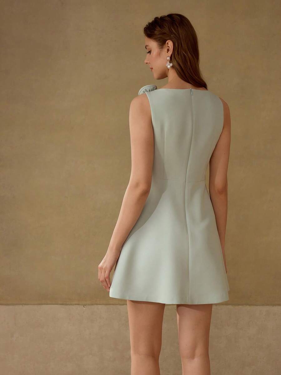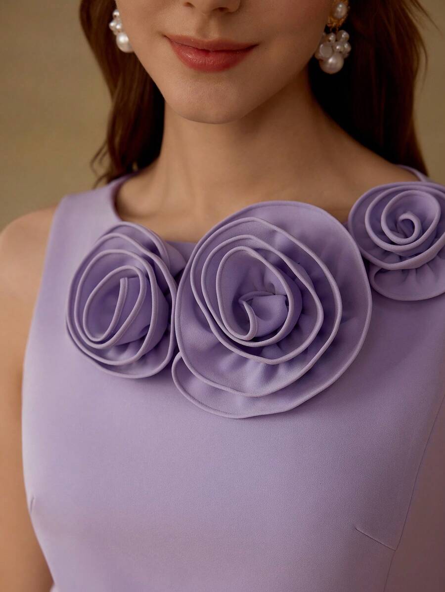 MIU PREMIUM STEREO FLOWER DETAIL SOLID DRESS,HOLIDAY PARTY BIRTHDAY FORMAL EVENING OCCASSION