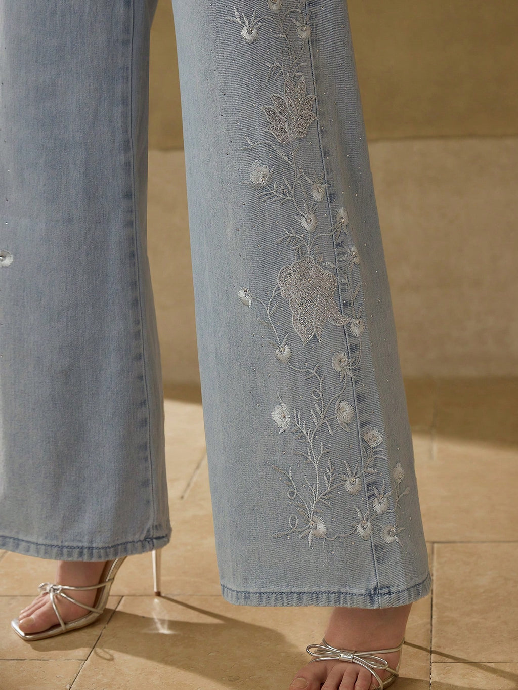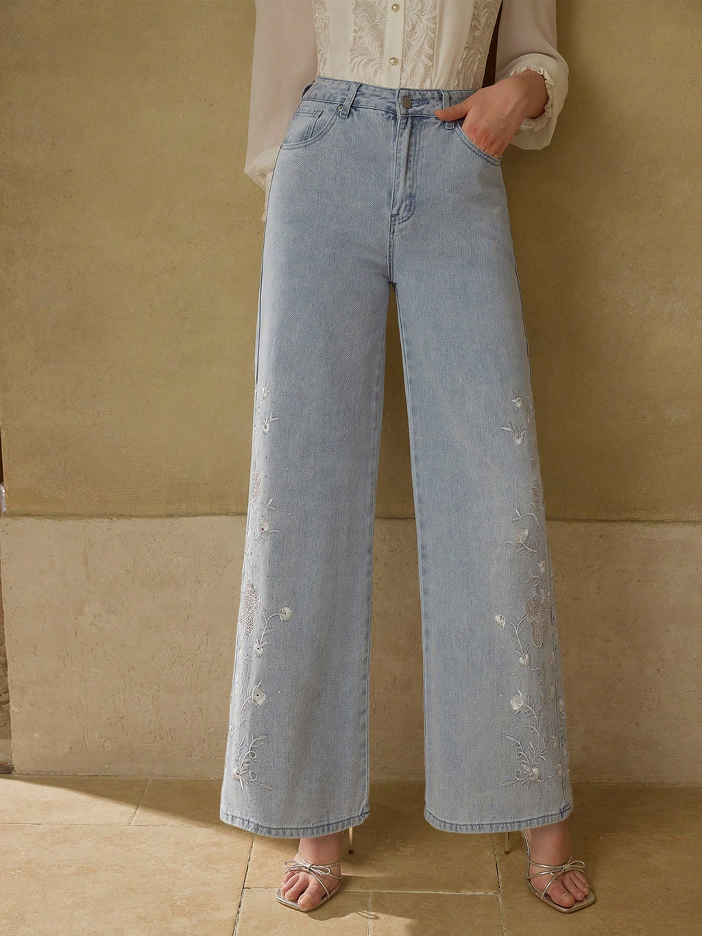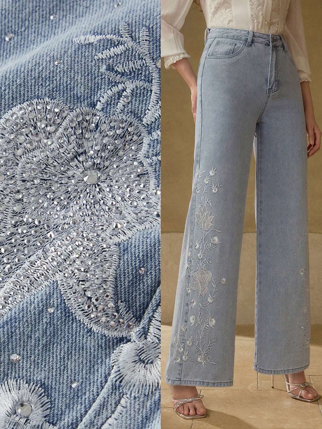 MIU PREMIUM WOMEN EMBROIDERED DENIM LONG PANTS
