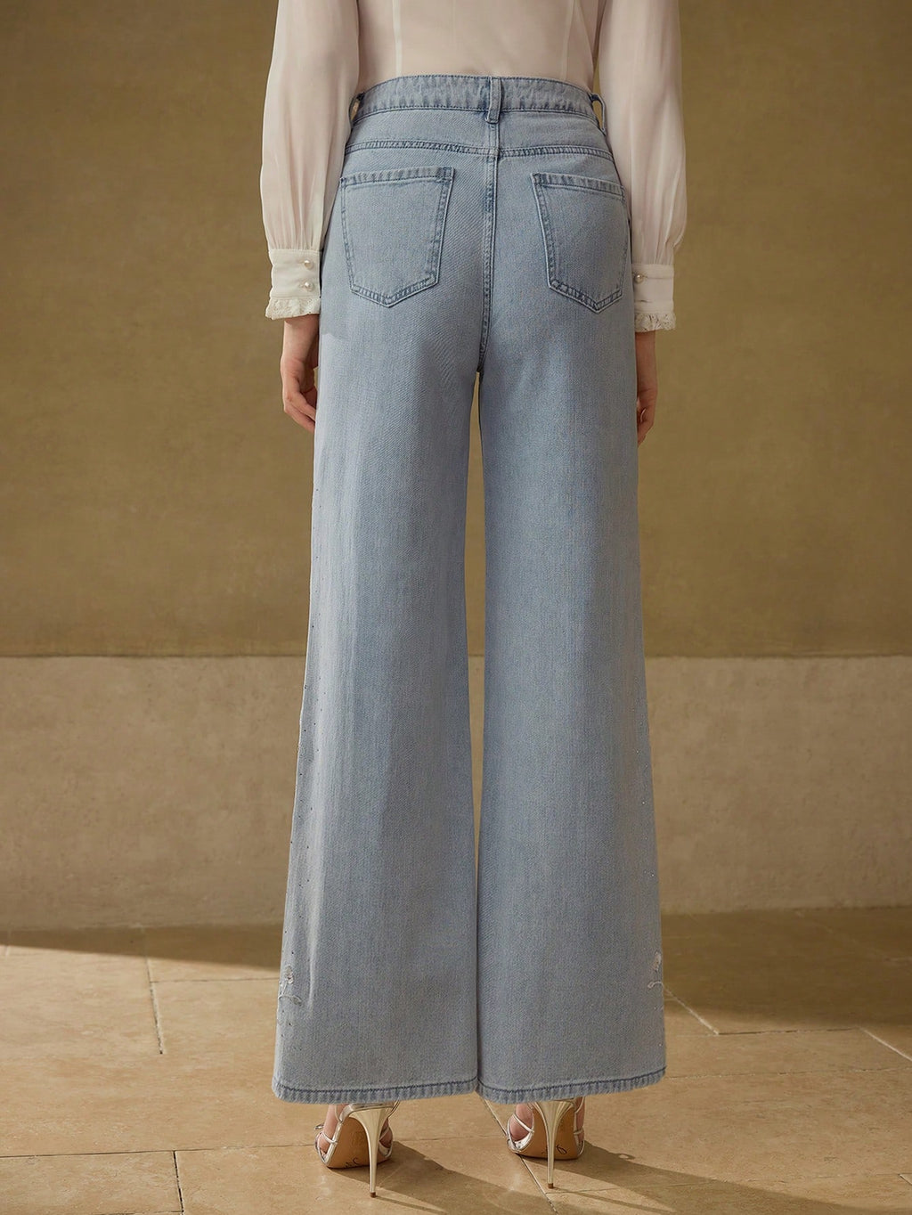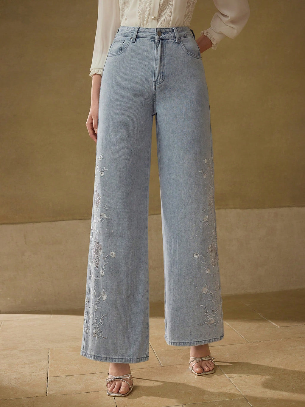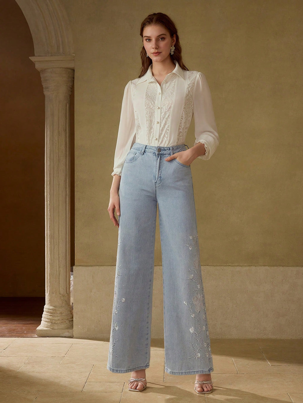 MIU PREMIUM WOMEN EMBROIDERED DENIM LONG PANTS